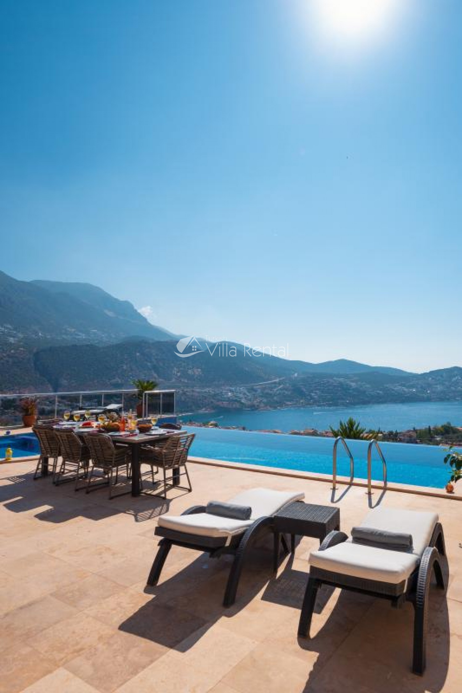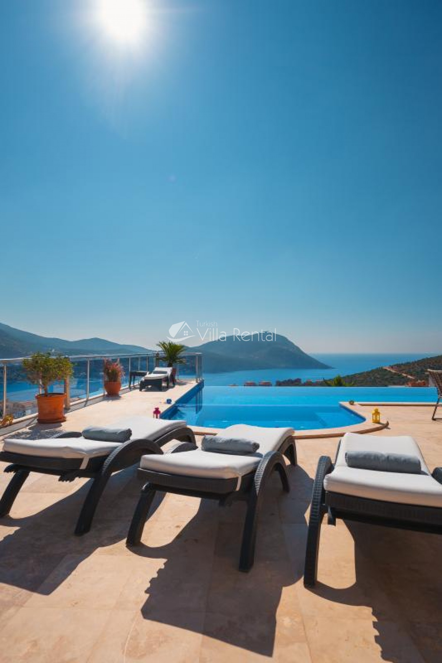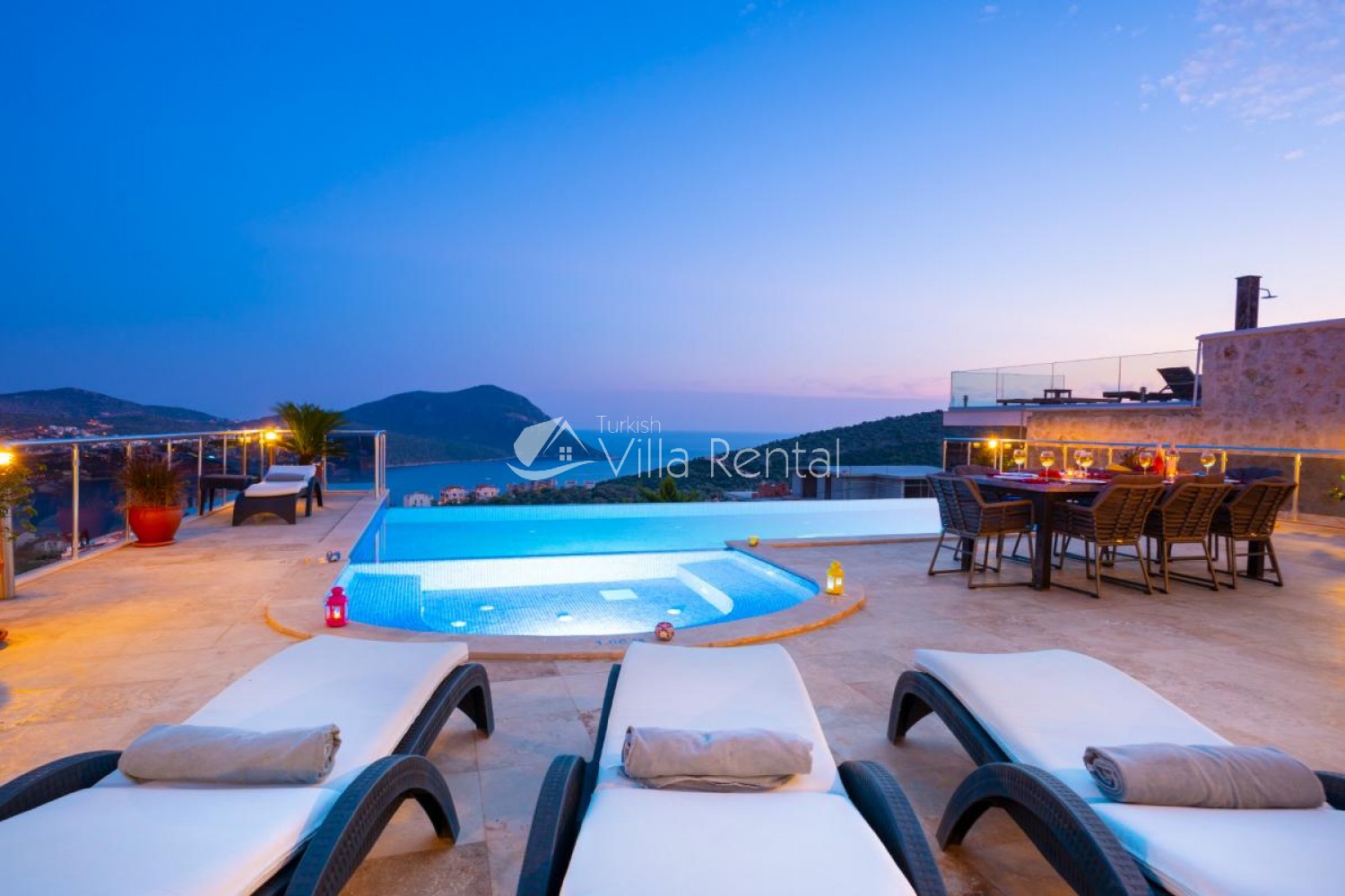 Buse Duo is the epitome of luxury with an infinity pool looking over the Kalkan bay, whilst the large, spacious villa holds 5 bedrooms each with panoramic sea views.