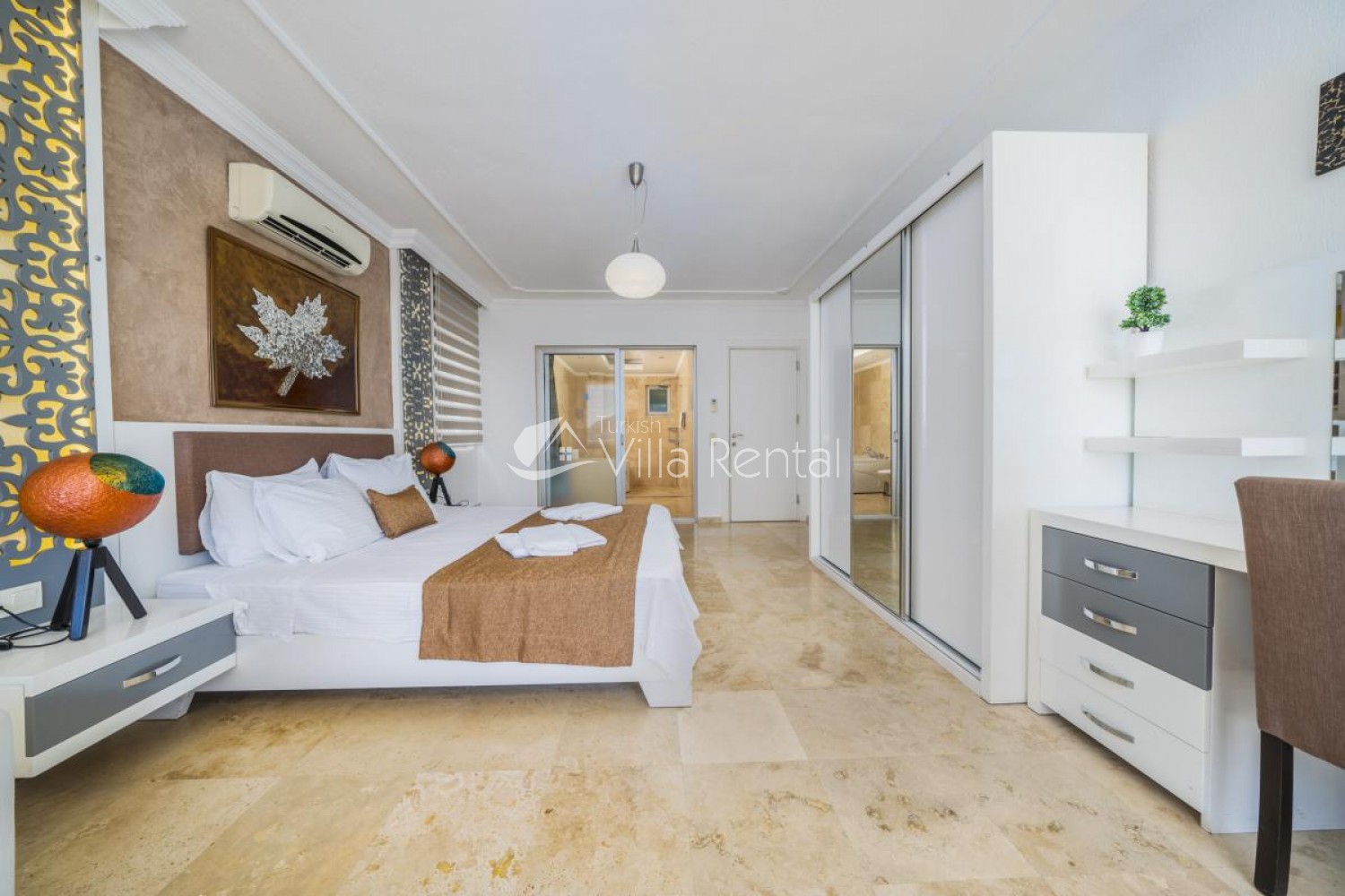 The interior is modern and sophisticated and has been furnished with only high quality furnishings and decor. Another great aspect of this villa is that it is close to Kalkan centre and is in walking distance, but please note the steep uphill when walking back.