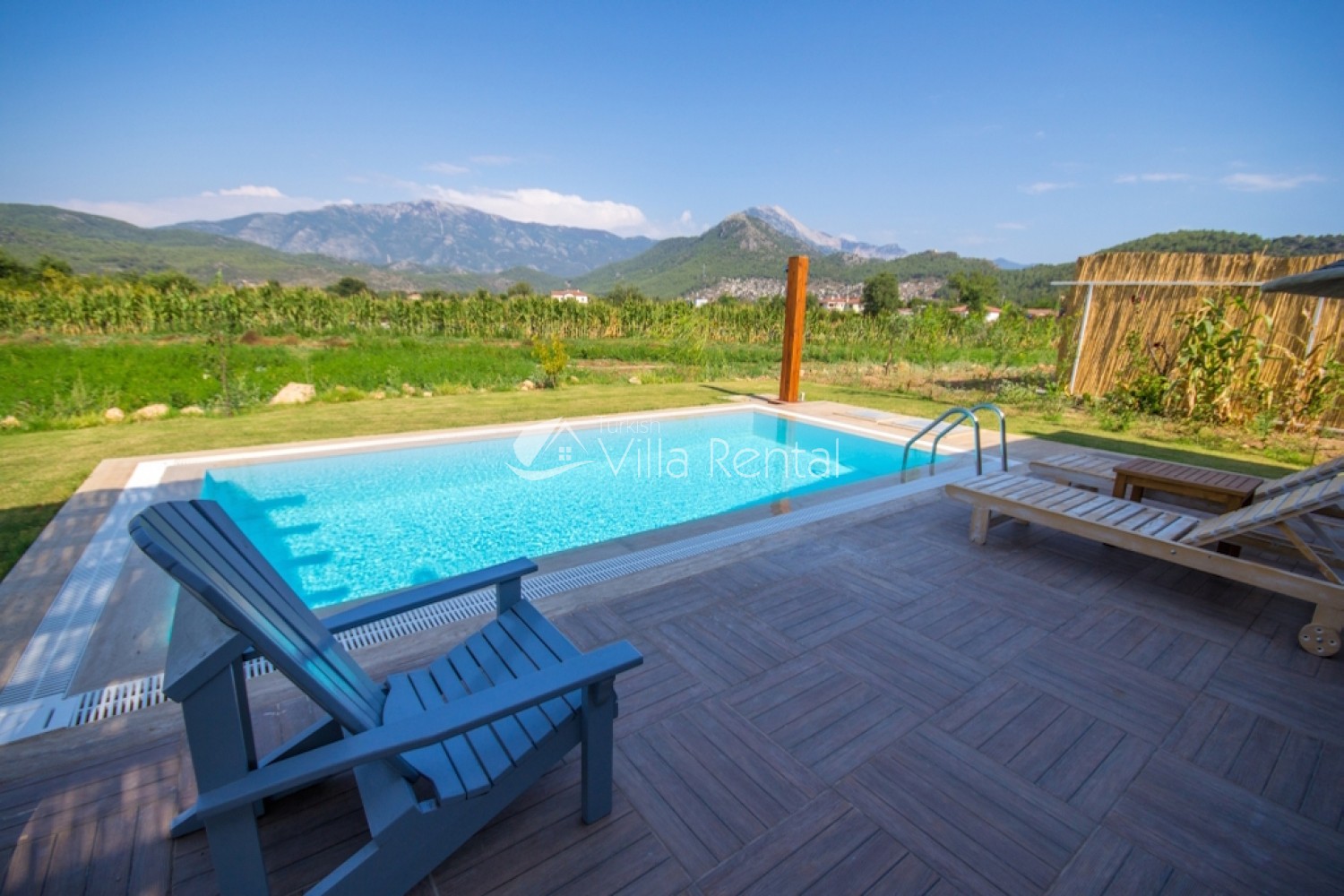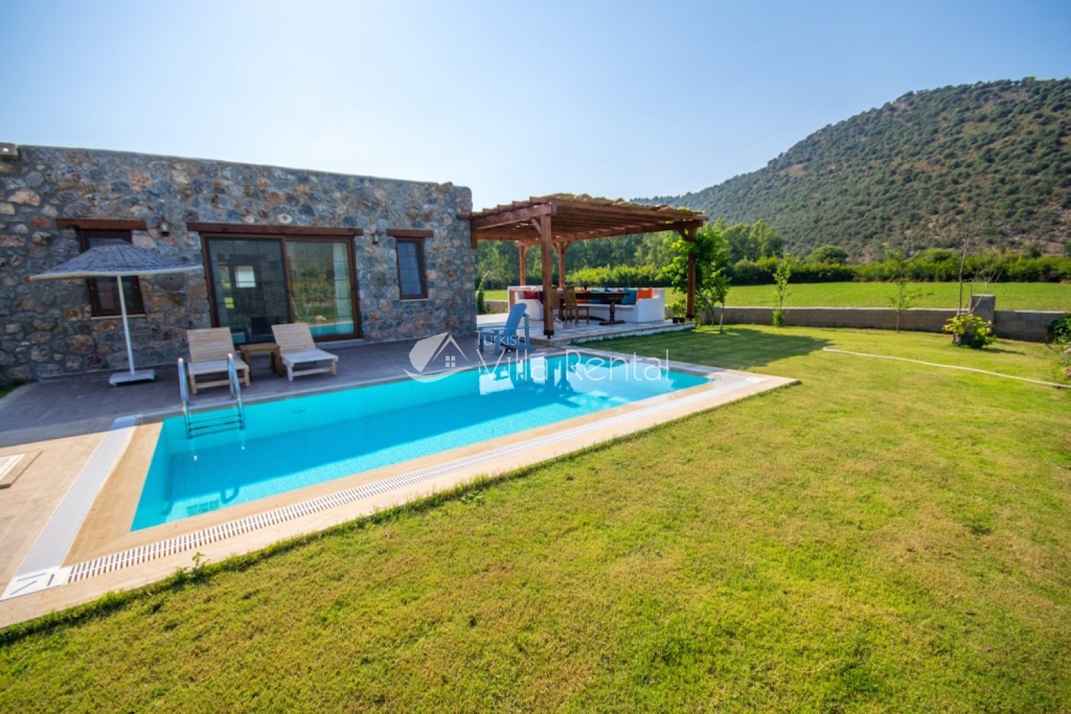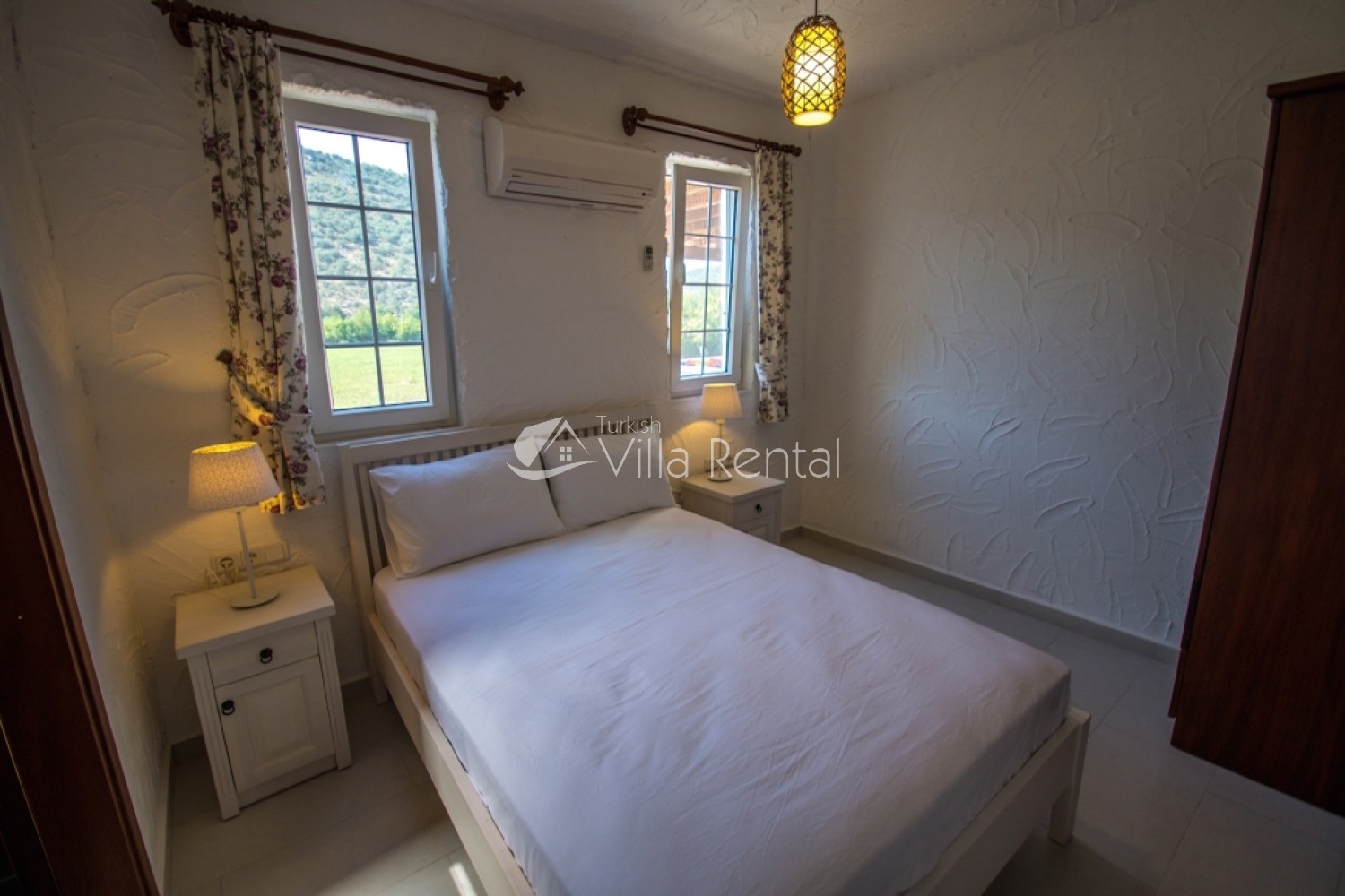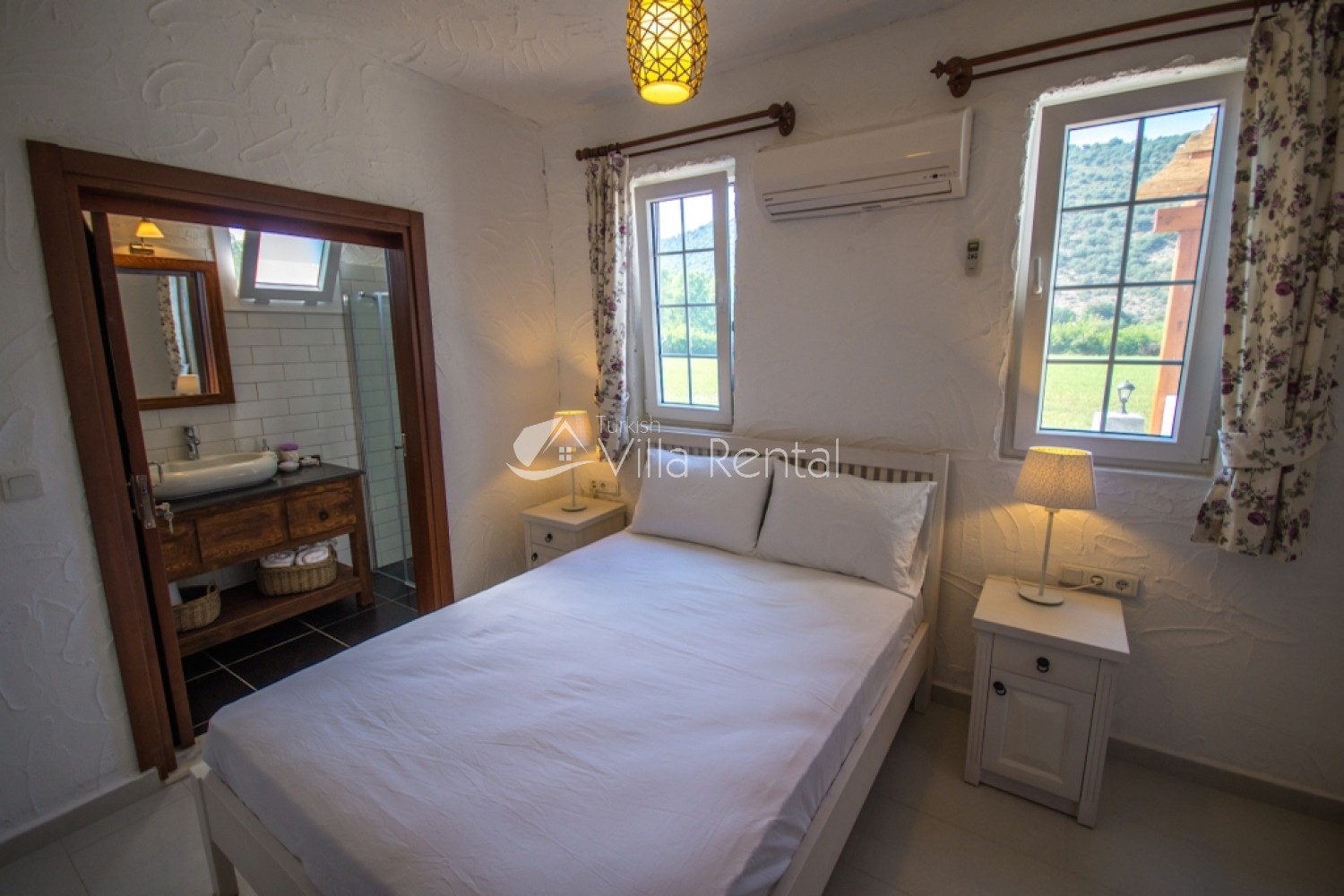 The setting of the villa is peaceful and full of natural surroundings, green fields, trees, and the mountainous background. It is the perfect place to go and forget the stresses of life. One of the great things about the location is that it is also not too far from the centre of Hisaronu and also beautiful beaches.