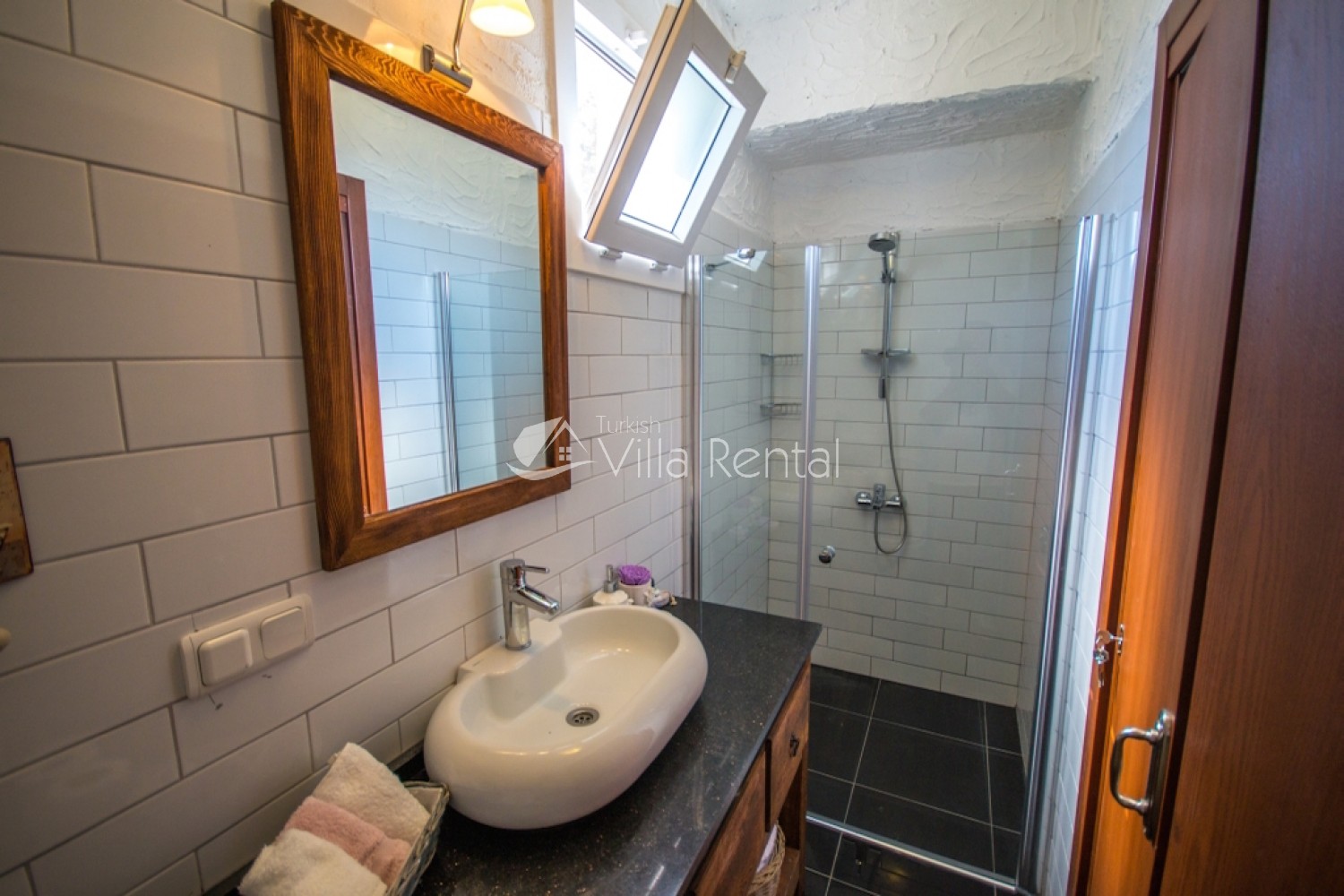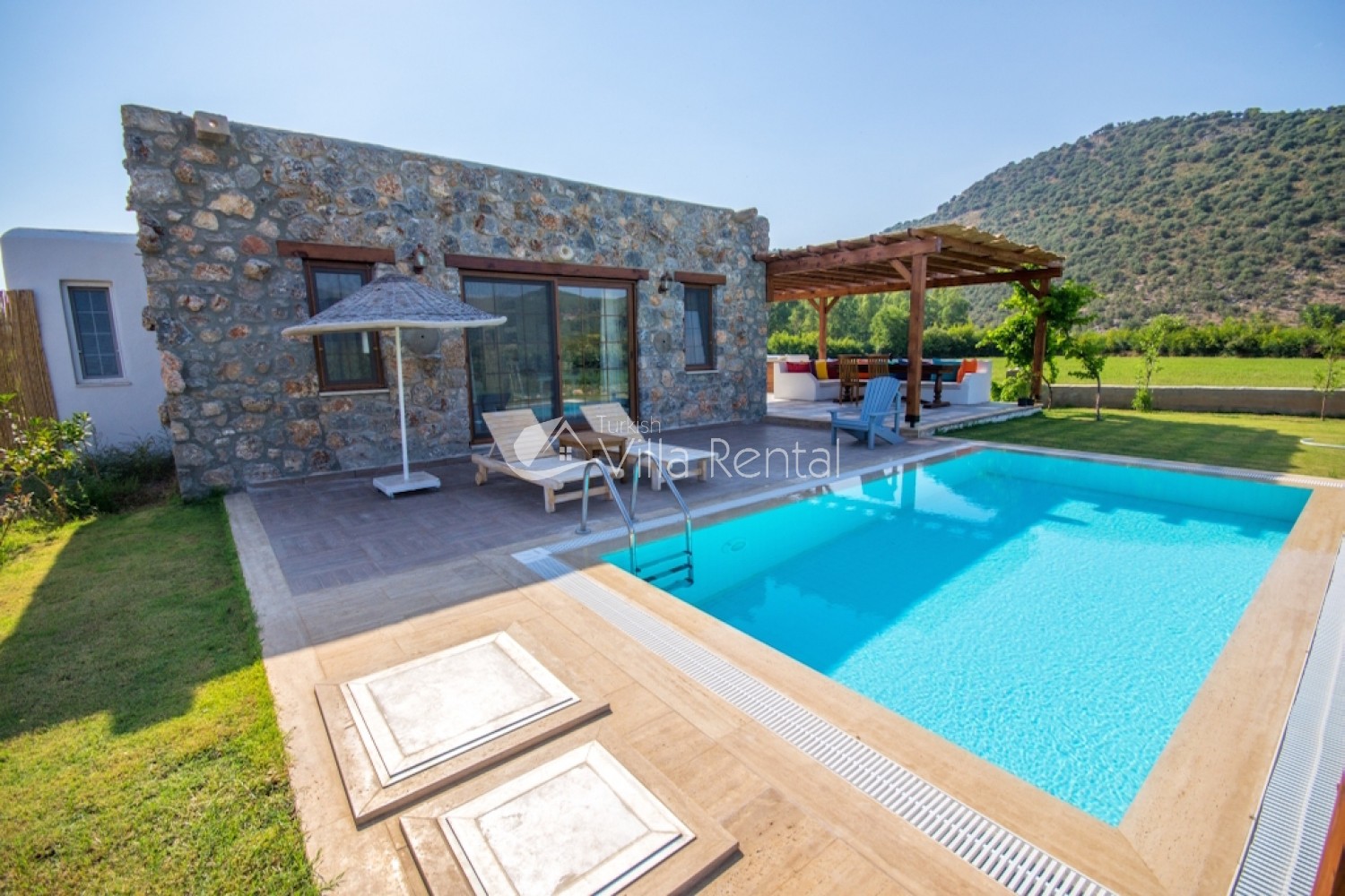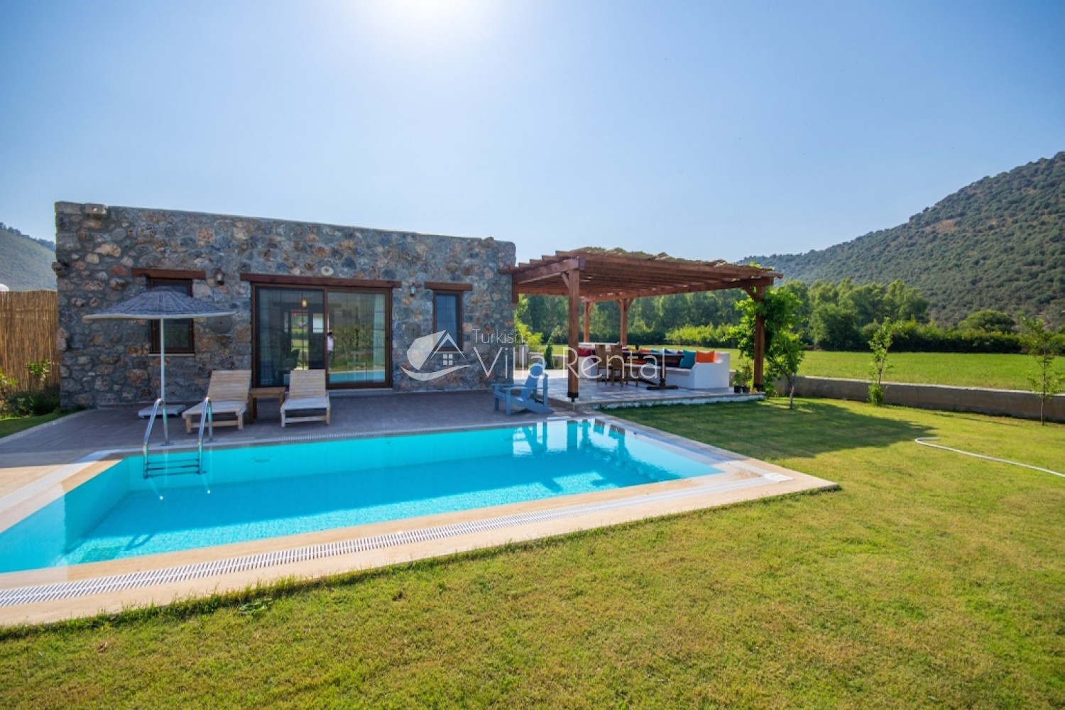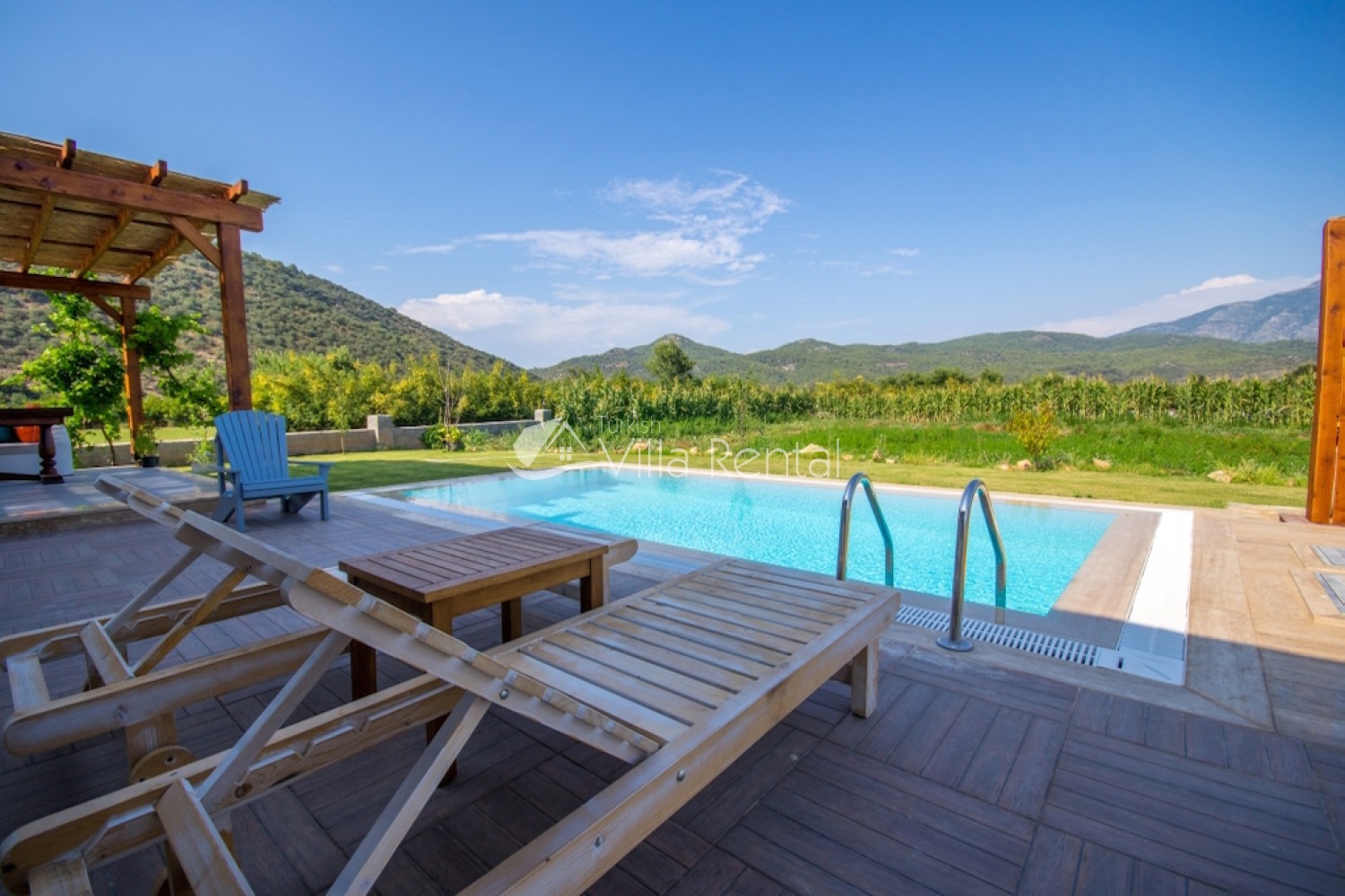 The setting of the villa is peaceful and full of natural surroundings, green fields, trees, and the mountainous background. It is the perfect place to go and forget the stresses of life. One of the great things about the location is that it is also not too far from the centre of Hisaronu and also beautiful beaches.