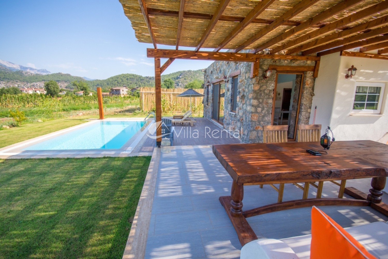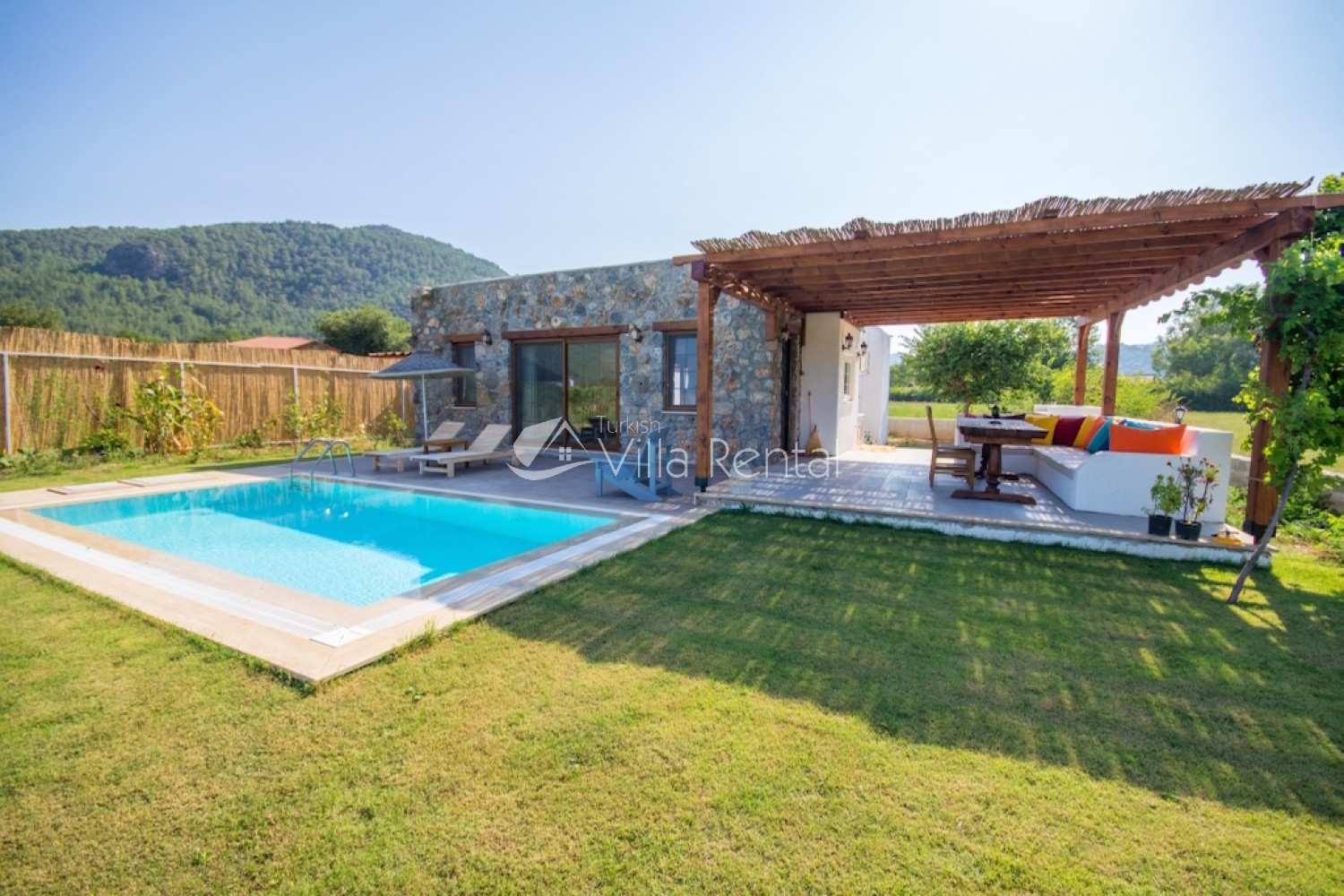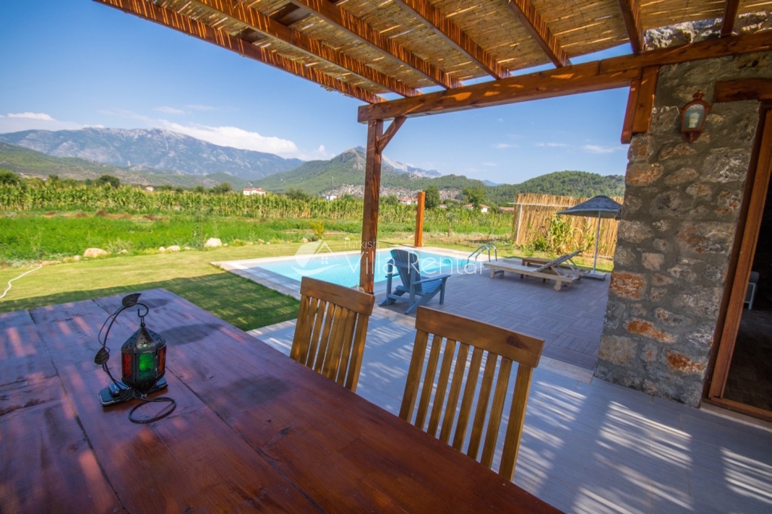 A 2 bedroom villa located in the peaceful area of Kayakoy. With mountain views and private swimming pool. Close to hisaronu town centre and Gemiler beach.