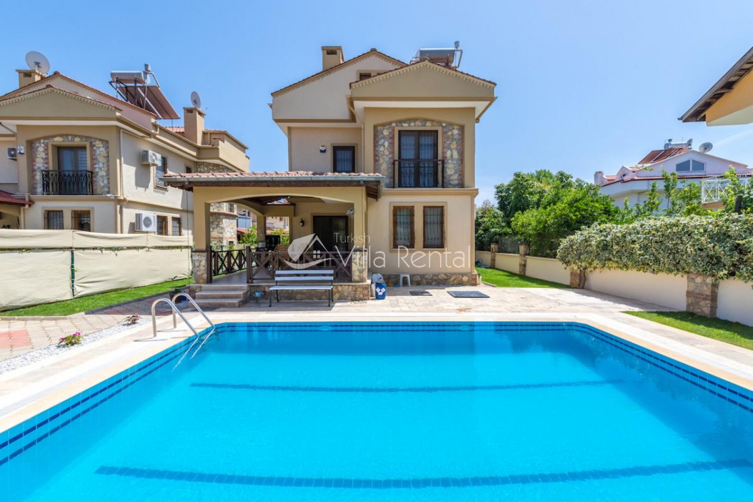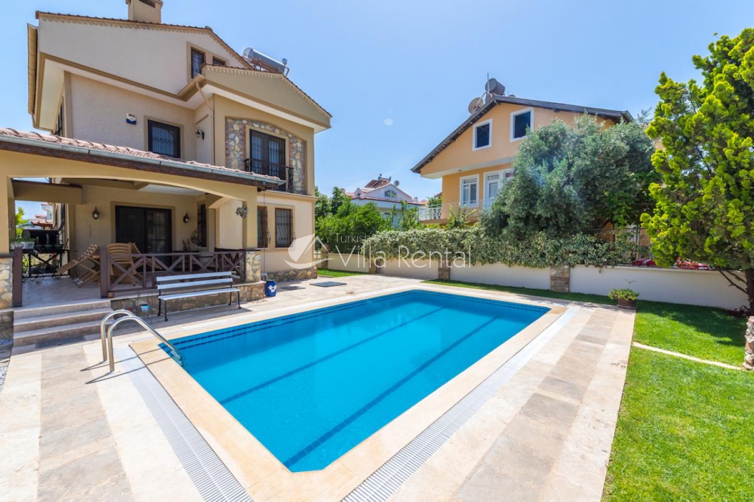 Beautiful 4 bedroom luxury villa located in Calis with private pool and garden. Located 1.2km from town centre and beach. Sleeps 6 people