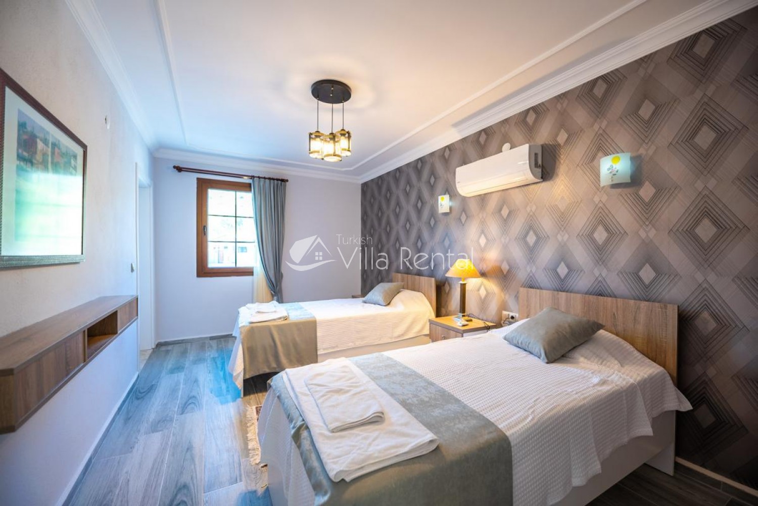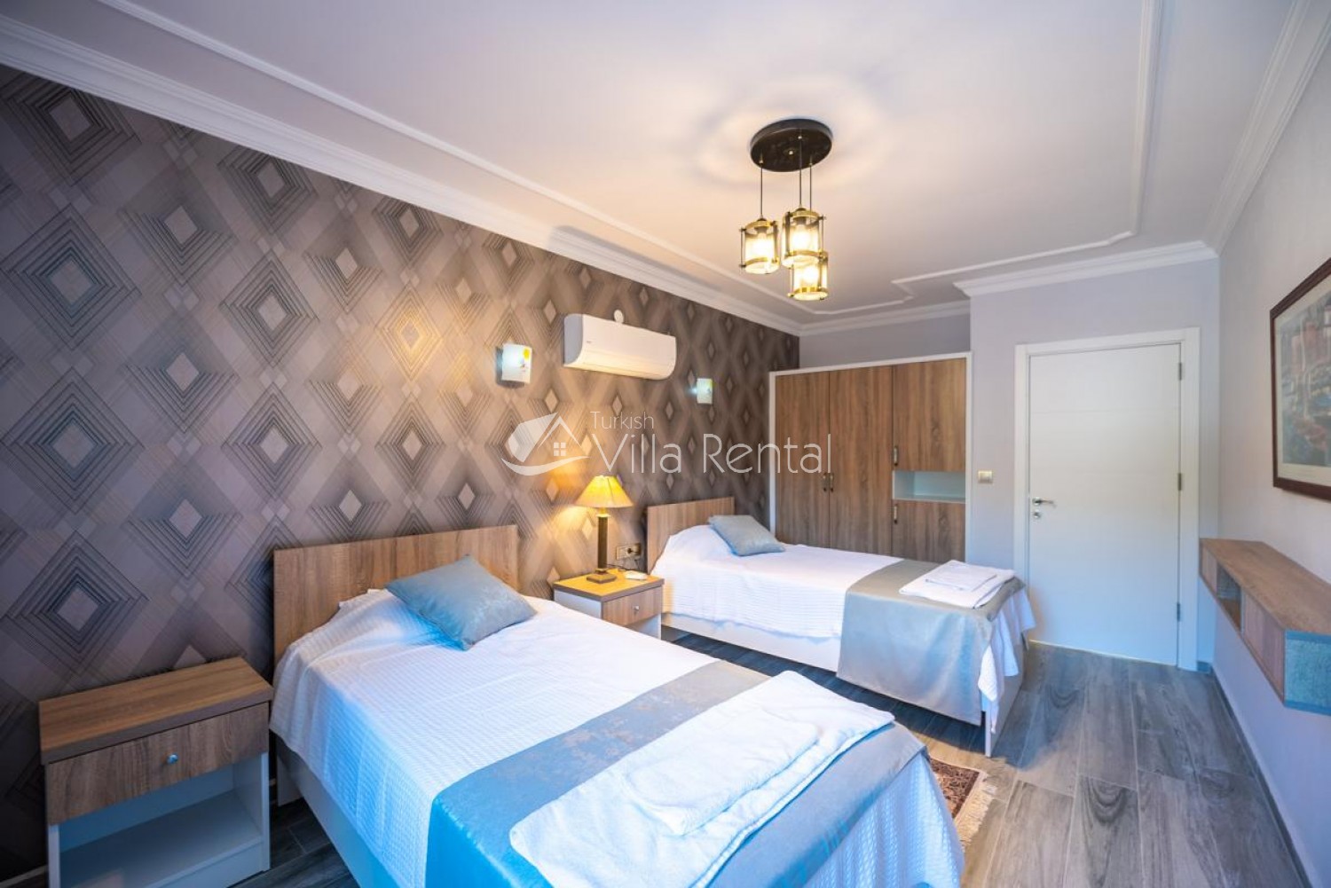 2.Bedroom: Two single beds, bedside table, TV, wardrobe, air conditioning, bathroom and toilet.