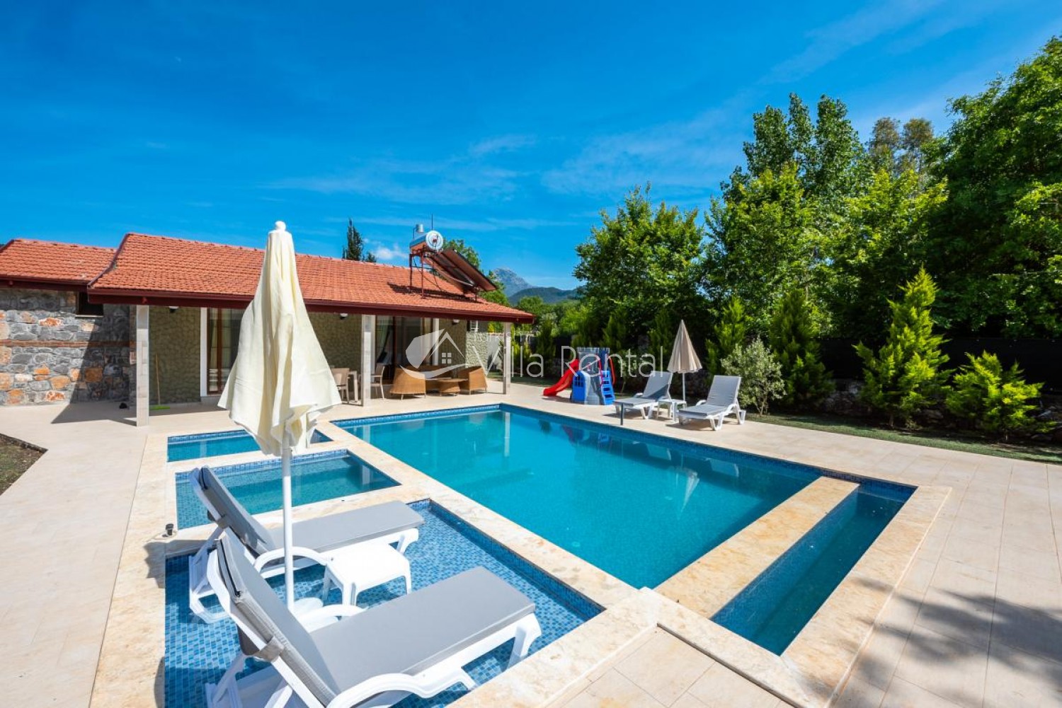 NOTE: The villa pictures in our site are taken with 12-18 mm Wide Angle Lens to fit the image to the screen. Therefore, the objects in the pictures may appear to be larger than the reality.
