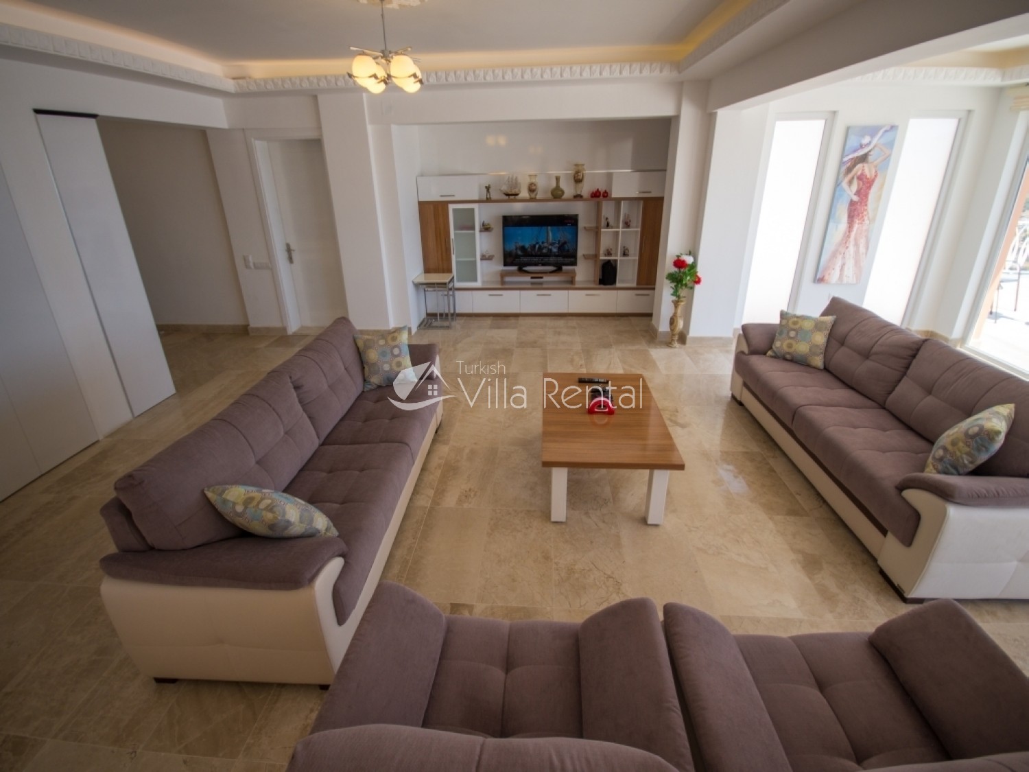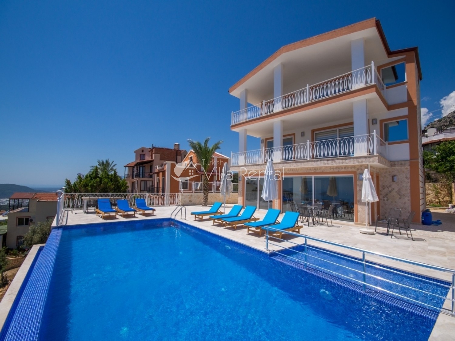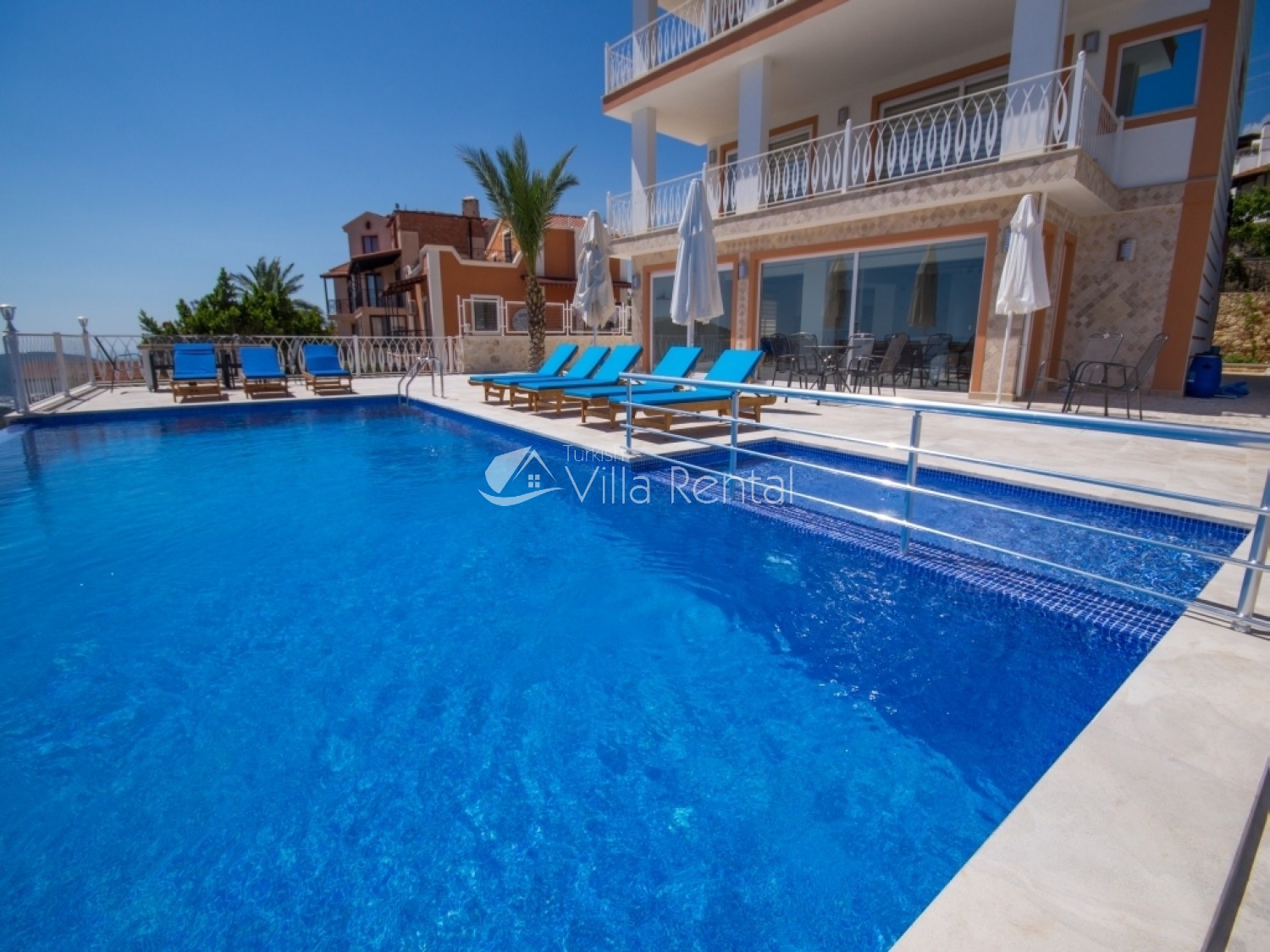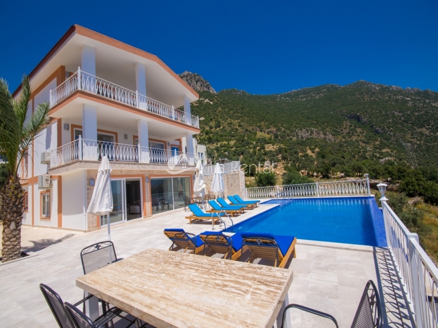 This is a large, luxury, 6 bedroom villa which comfortably sleeps up to 12 people and is located in the beautiful sea side resort of Kalkan. It is fully equipped with everything you need for your stay and has spectacular sea views.