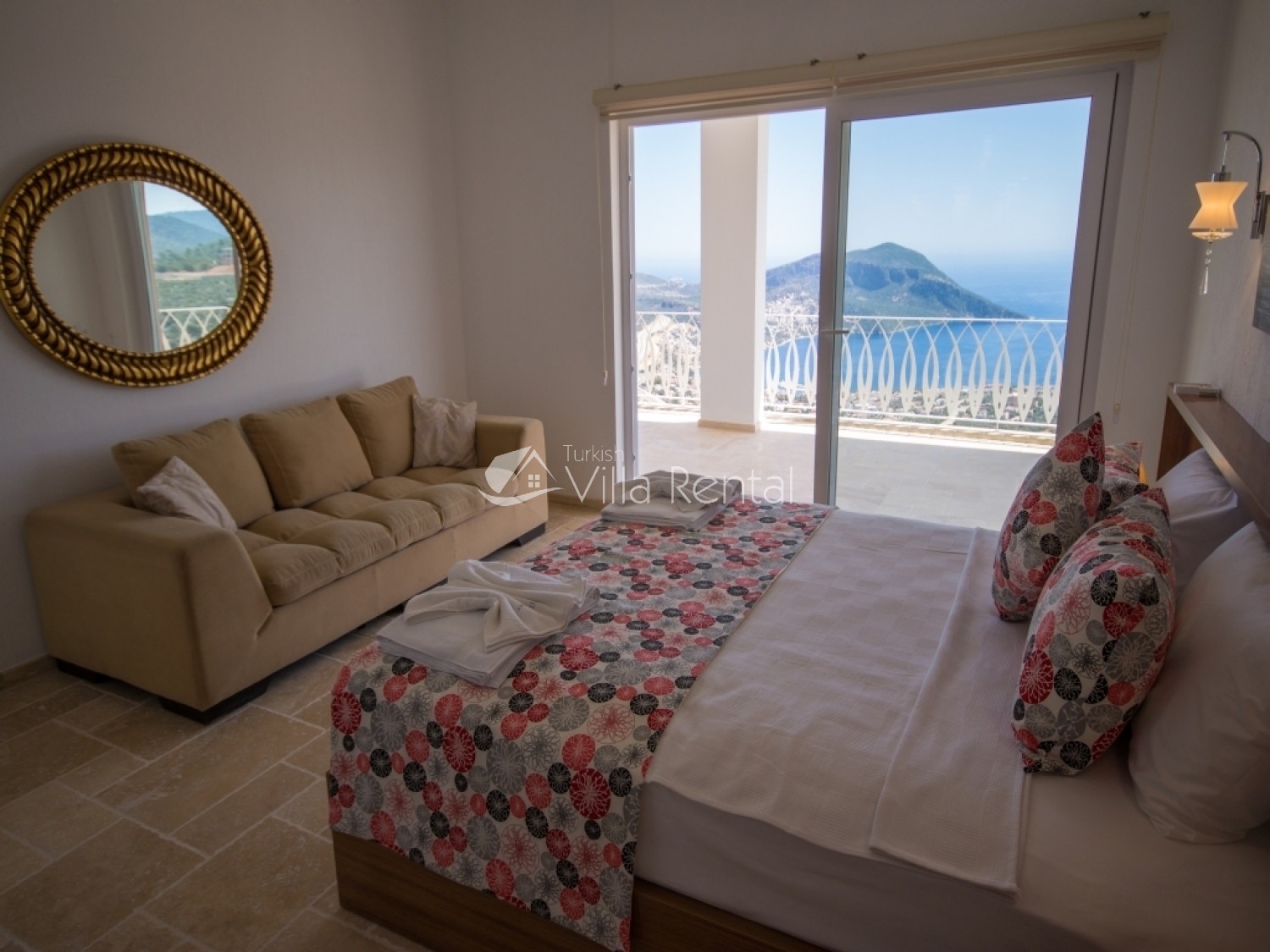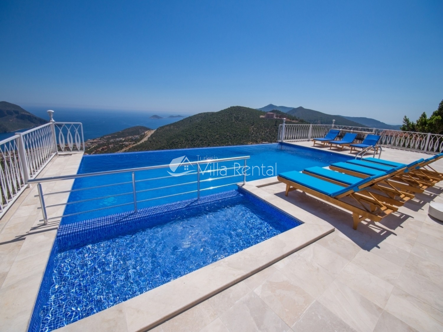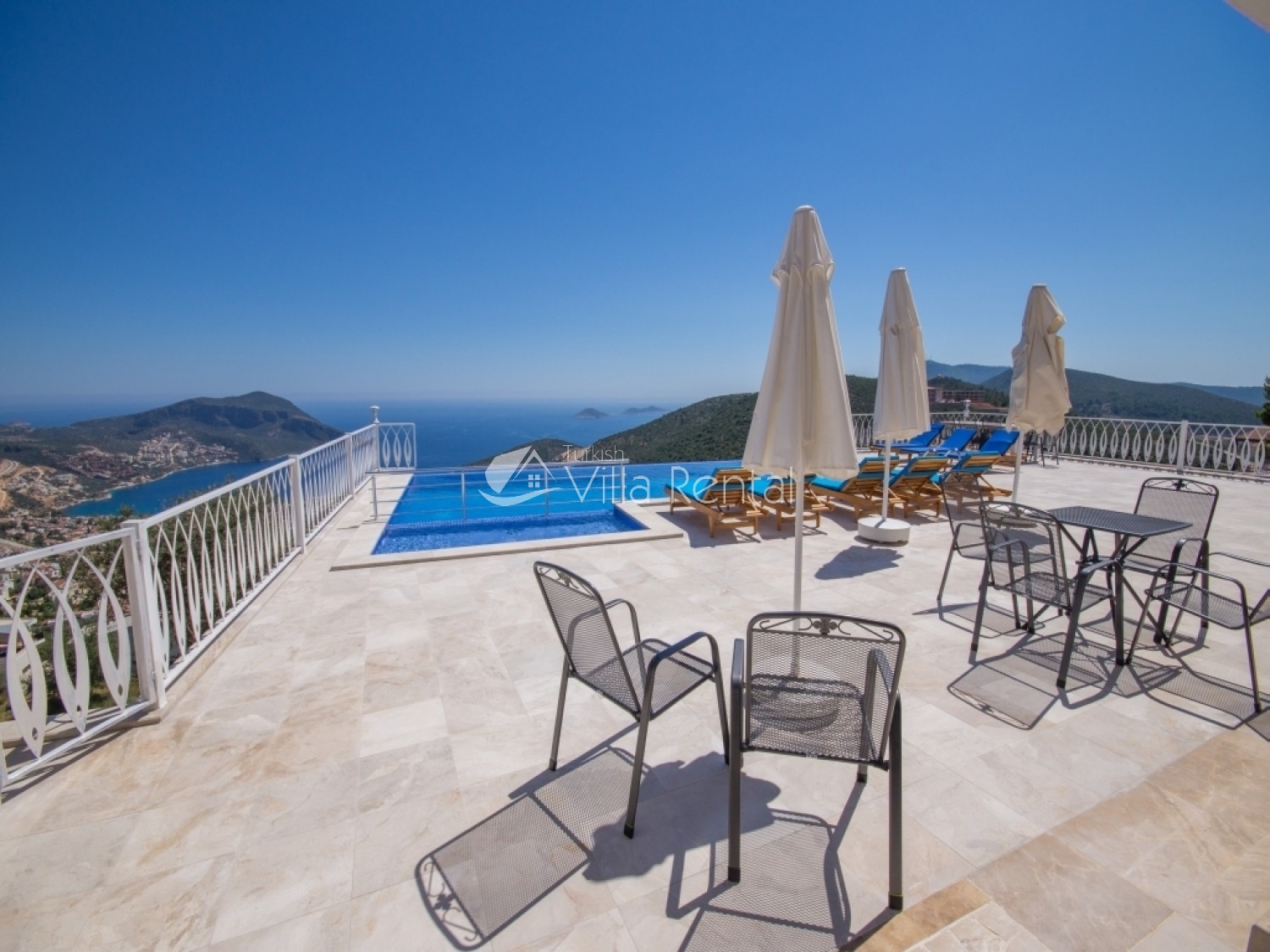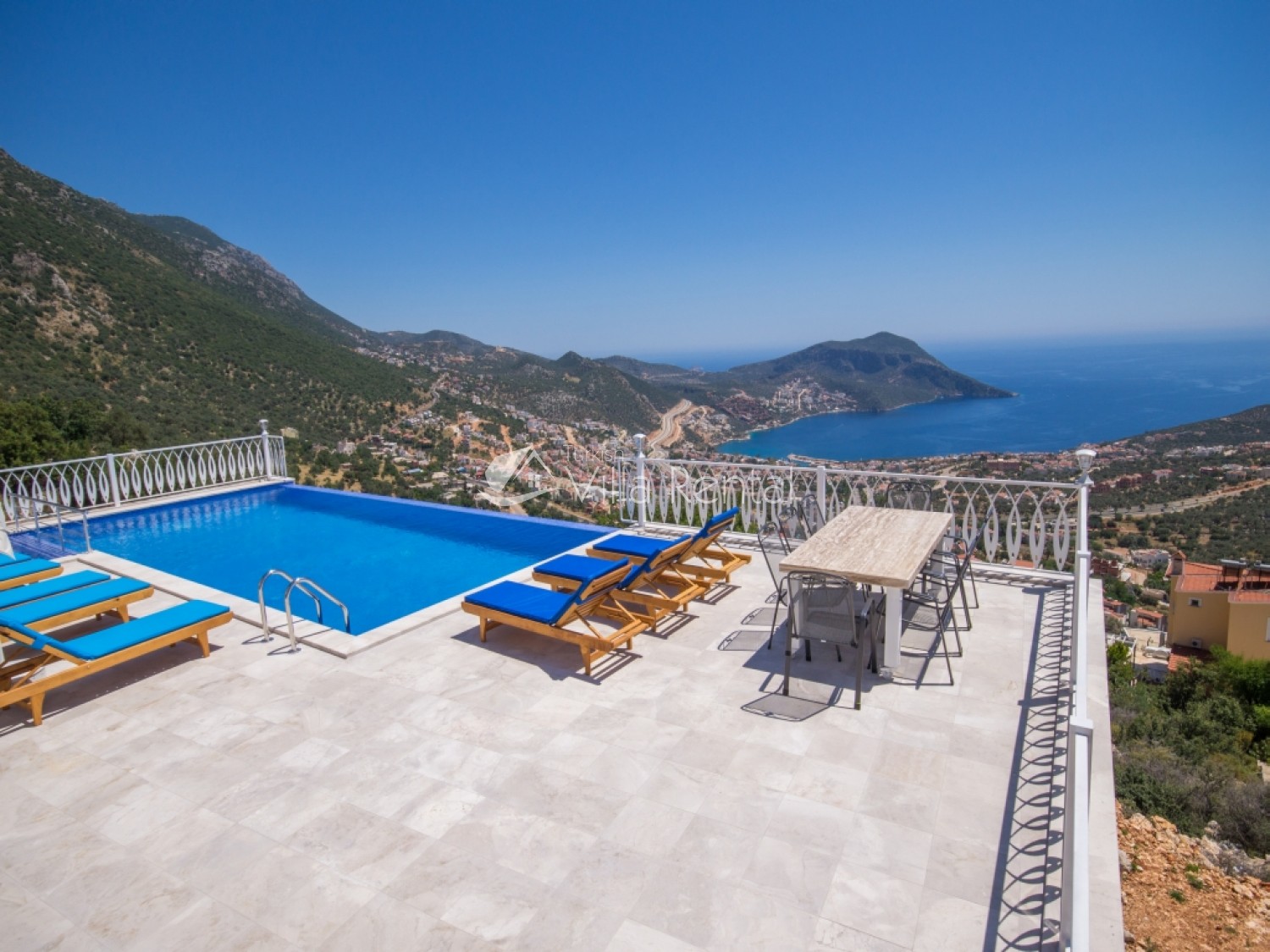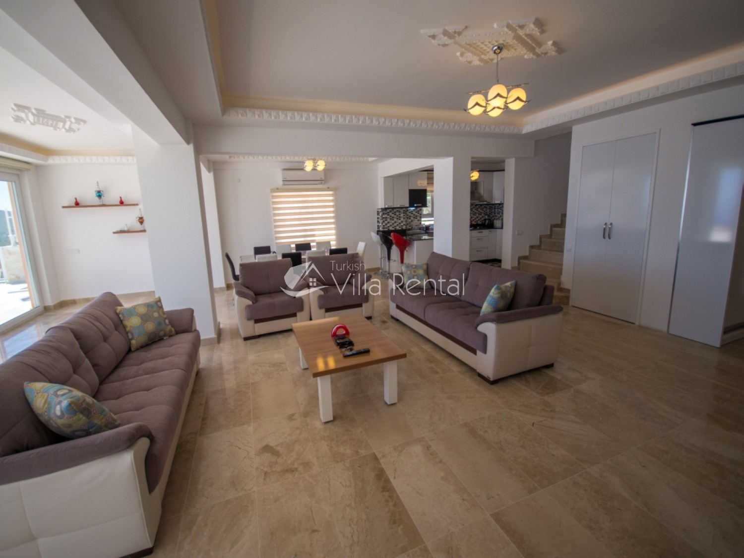This is a large, luxury, 6 bedroom villa which comfortably sleeps up to 12 people and is located in the beautiful sea side resort of Kalkan. It is fully equipped with everything you need for your stay and has spectacular sea views.