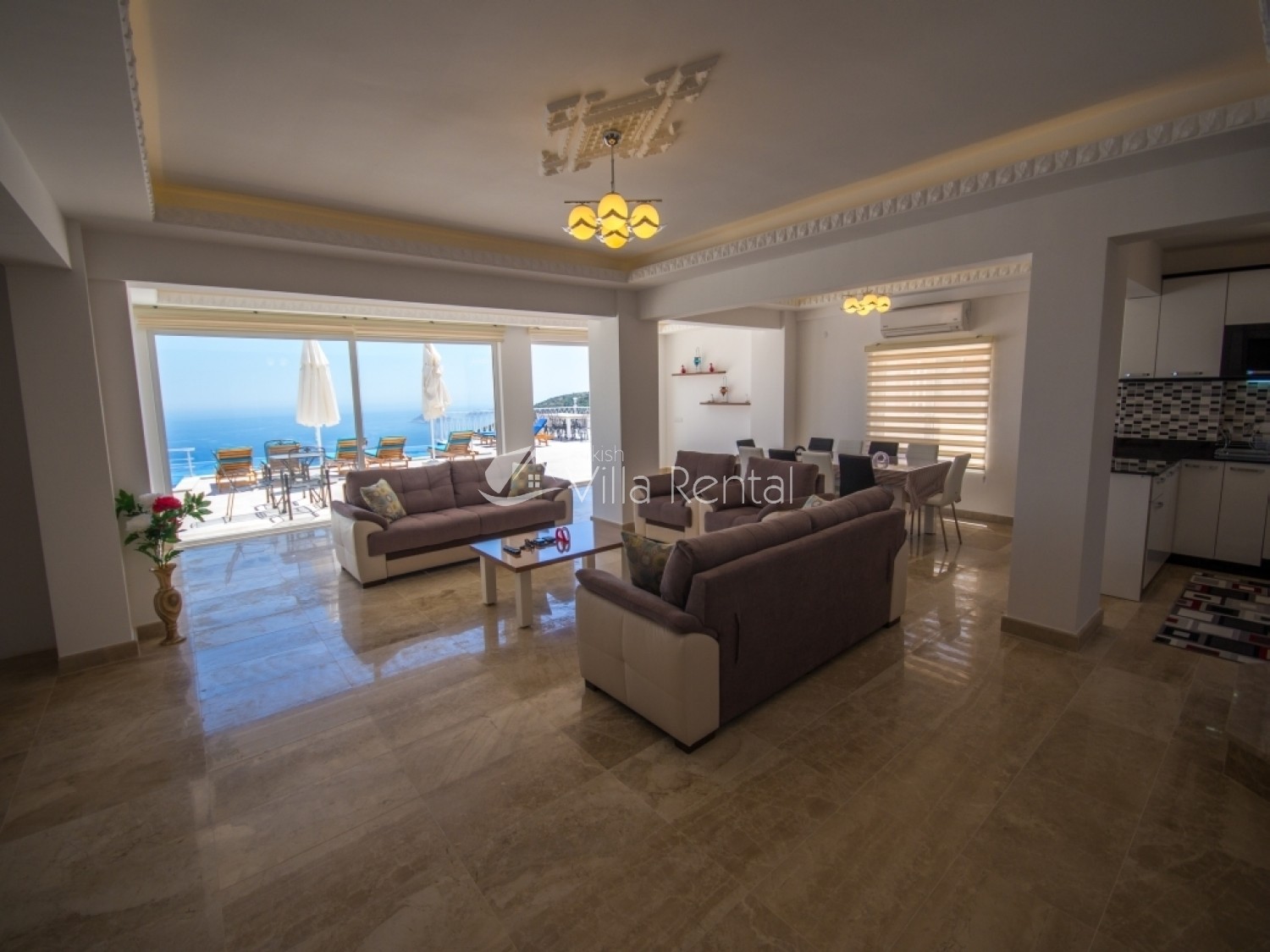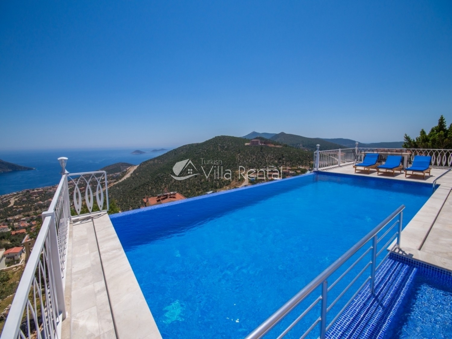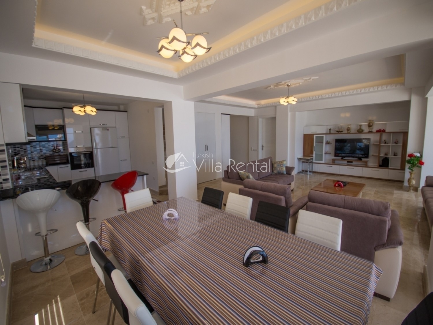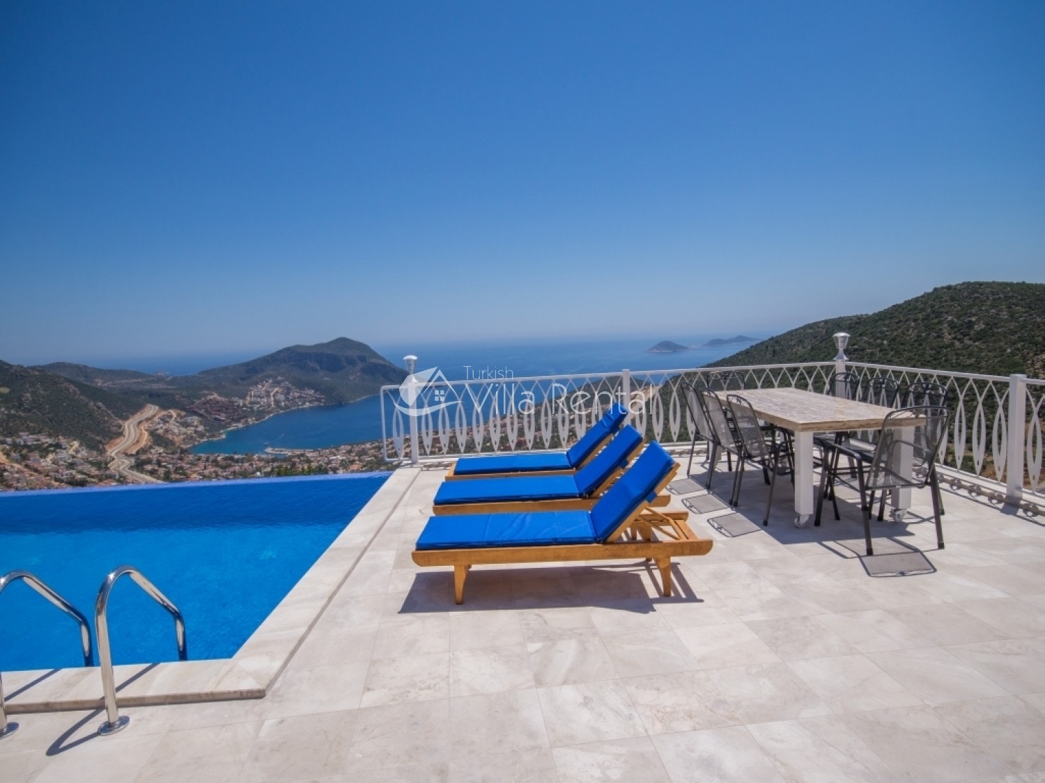 This is a large, luxury, 6 bedroom villa which comfortably sleeps up to 12 people and is located in the beautiful sea side resort of Kalkan. It is fully equipped with everything you need for your stay and has spectacular sea views.