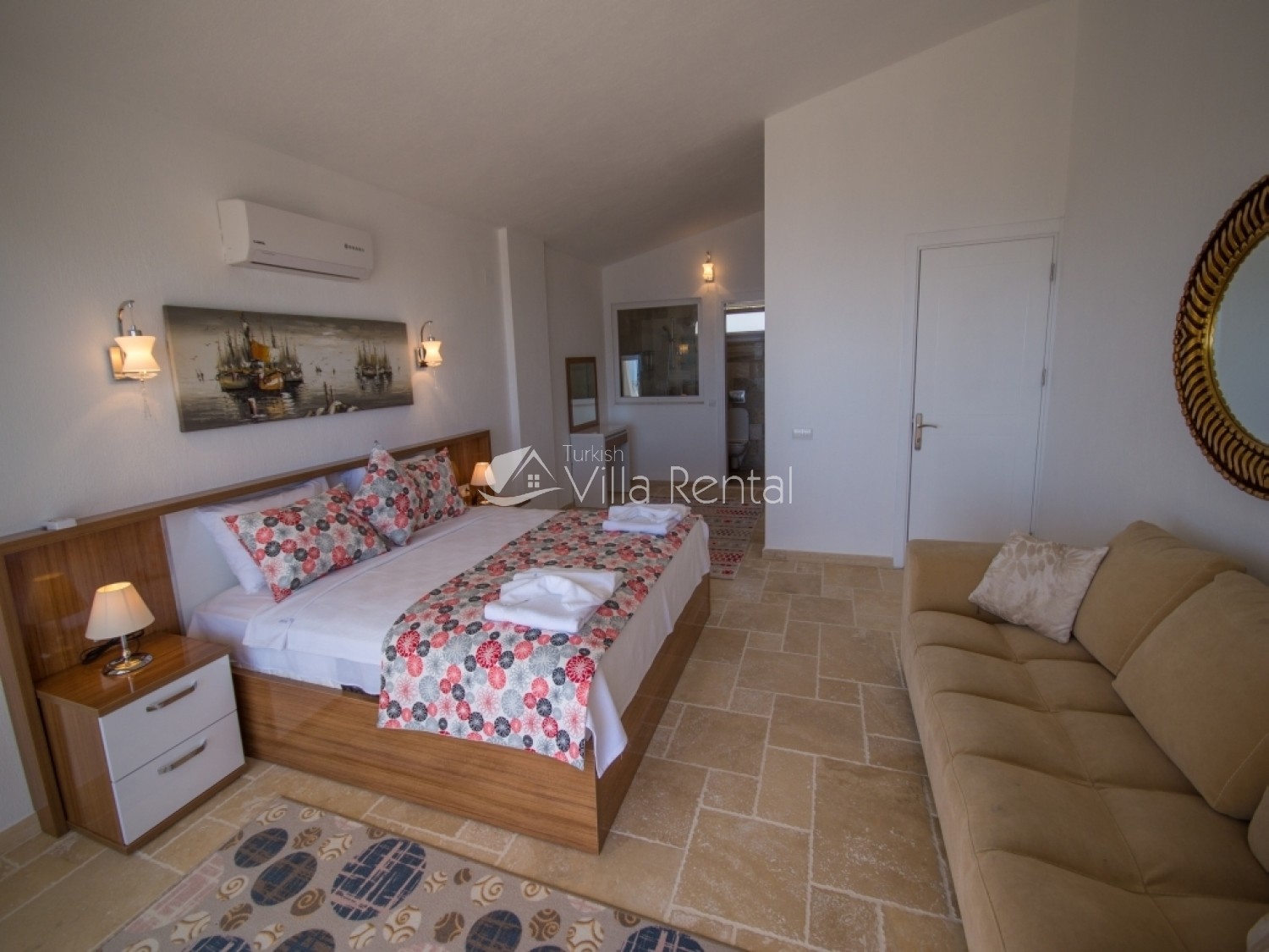 Although it is set in a tranquil and peaceful area, it is just 5 minute drive to the centre of Kalkan, or just a 5 minute walk to some local shops, bakery, and green grocers.