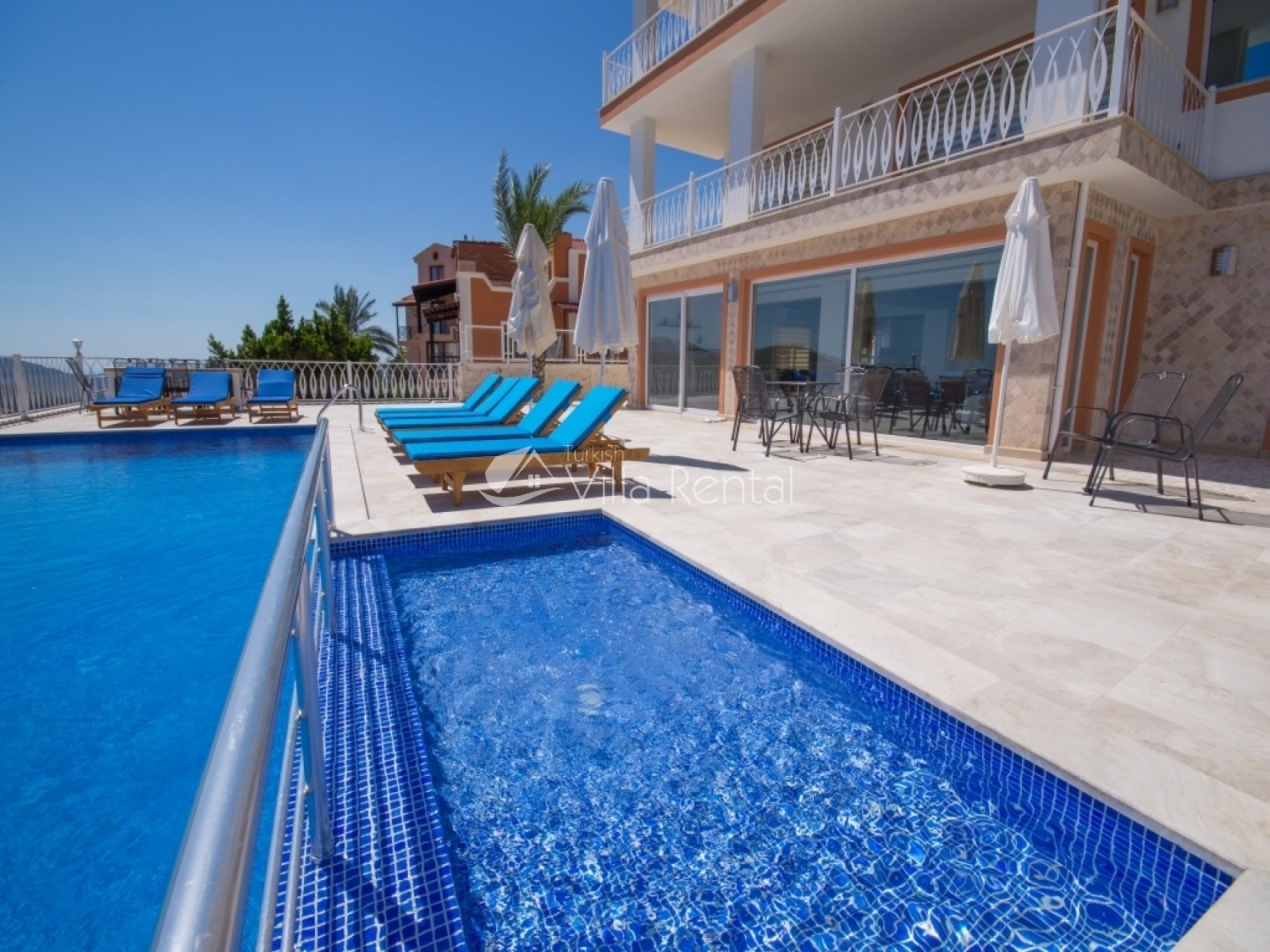 A large, luxury villa situated in Kalkan. With 6 bedrooms, sleeping 12 people. Private infinity swimming pool and a children’s pool. Also with sea views