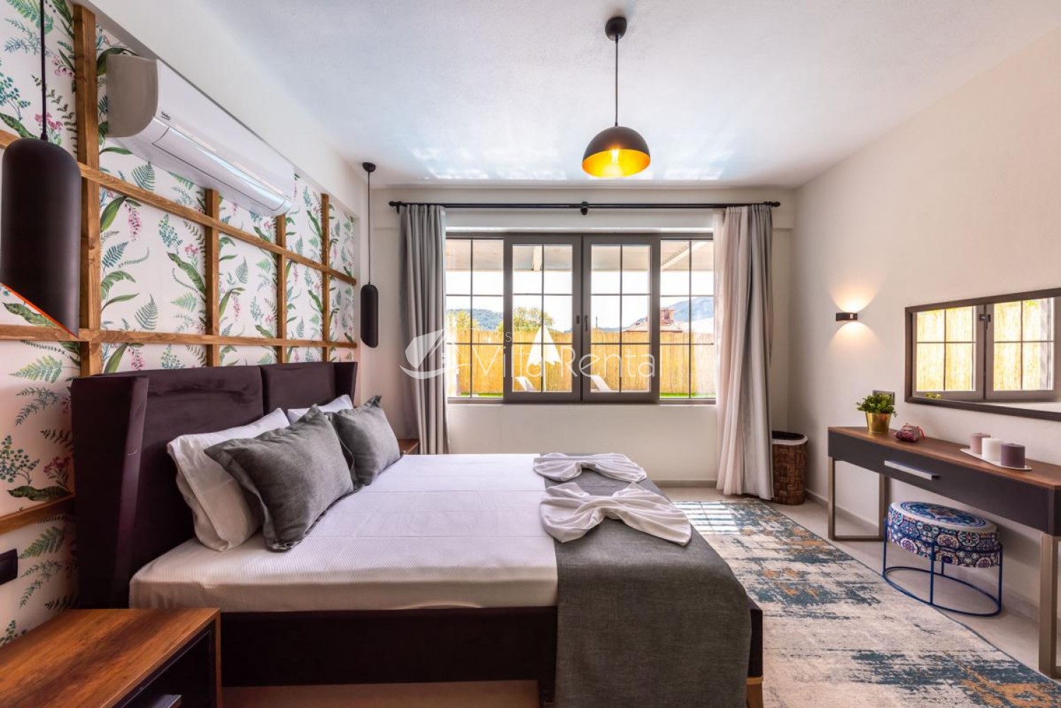 1. Bedroom: 1 double bed, vanity table, air conditioning, wardrobe, nightstand, bathroom and toilet.