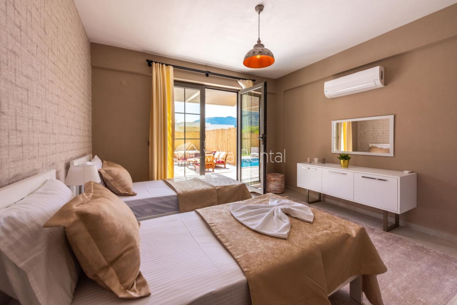 NOTE: The villa pictures in our site are taken with 12-18 mm Wide Angle Lens to fit the image to the screen. Therefore, the objects in the pictures may appear to be larger than the reality.