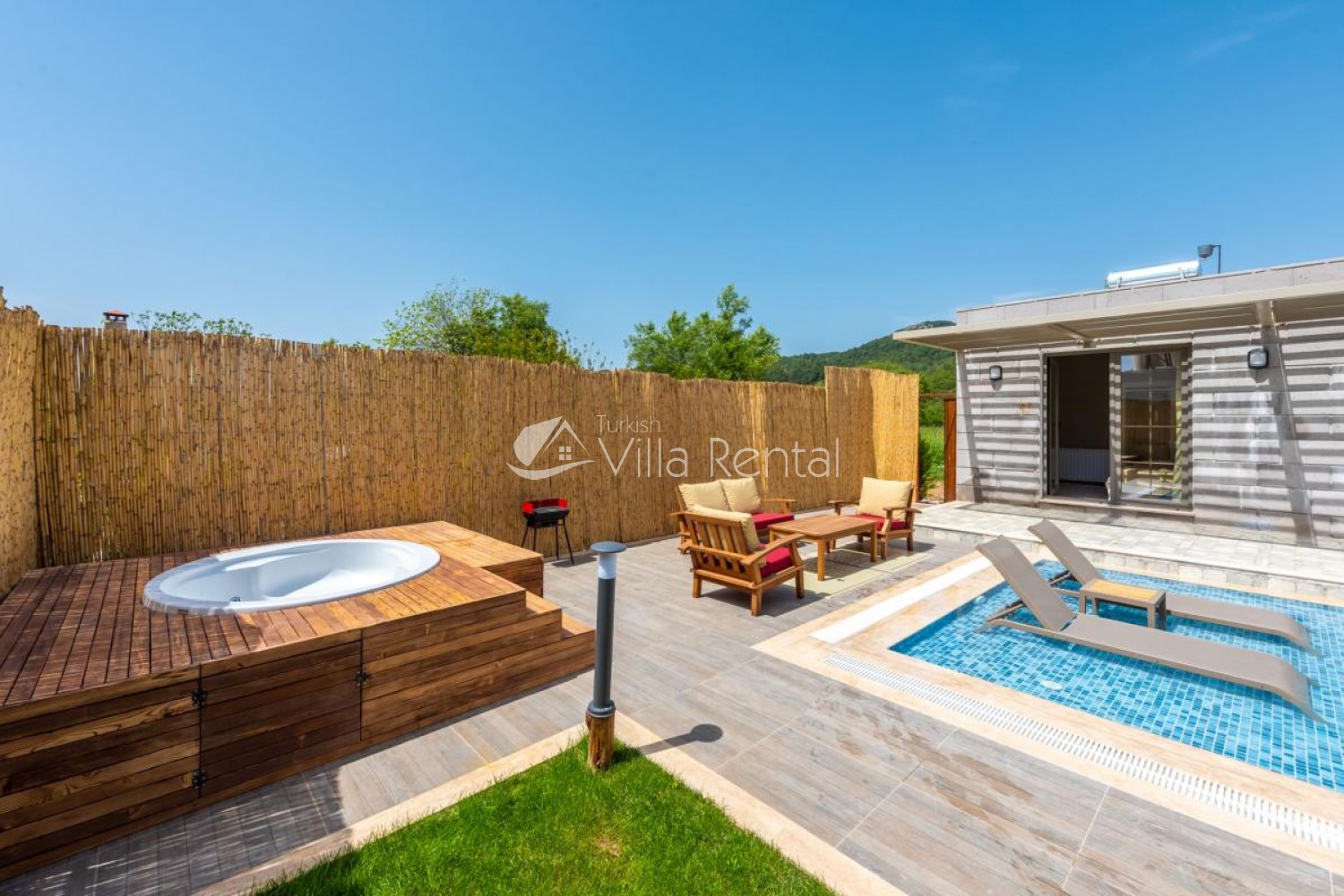 Garden Villa Esma’s garden has a jacuzzi, sun loungers, parasols, barbecue, garden seating, chairs and table.