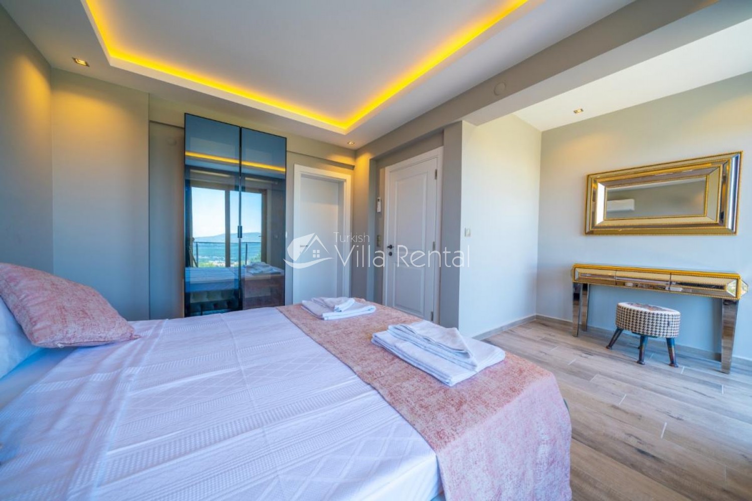 The sister villa Kiraz is next door, ideal for large families and groups to rent both villas and enjoy their holidays together. Exits to the balconies of the roof rooms of both villas have been closed to ensure privacy to each villa.