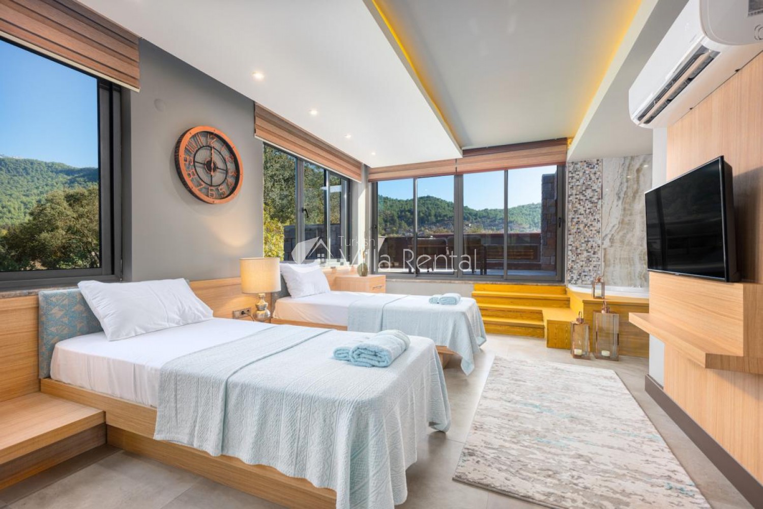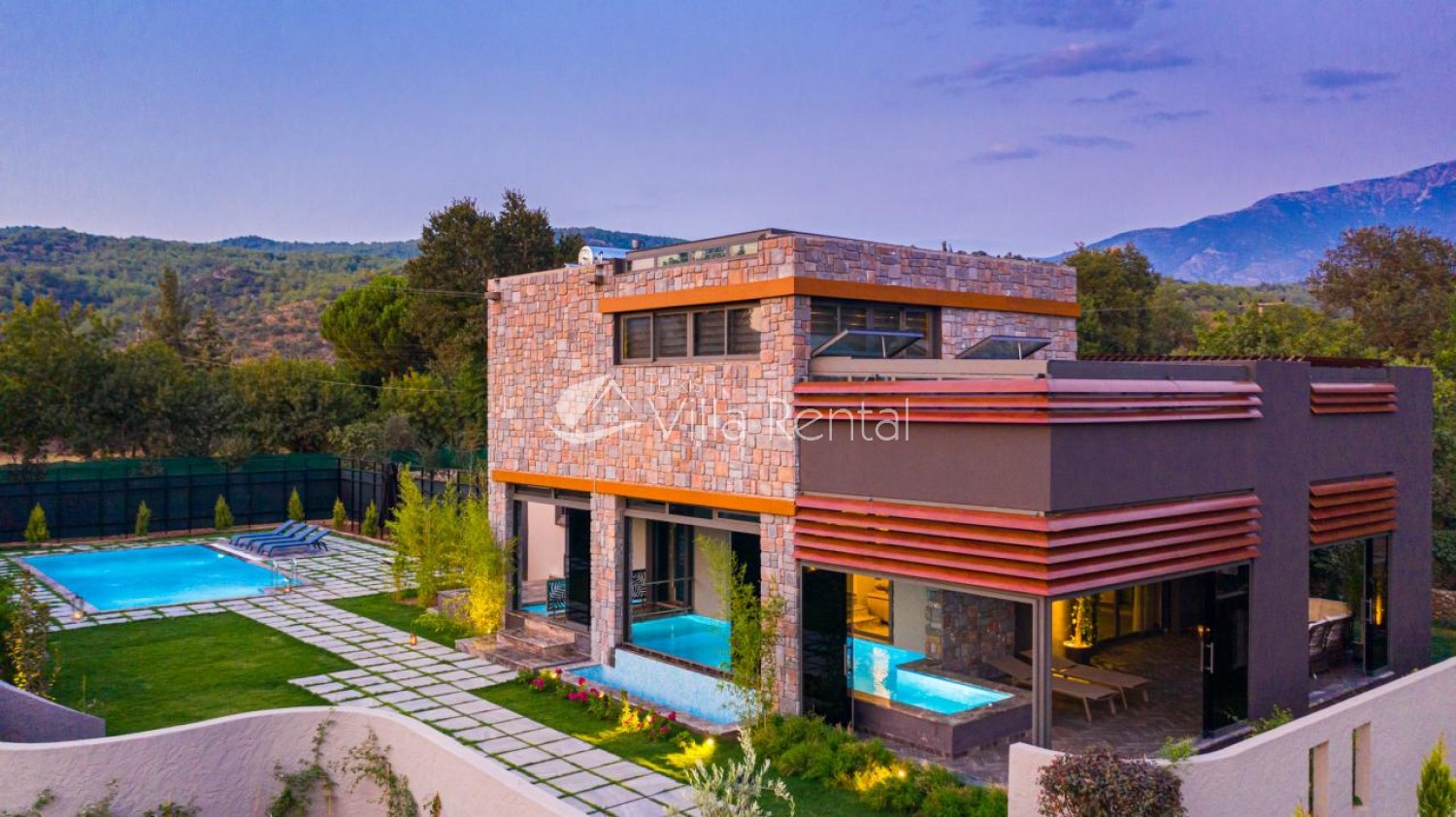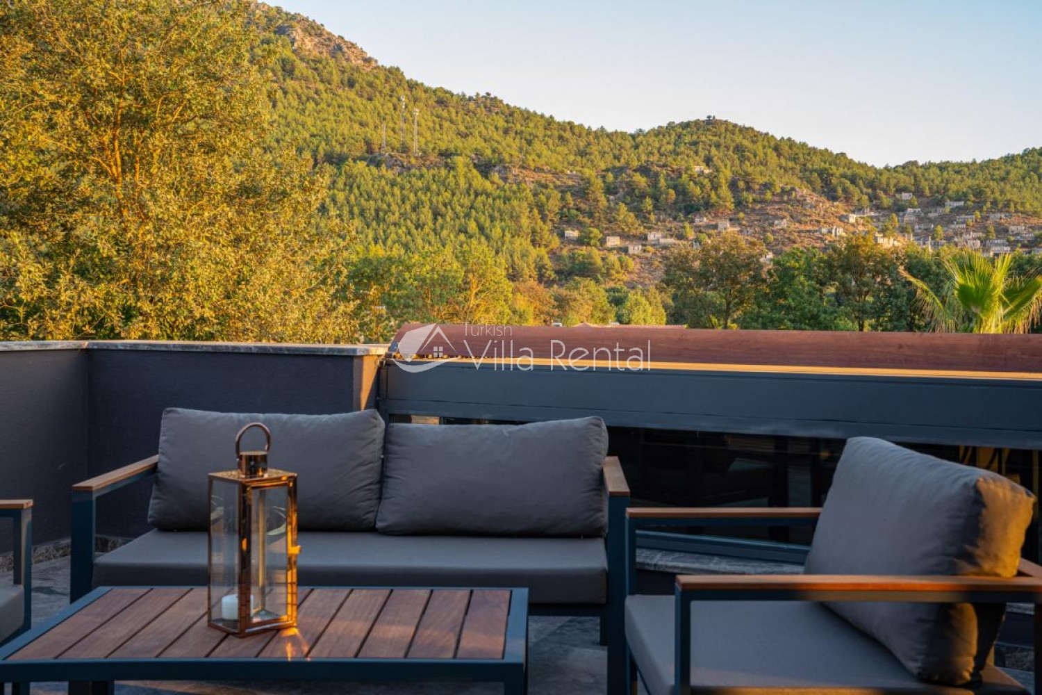 Villa İlfar, Turkey’s most popular holiday destination and is located in Kayakoy district of Fethiye, Mugla district. Villa Ilfara was completed in 2019 and has been tastefully furnished with comfortable and high quality home decoration. The villa has a sheltered swimming pool and sunbathing area in the garden. All the details have been taken into consideration in order to ensure that the guests have fun. There is a heated pool which can be used as an option for winter months in our villa which is planned to be made for 12 months.Villa İlfara offers you a unique holiday pleasure in nature, in a quiet and calm environment. The villa has a security system with alarm and camera.