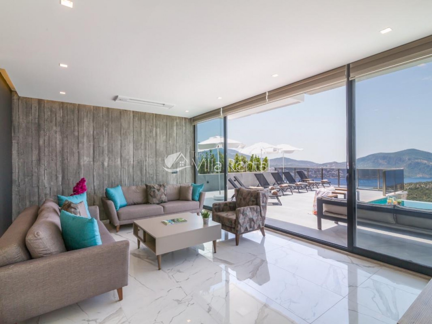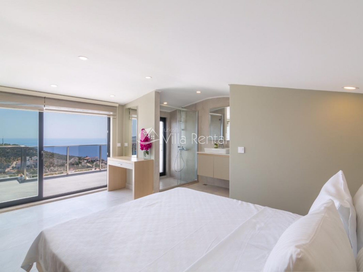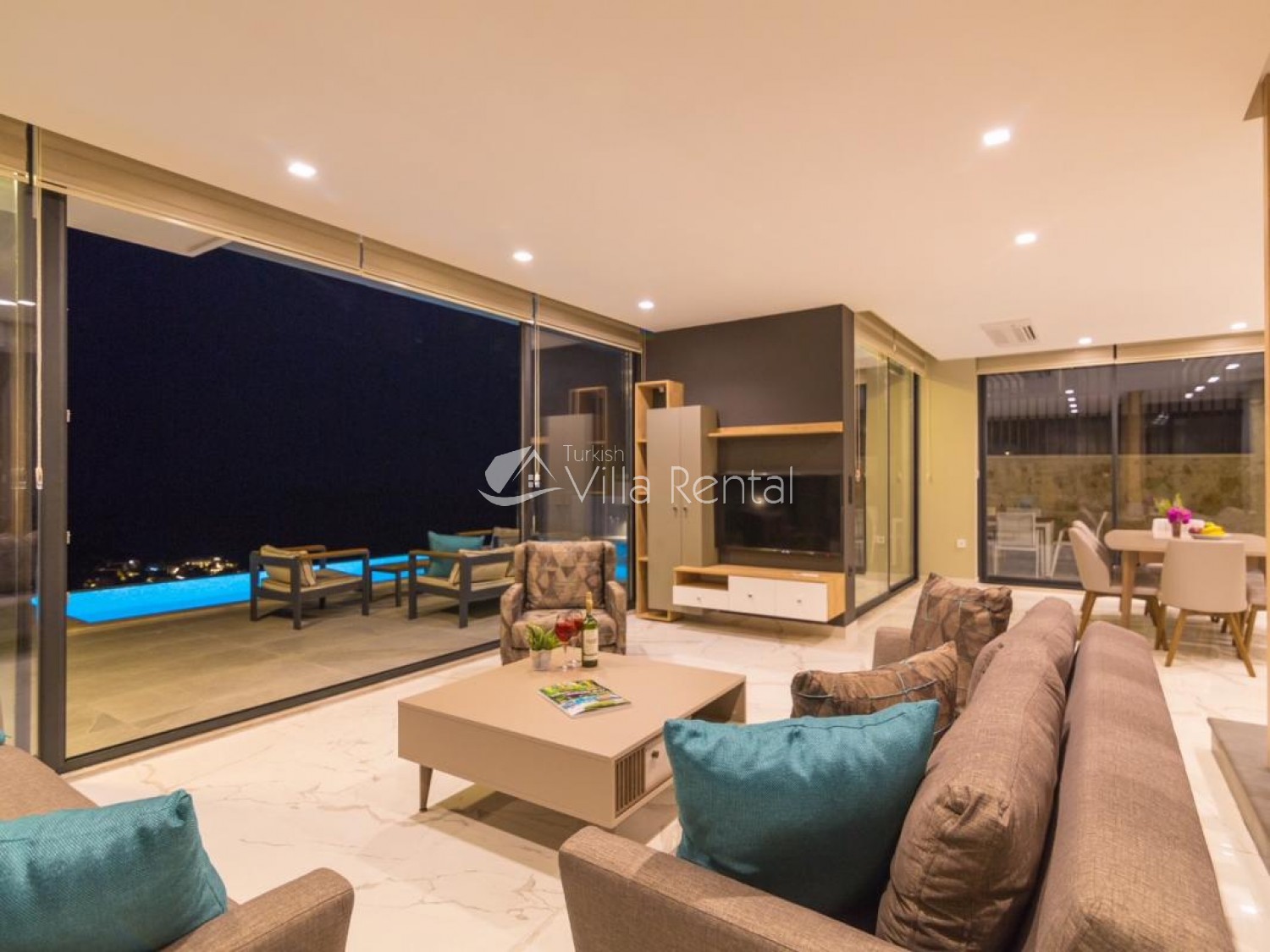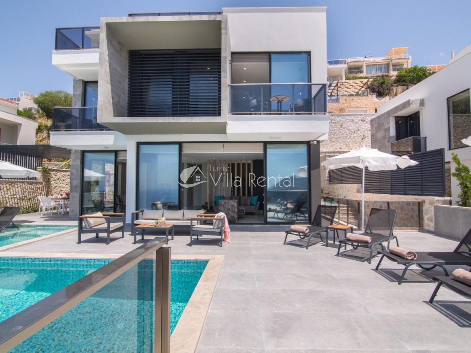 This is an ultra luxury and modern 4 bedroom villa located in one of the most sought after locations in Kalkan, which is Kalamar. It has stunning sea views, and views of Kalkan and the surrounding mountains. Inside the villa has been beautifully and luxuriously furnished. It is only 1km to the beach and town centre.