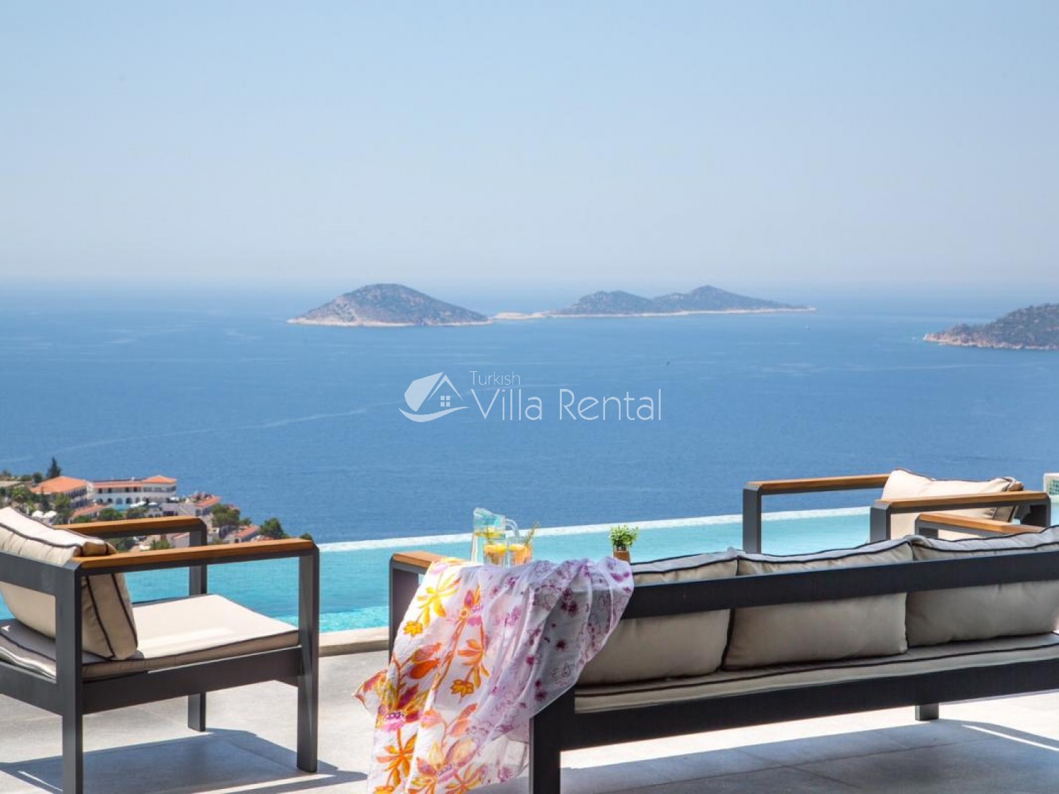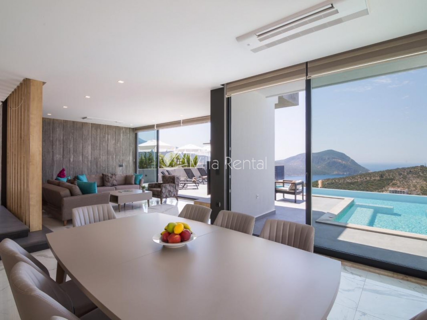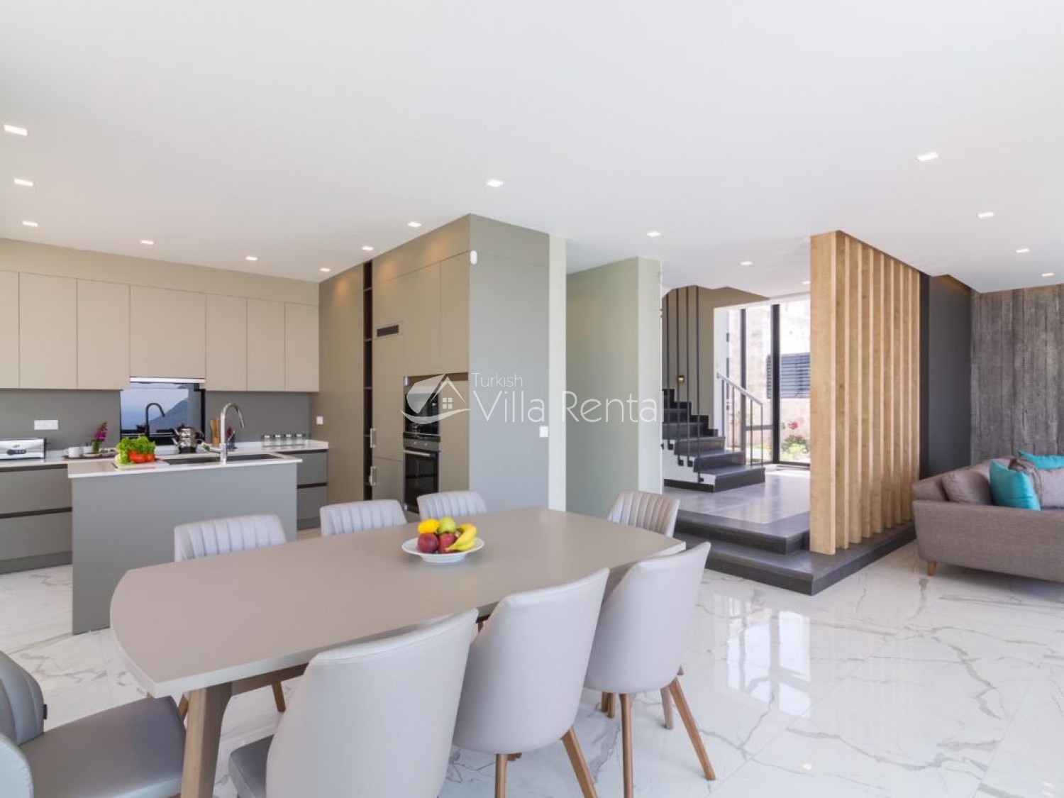 This is an ultra luxury and modern 4 bedroom villa located in one of the most sought after locations in Kalkan, which is Kalamar. It has stunning sea views, and views of Kalkan and the surrounding mountains. Inside the villa has been beautifully and luxuriously furnished. It is only 1km to the beach and town centre.