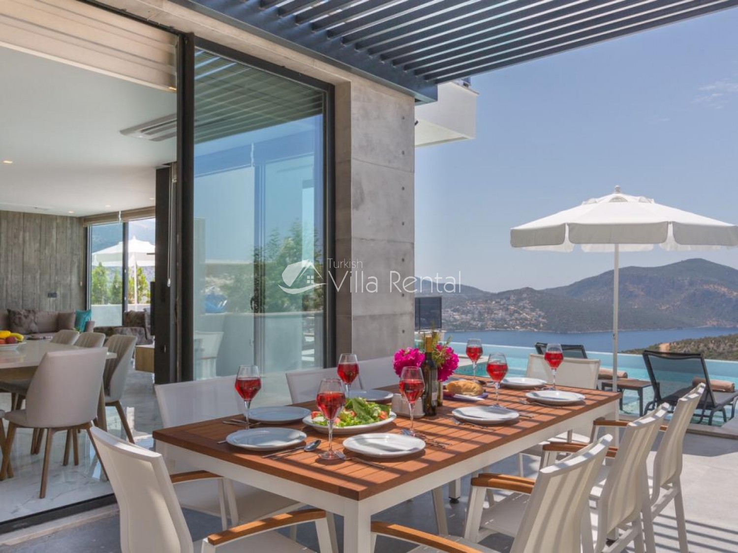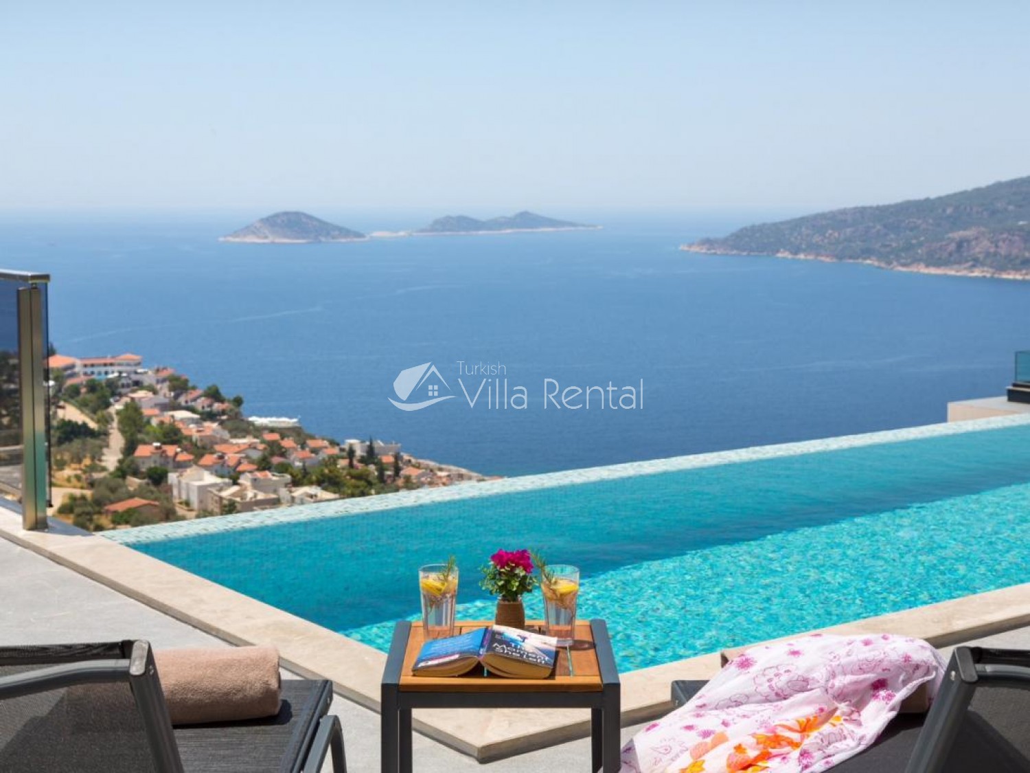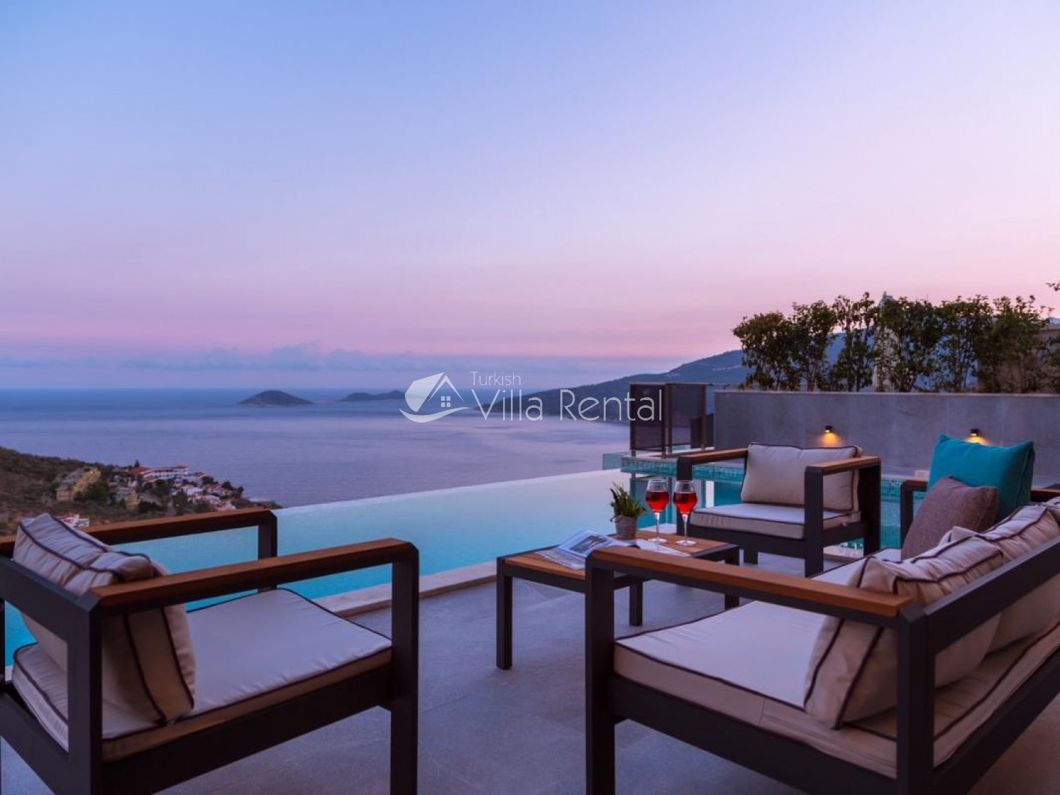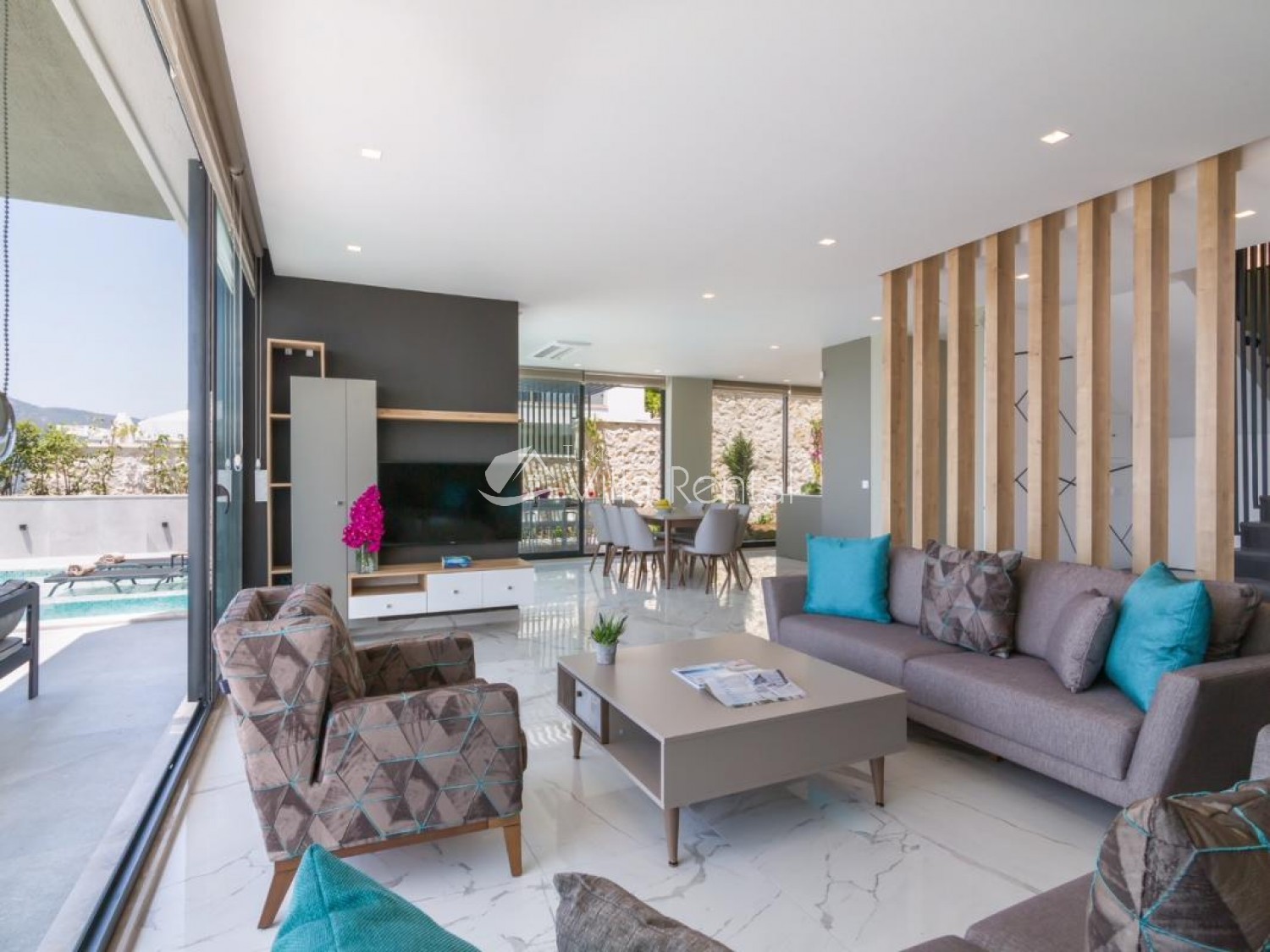 This is an ultra luxury and modern 4 bedroom villa located in one of the most sought after locations in Kalkan, which is Kalamar. It has stunning sea views, and views of Kalkan and the surrounding mountains. Inside the villa has been beautifully and luxuriously furnished. It is only 1km to the beach and town centre.