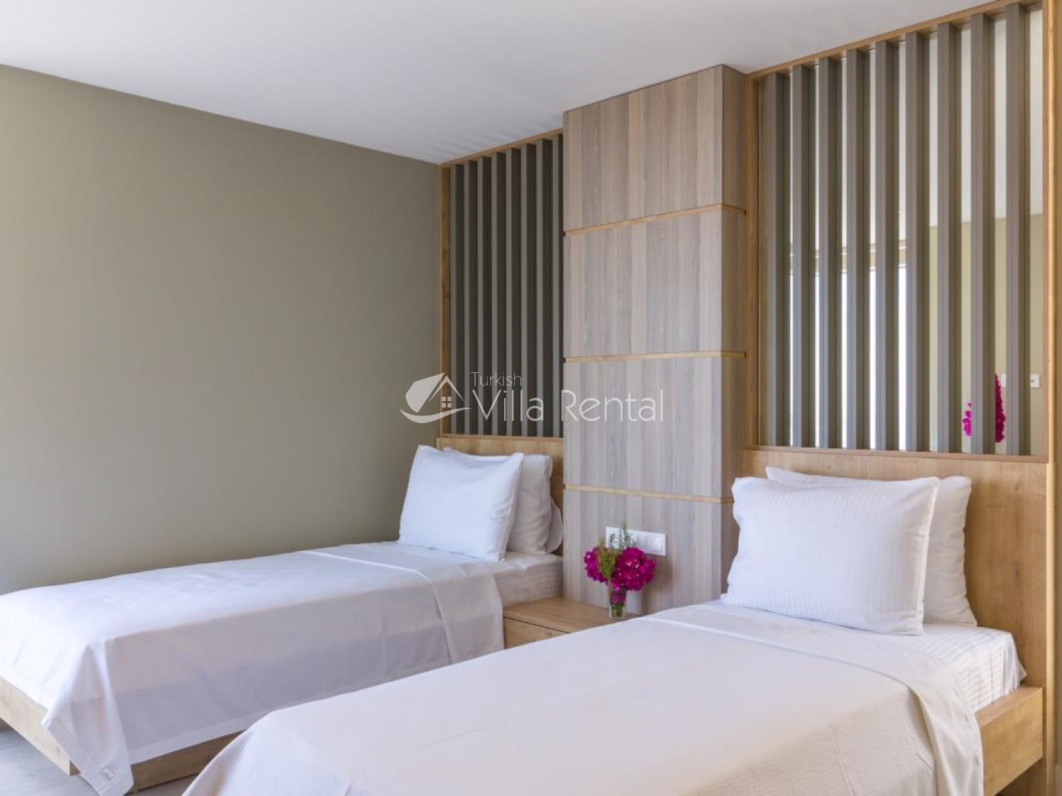 Bedroom 4: Suite room , twin beds, wardrobe , nightstand , air conditioning, bathroom and toilet.
