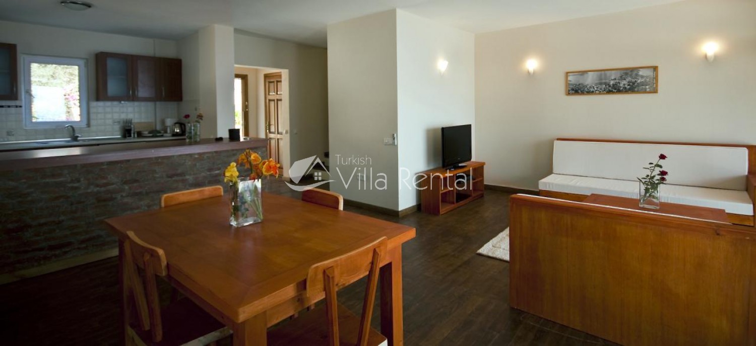 Villa Kagan is a 3 bedroom, semi-detached villa which is located on the prestigious Kas peninsula. It is set in great location because although it is quiet and peaceful, there are a couple of boutique hotels and restaurants within walking distance of the villa. This means that you can enjoy the nearby facilities or go for an evening meal without worrying about transport home.