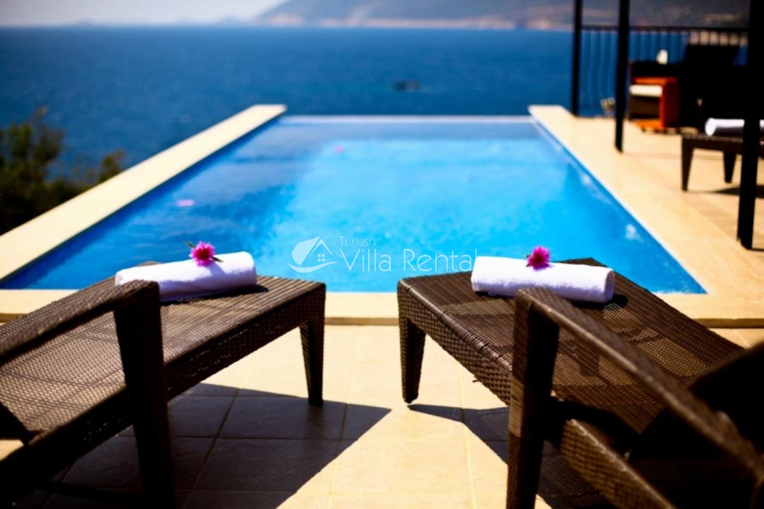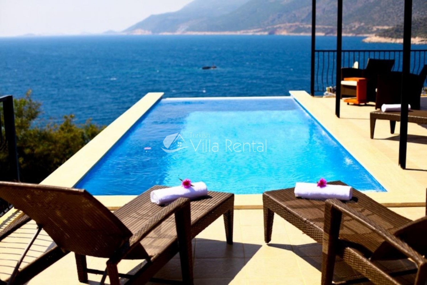 Kas town centre is just a five minute drive away and there is a regular minibus service which runs to and from the town during the season. The steps leading down from the villa provide easy access to the sea which is 150 metres away, and it should be noted that the villa has stunning views of the sea.
