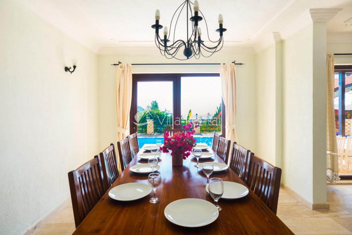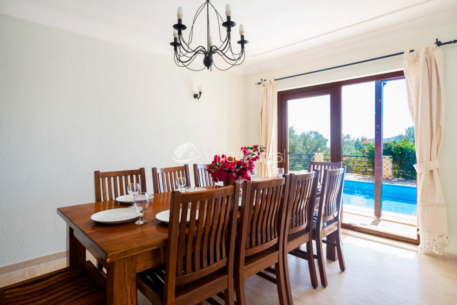 Kitchen: Our kitchen, which is designed in the American kitchen style, has equipments (pans, pots) to meet your every need. There is a dishwasher, washing machine, refrigerator, built-in 4-hob, oven, electric kettle, toaster, dinner table for 12 people, dinner table for 10 people, cutlery, tea, coffee and water glasses. . There is also access to the pool terrace.