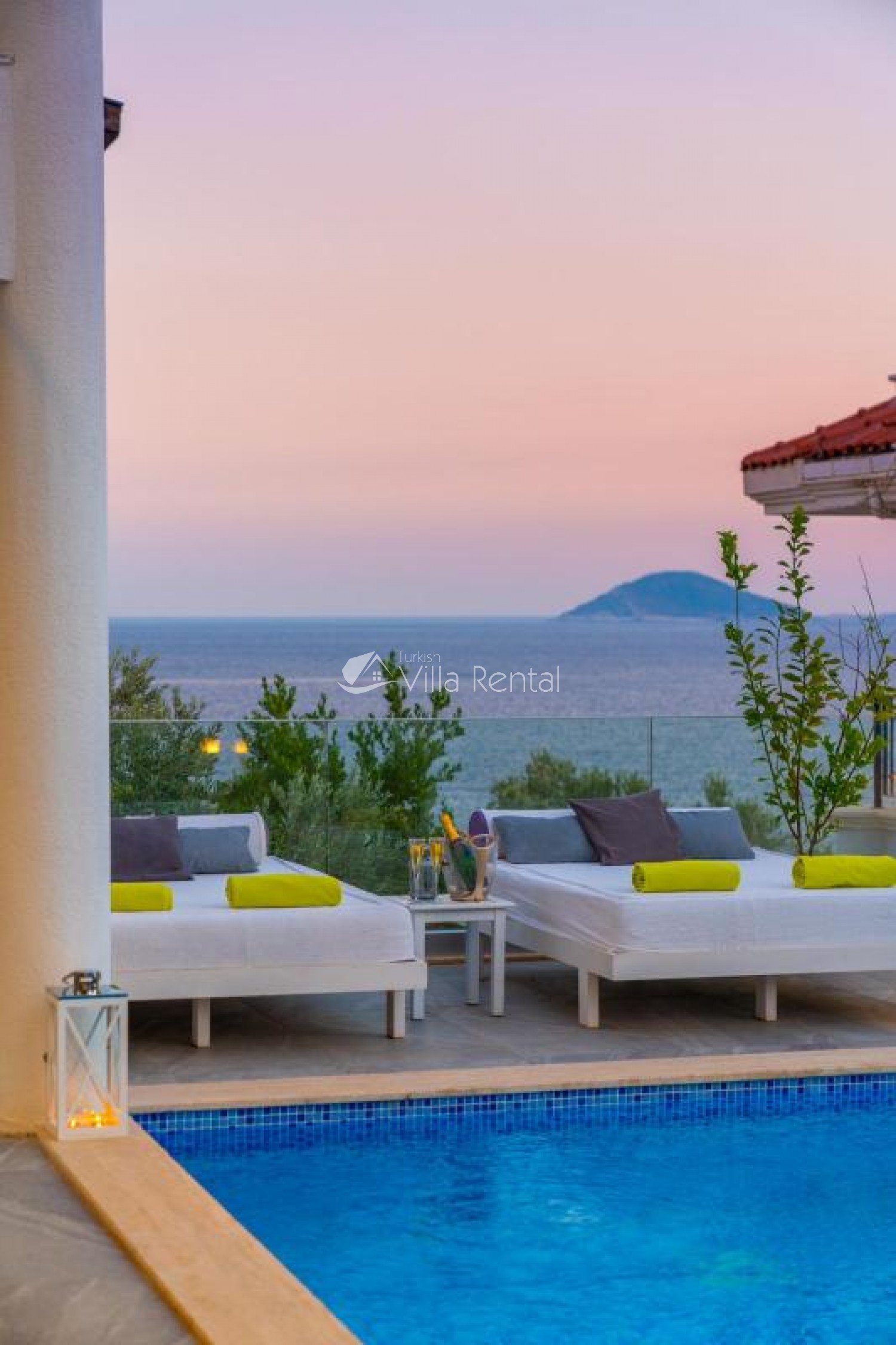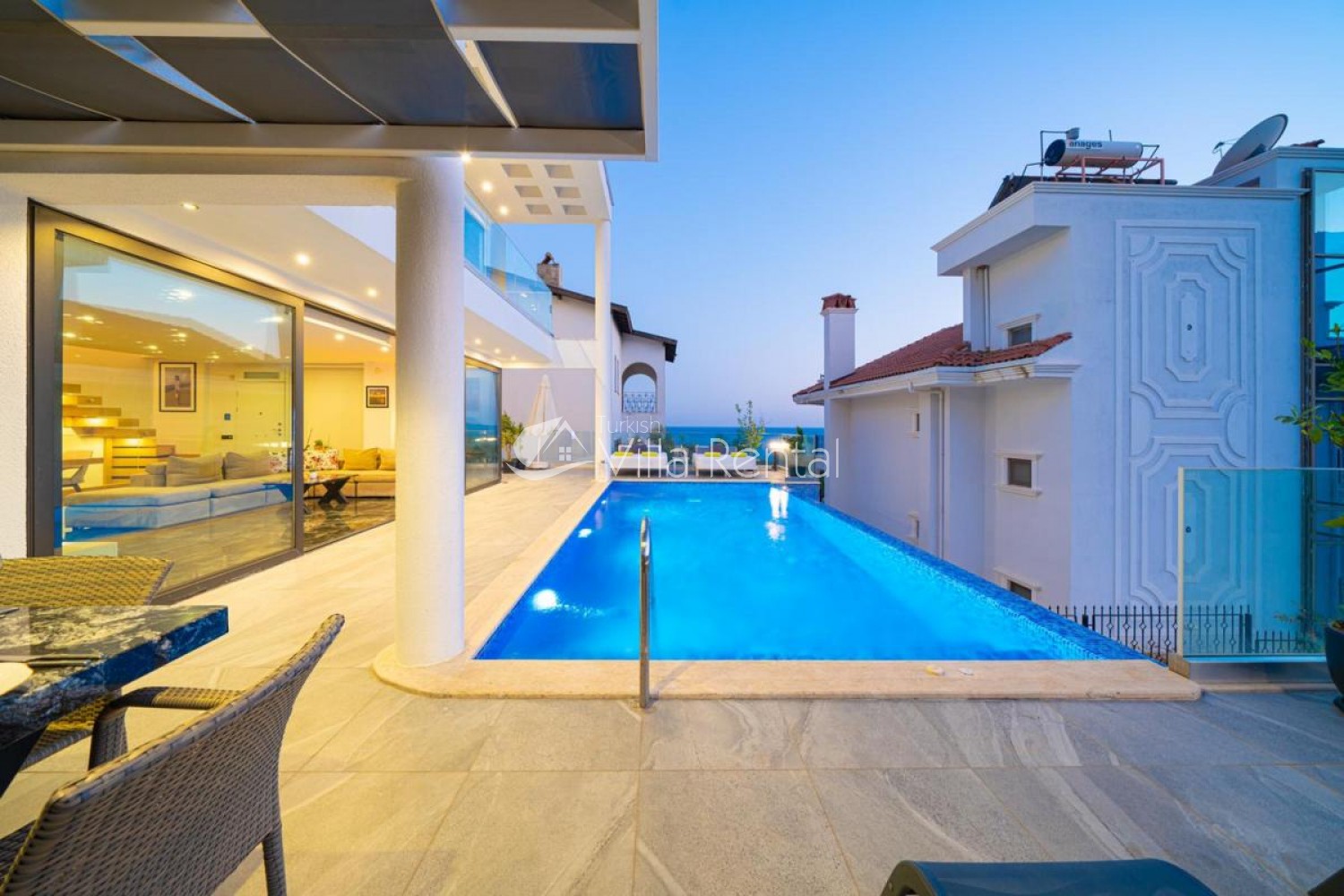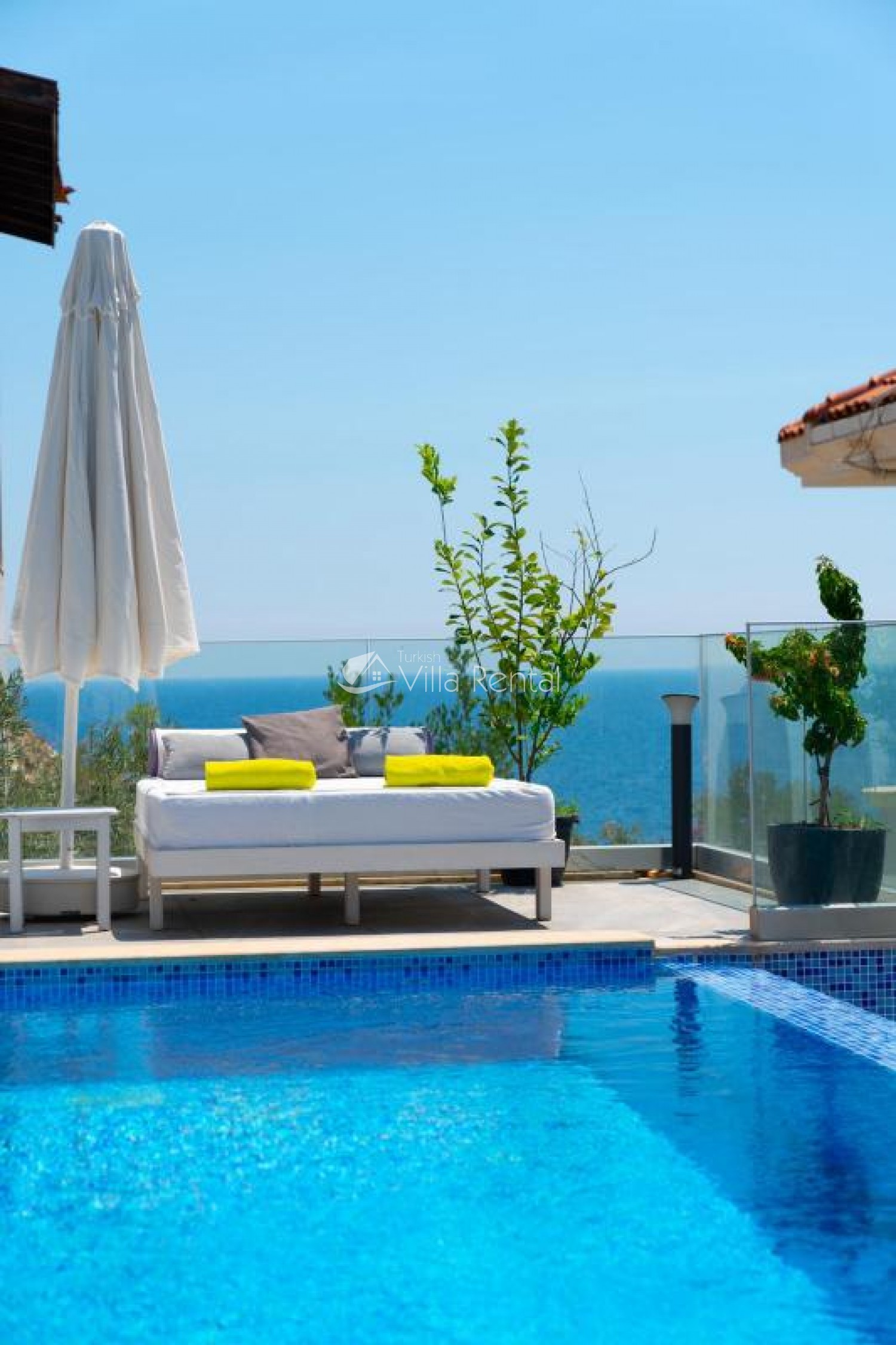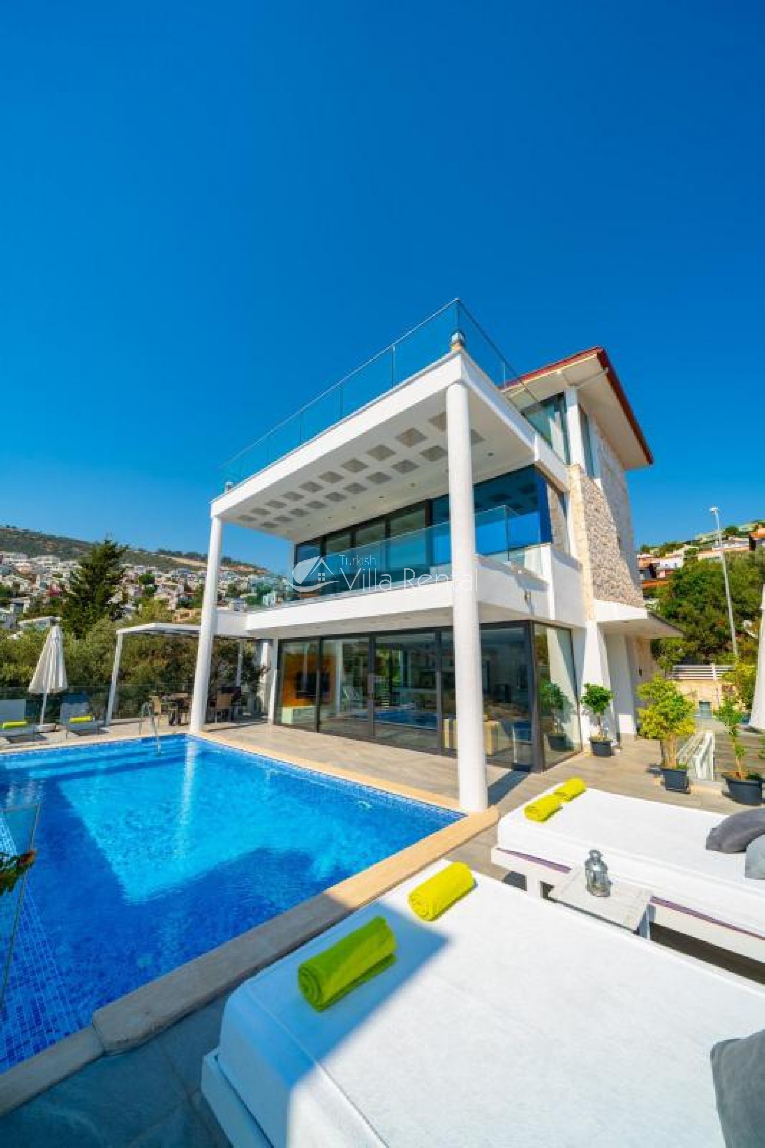 Villa Naz Duo is a villa with private pool located in Kalkan Kalamar area of Antalya. Kalkan is a holiday resort famous for its magnificent beaches. Only 50 meters from the sea. Villa Naz Duo has a magnificent sea view and stands out with its modern and luxurious design. The villa has a capacity of 8 people with 4 bedrooms. For this reason, it is an ideal villa for large families and groups of friends.
