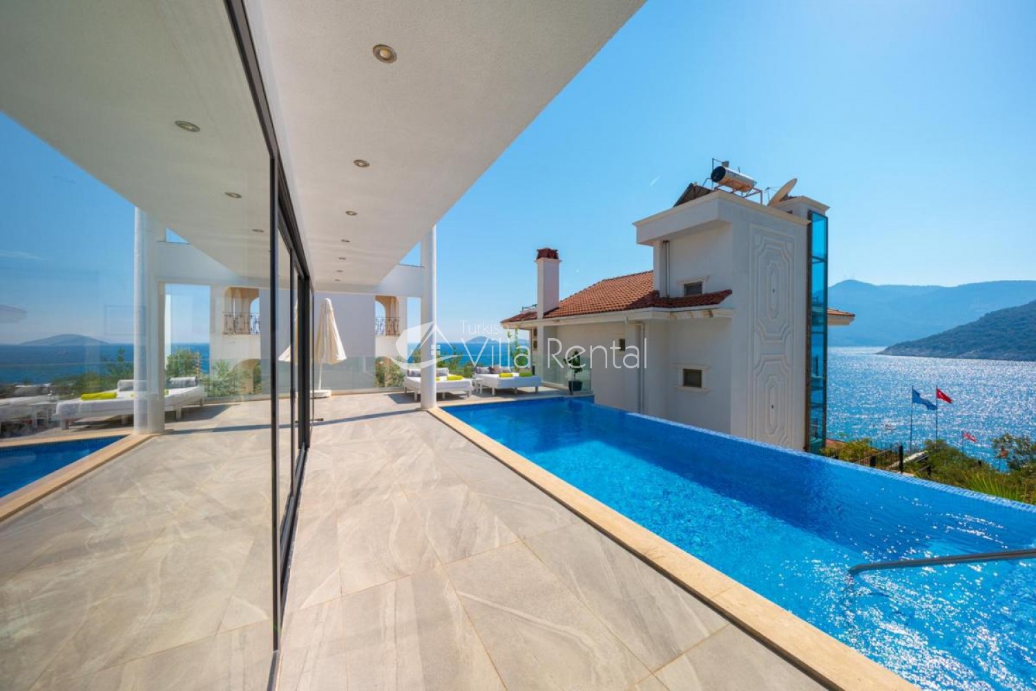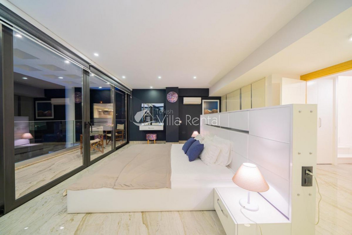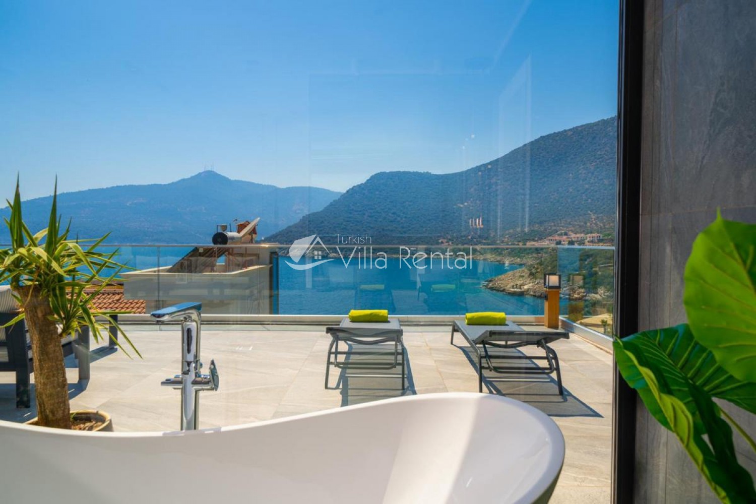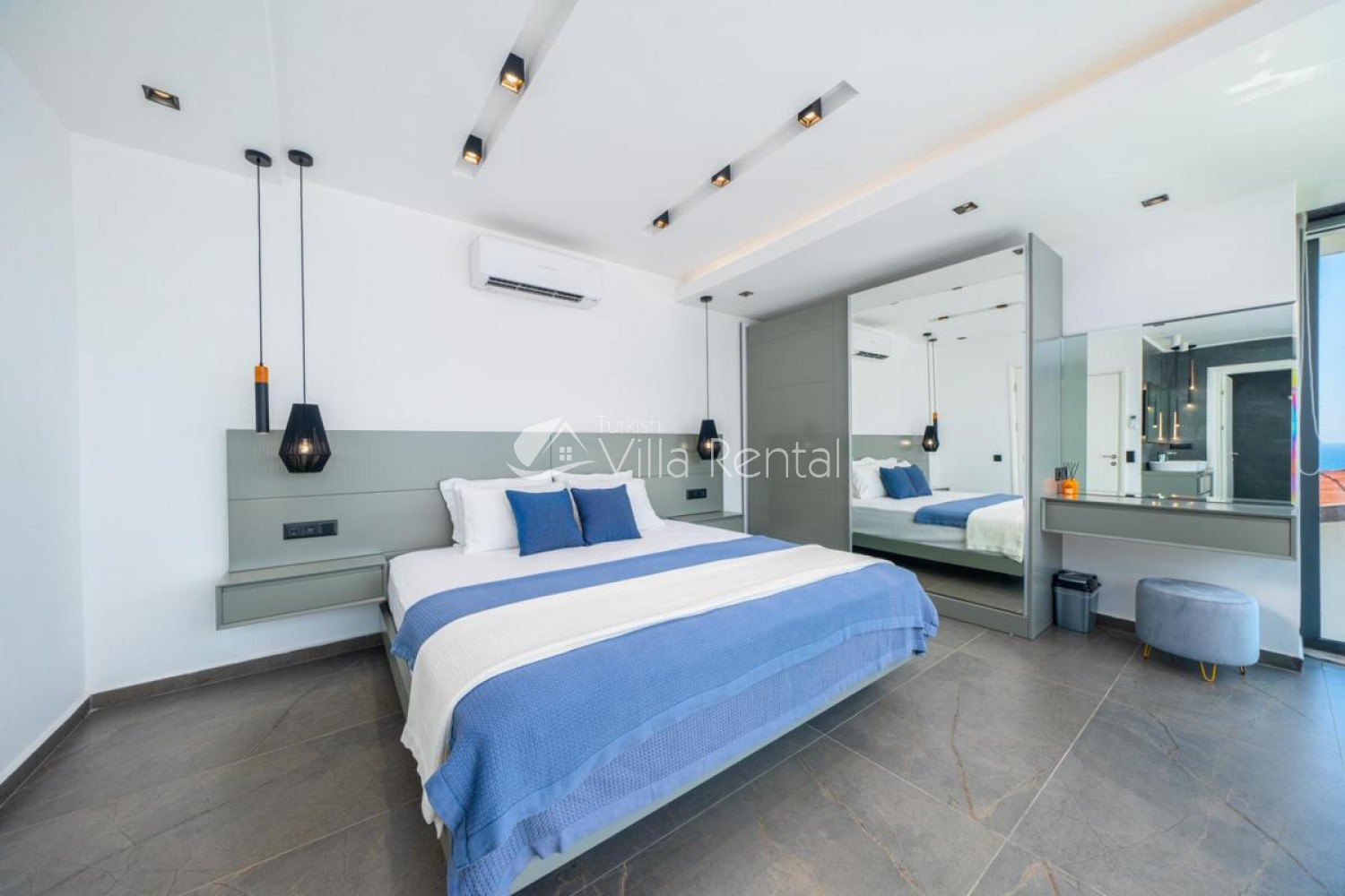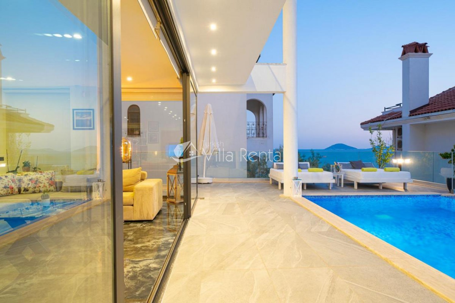 Villa Naz Duo is a villa with private pool located in Kalkan Kalamar area of Antalya. Kalkan is a holiday resort famous for its magnificent beaches. Only 50 meters from the sea. Villa Naz Duo has a magnificent sea view and stands out with its modern and luxurious design. The villa has a capacity of 8 people with 4 bedrooms. For this reason, it is an ideal villa for large families and groups of friends.