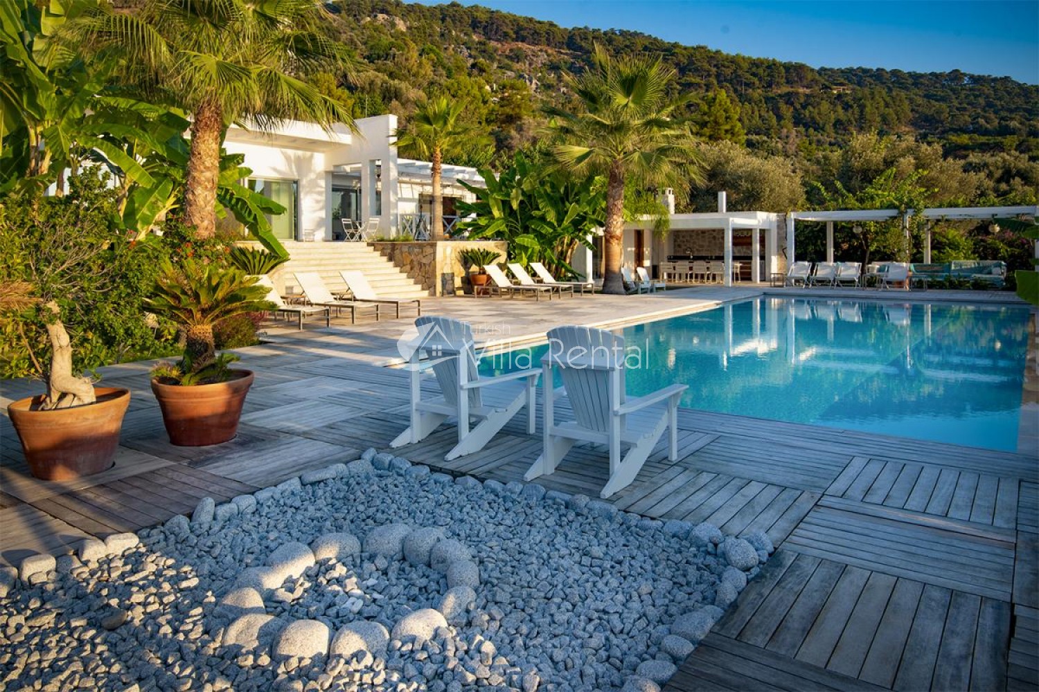 The villa has 4 bedrooms which sleep up to 8 people, and it lays across 4 acres of land which is completely unseen from anybody outside the property. This is the idea villa for anyone who wants a a luxury holiday in a peaceful, luxurious location, and it is only 300 metres from the sea. The villa has CCTV.