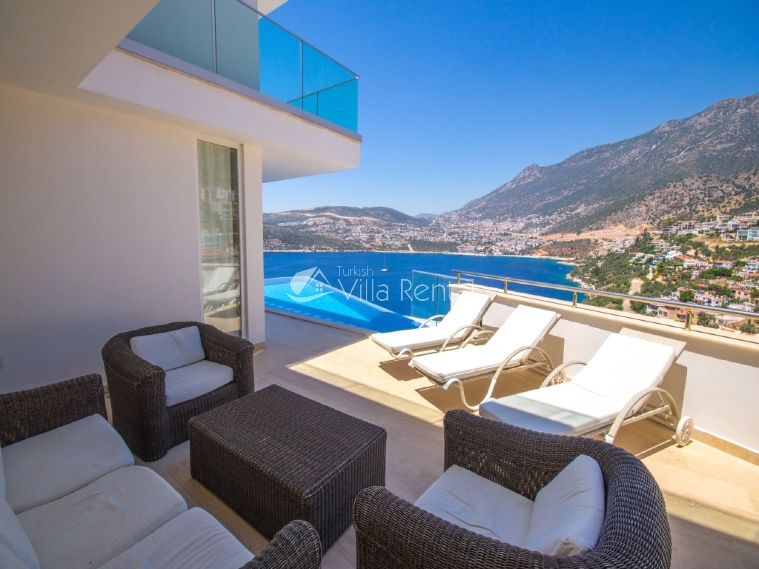A very large and luxury villa in the Kisla area of Kalkan, it has 6 bedrooms which allow the property to hold up to 12 people. The villa has fantastic sea
