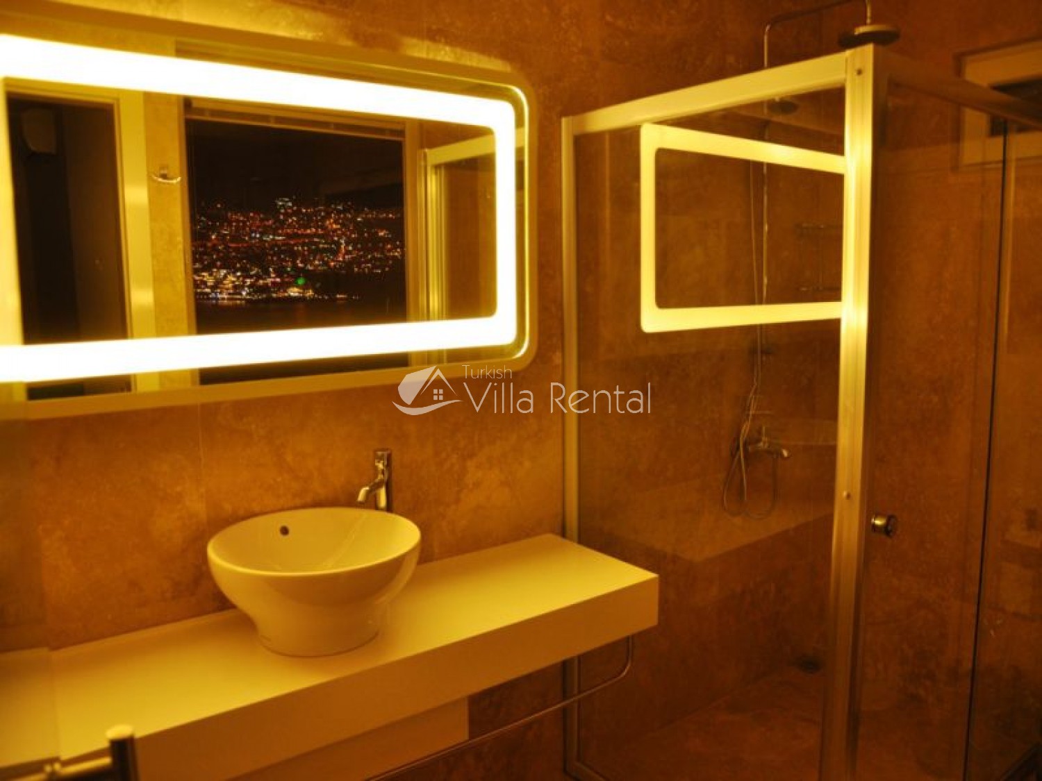 One of the most sought after areas of Kalkan, is an area called Kisla, which is home to this magnificent 6 bedroom villa, Villa Pırlanta, the highest quality property in the neighbourhood. It has breath taking, panoramic sea views, as well as views of the mountains and surrounding areas, which are maximised by the large top-to-floor windows and French doors. The villa is furnished with first class furniture and contains everything you will need during your stay.