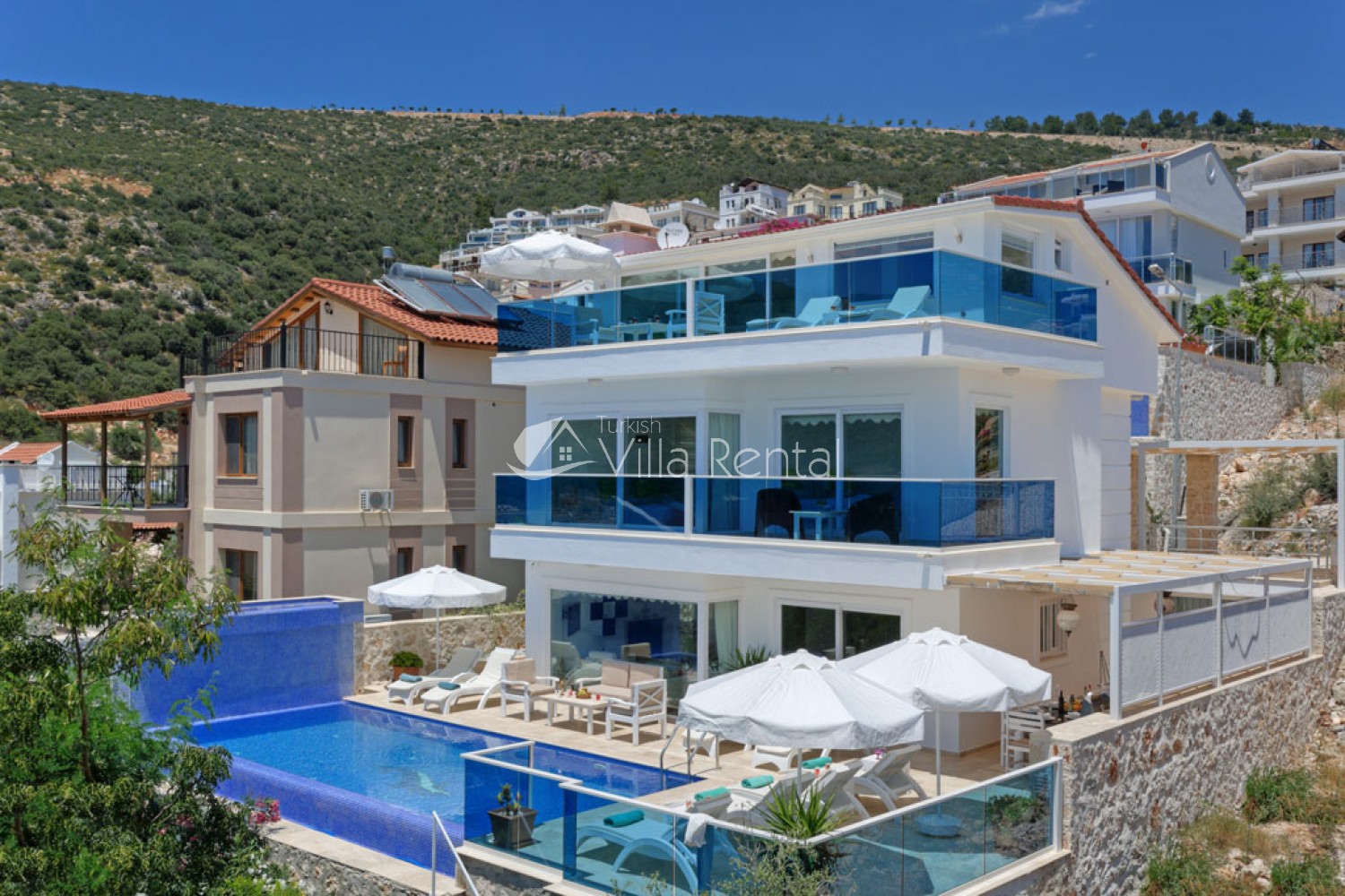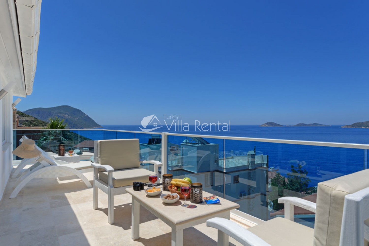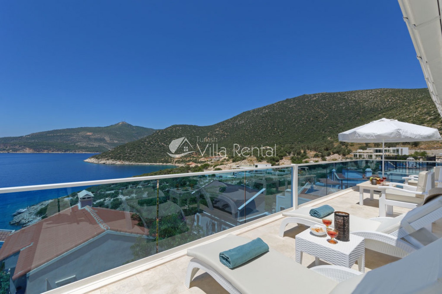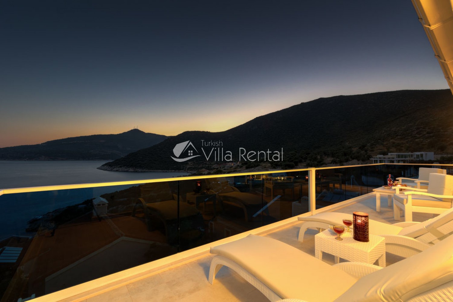 Villa Ruzcar is an impressive luxury villa located in a great position in Kalkan as it is less than a 5 minute walk to the nearest beach club, and its a slightly elevated position provides the property with beautiful panoramic sea views, especially from the large upstairs balconies.