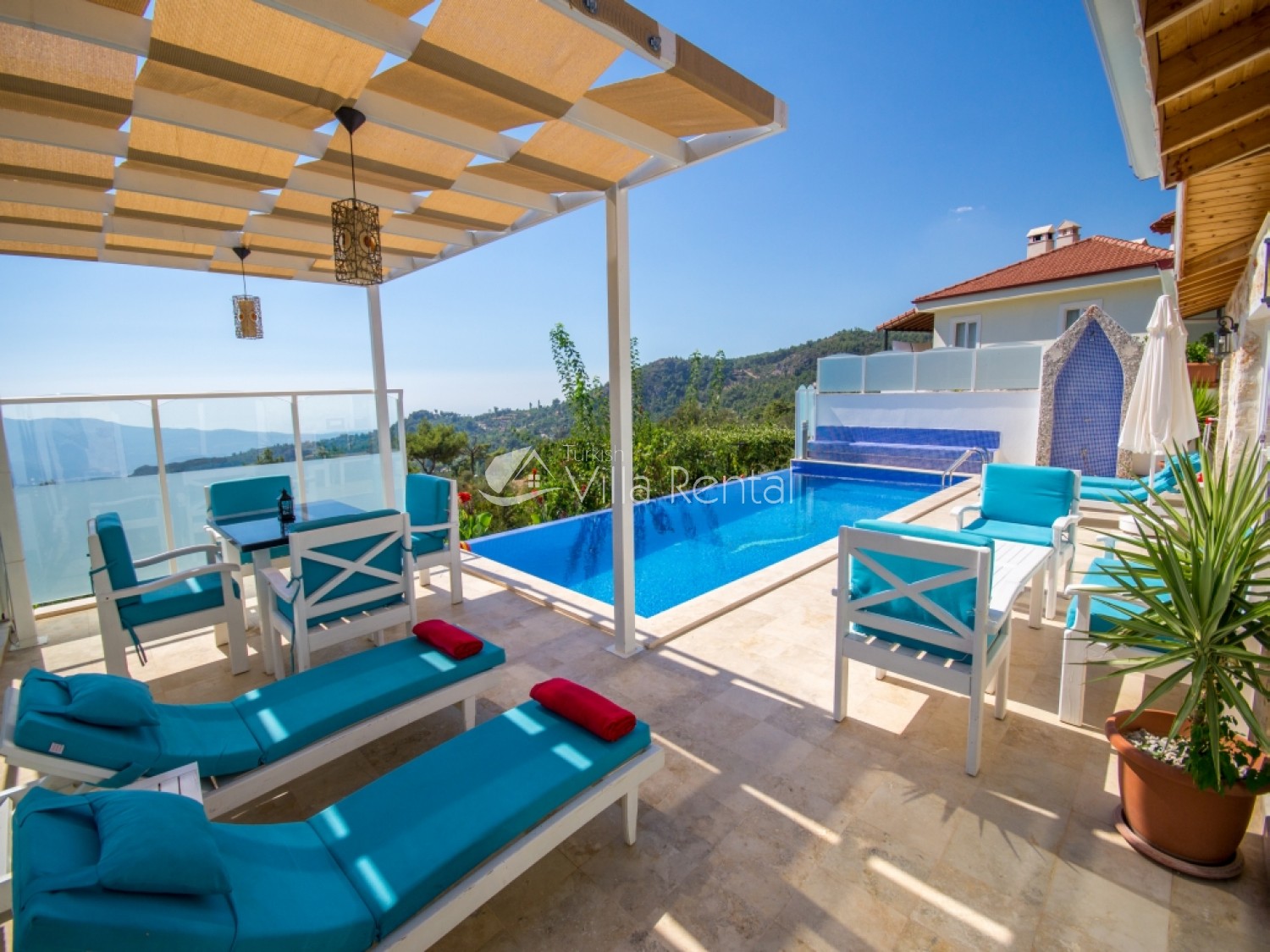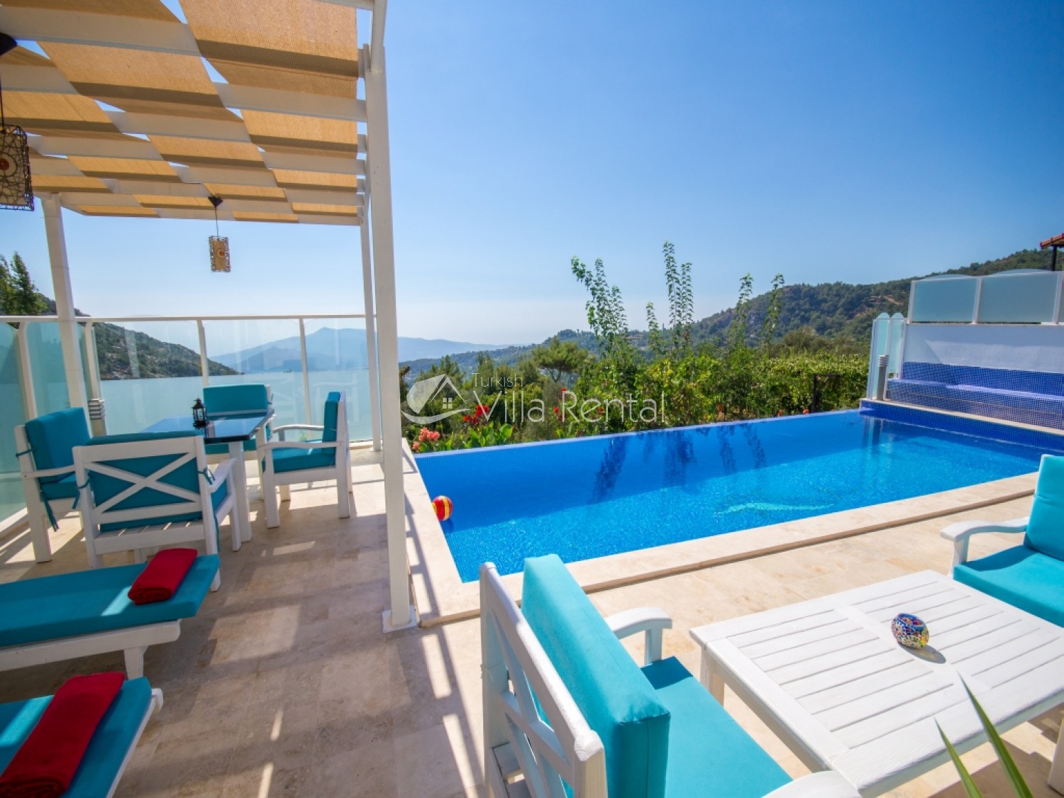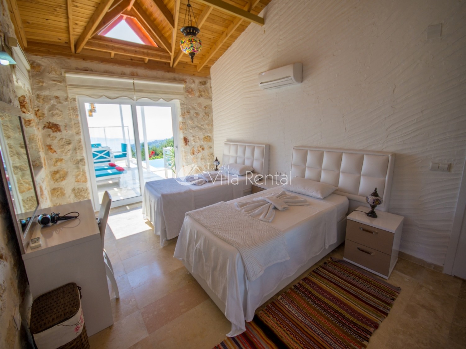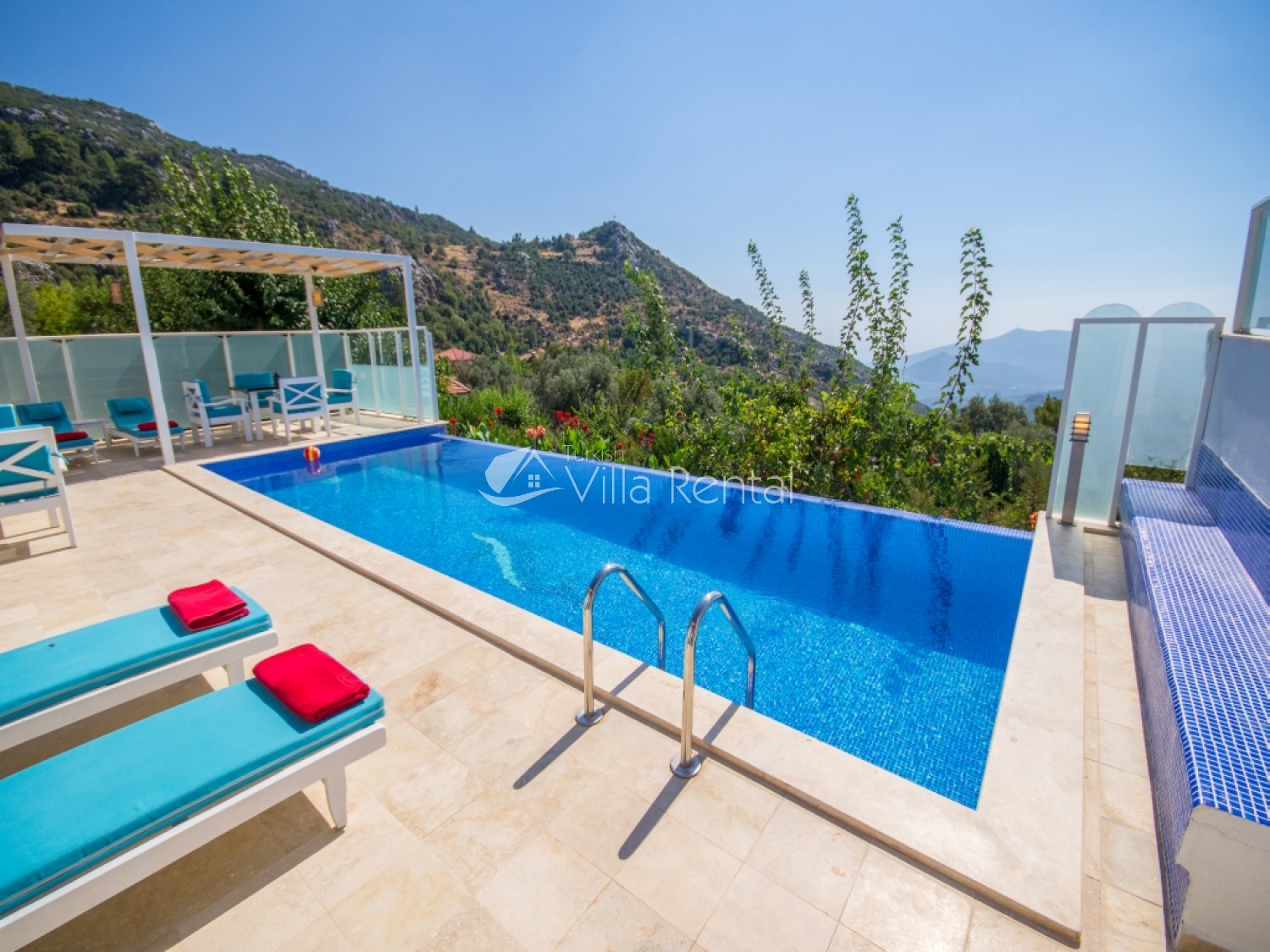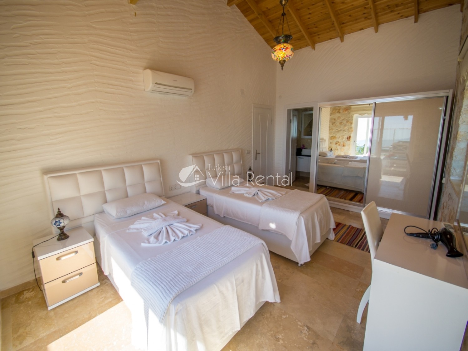 Villa Sade is a modern, 2 bedroom villa which is full of charm and character. It is set in a peaceful, tranquil area and yet is still only a few minutes’ walk from the local amenities. The villa also comes with breath taking views of the mountain valley leading to Patara beach. The bedrooms consist of one double room, and one twin room, which makes the villa a perfect family holiday home, as well as an ideal rental for two couples or a small group of friends. Both bedrooms have an en-suite bathroom, as well as a view of the pool and sun lounge area. The beautiful and lively town of Kalkan is just a 20 minute drive where you will find sophisticated restaurants, cafes, and bars.