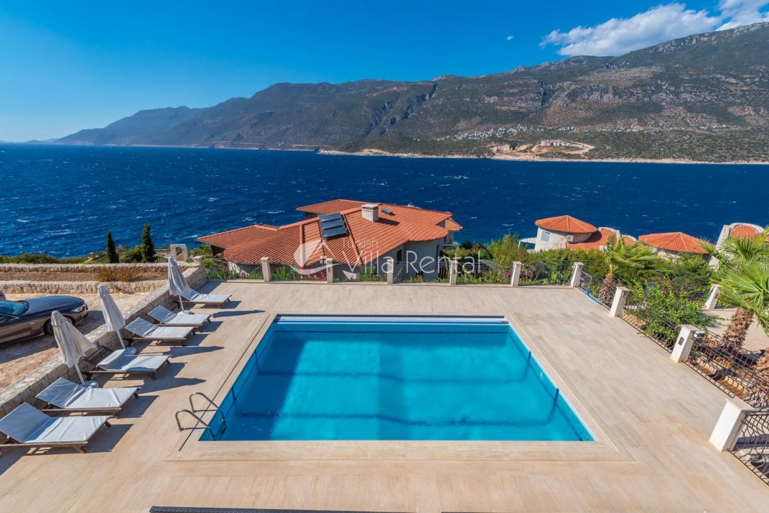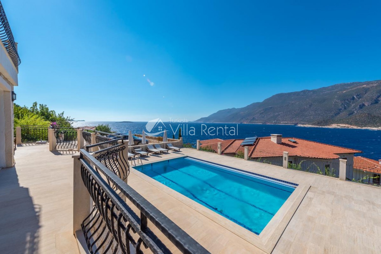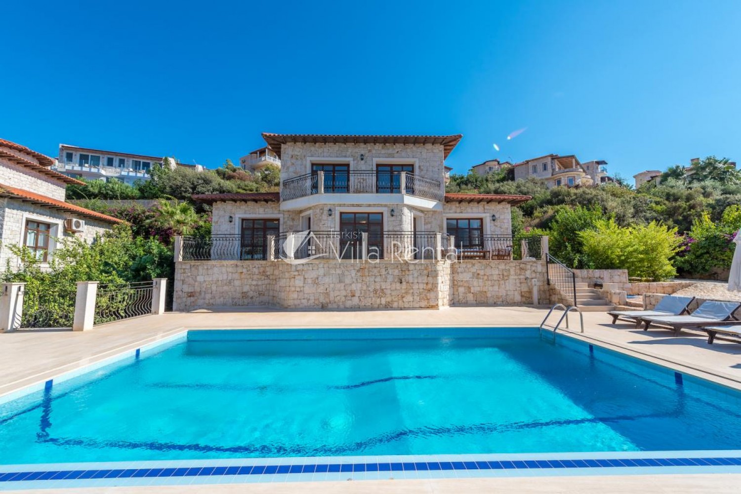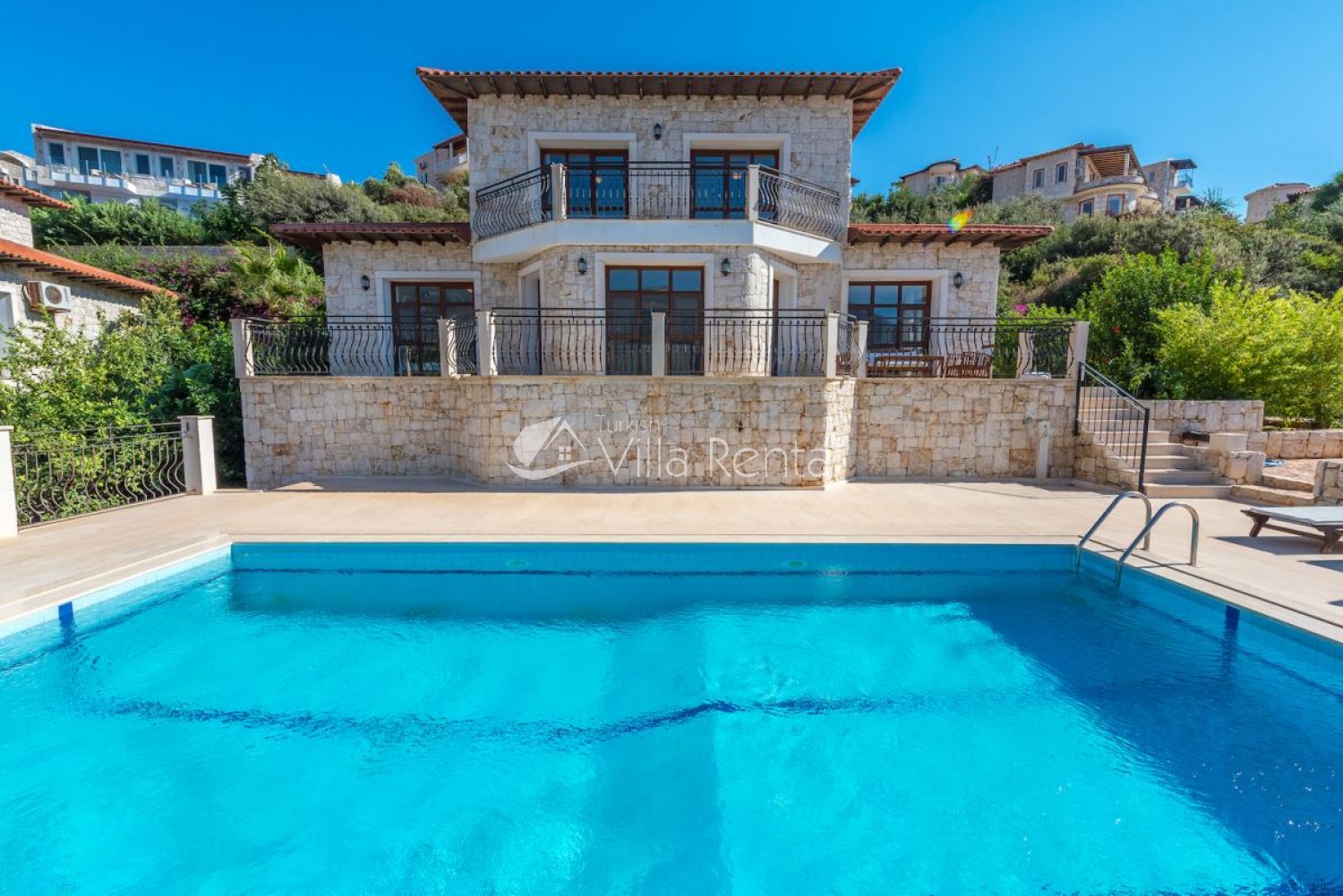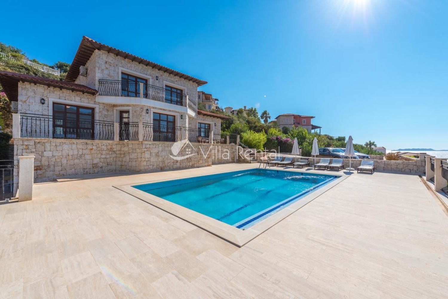 Villa Sahin is a 3-bedroom private pool villa with a great view on the Cukurbag Peninsula in Kas. Our villa has a wide panoramic view of the Mediterranean. It is possible to watch the sunset from each side of the villa. Our private villa with garden and private swimming pool offers guests a quiet and fun holiday. Guests can swim in the cool waters of Kaş or swim in the villa pool. It is only a few minutes by car ride to the important beaches of the Kas Peninsula and to the Throat. Kas region is rocky, but there are 4-5 platforms at the sea and you can swim easily from here. No sunbeds and umbrellas are available on the platforms. Villa Sahin 2 has the same standards next to our villa. At the same time 2 villas are rented and capacity reaches 12 people. Villa Sahin has a swimming pool above 1 standards and has a garden and parking. Note: The last 50 meters of the road leading to our villa is prone to land structure and does not pose a problem for vehicle landing and exit. Weekly electricity use is limited and use up to 420 KW is included in the price. For each KW after 420 KW, 0.50 TL is taken at the output.)
