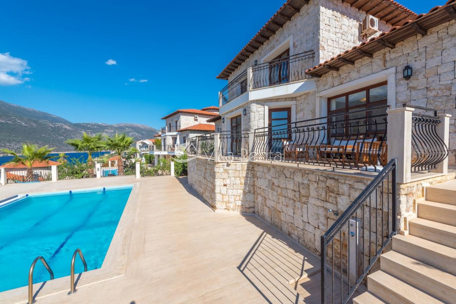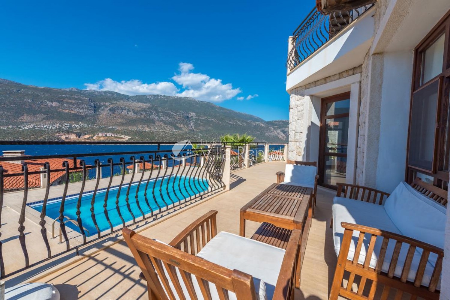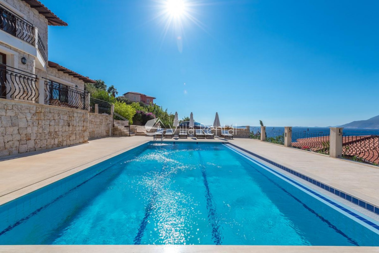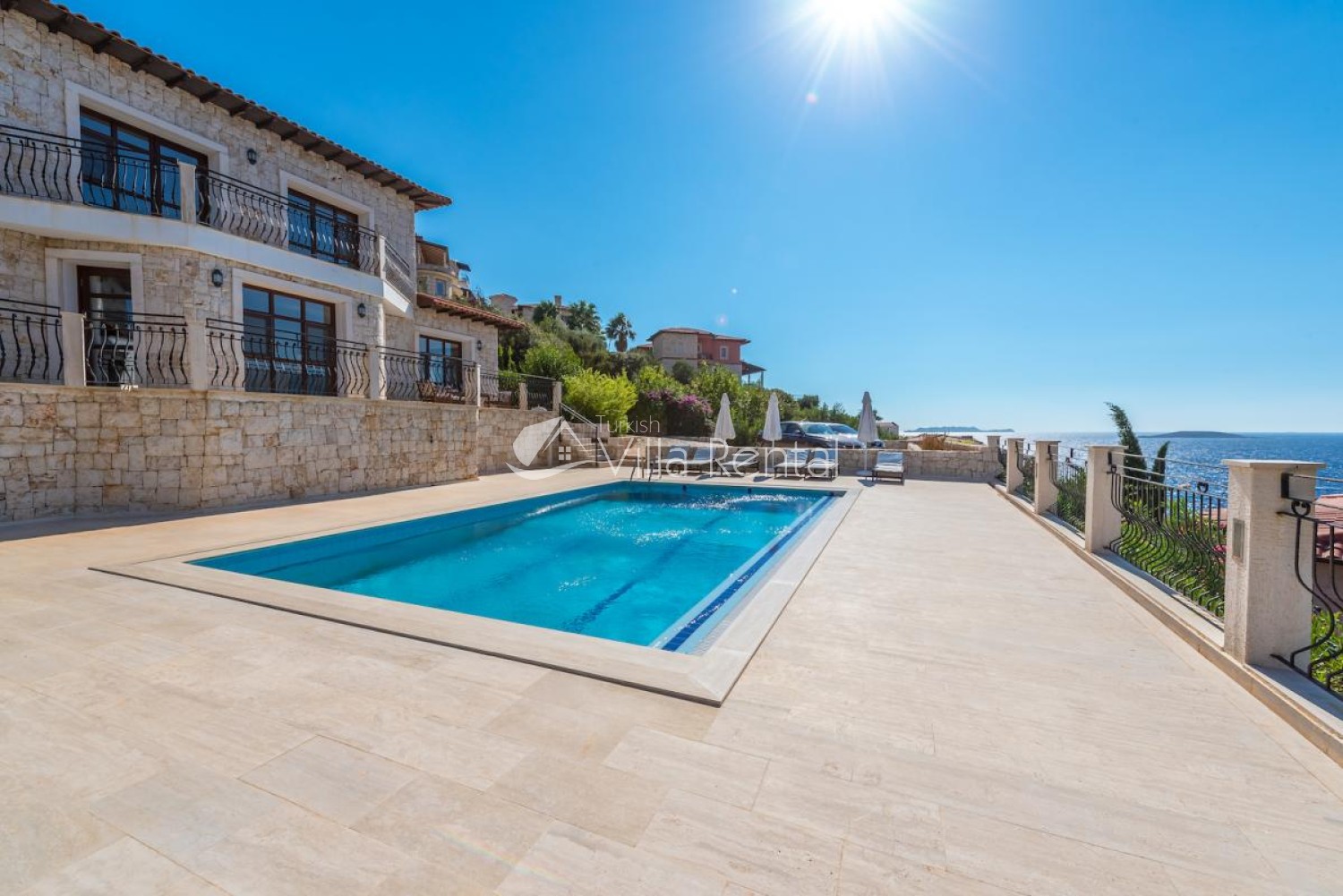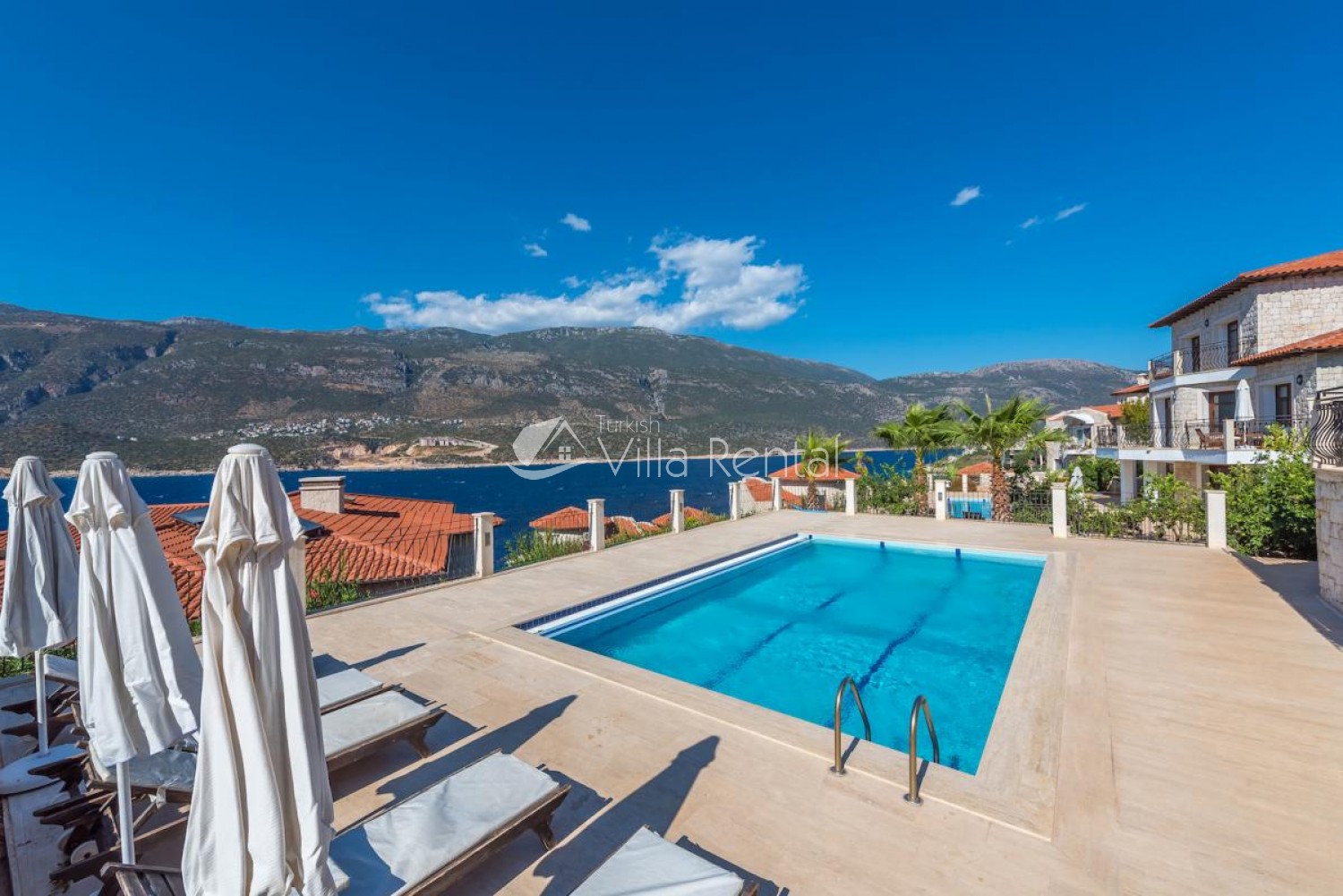 Villa Sahin is a 3-bedroom private pool villa with a great view on the Cukurbag Peninsula in Kas. Our villa has a wide panoramic view of the Mediterranean. It is possible to watch the sunset from each side of the villa. Our private villa with garden and private swimming pool offers guests a quiet and fun holiday. Guests can swim in the cool waters of Kaş or swim in the villa pool. It is only a few minutes by car ride to the important beaches of the Kas Peninsula and to the Throat. Kas region is rocky, but there are 4-5 platforms at the sea and you can swim easily from here. No sunbeds and umbrellas are available on the platforms. Villa Sahin 2 has the same standards next to our villa. At the same time 2 villas are rented and capacity reaches 12 people. Villa Sahin has a swimming pool above 1 standards and has a garden and parking. Note: The last 50 meters of the road leading to our villa is prone to land structure and does not pose a problem for vehicle landing and exit. Weekly electricity use is limited and use up to 420 KW is included in the price. For each KW after 420 KW, 0.50 TL is taken at the output.)