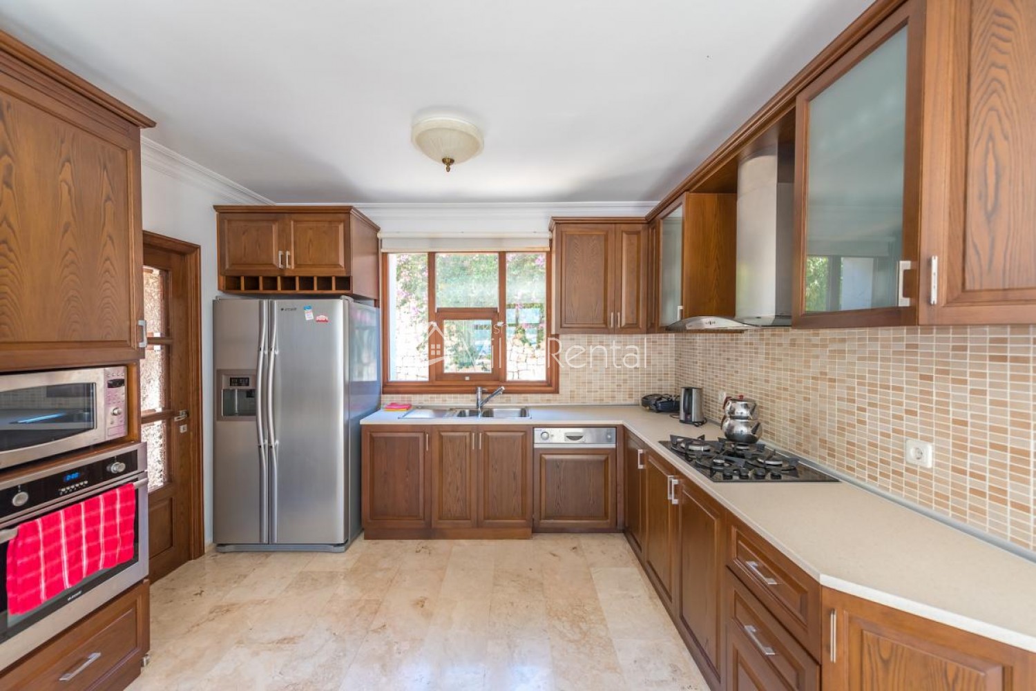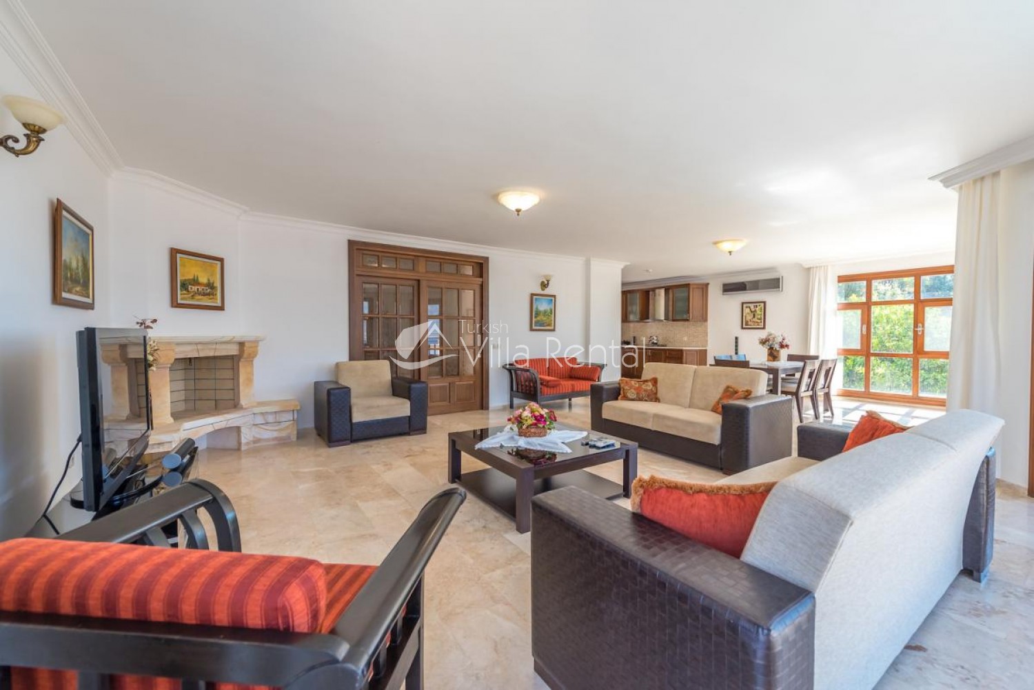 Extras Villa is delivered to the guests in a clean way. Villa entrance is done in every entrance and exit. The villa is cleaned once a week. Garden and pool maintenance and cleaning is carried out once a day.