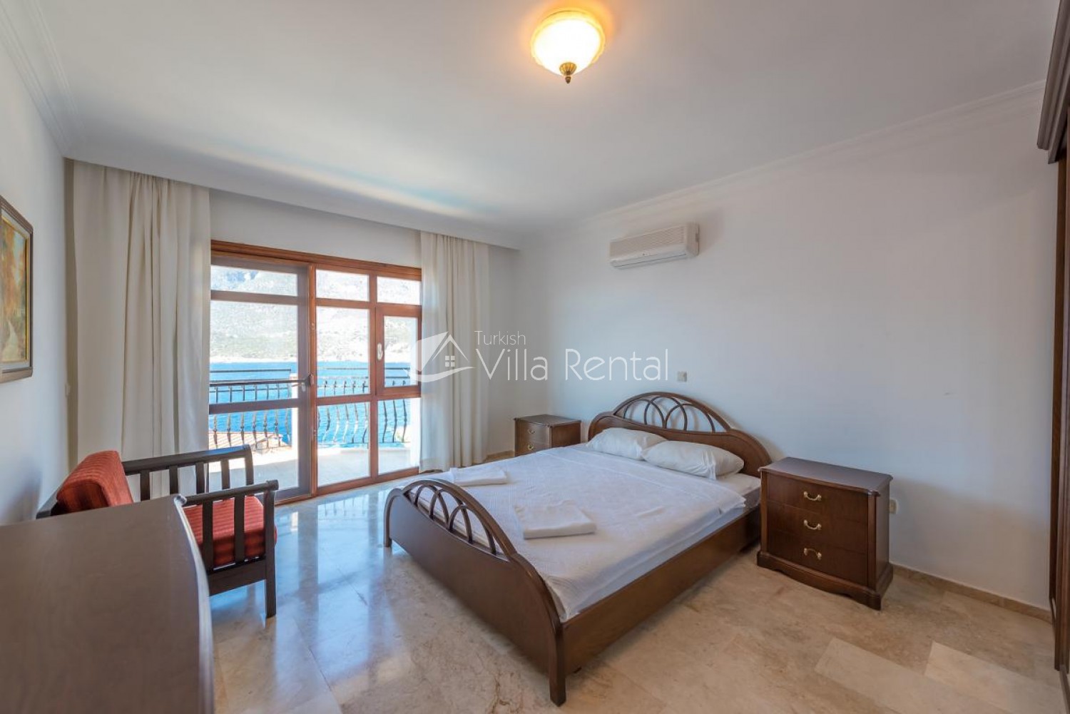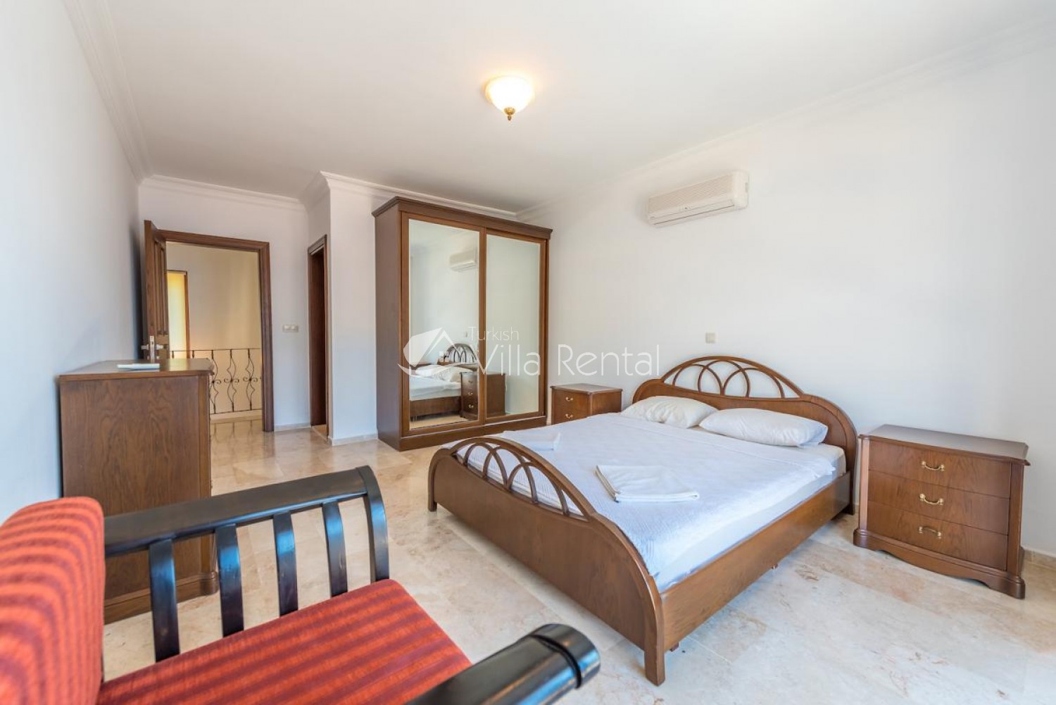 2. Bedroom: Air-conditioned bedroom with 1 double bed, bedside table, wardrobe and balcony. (On the upper floor)