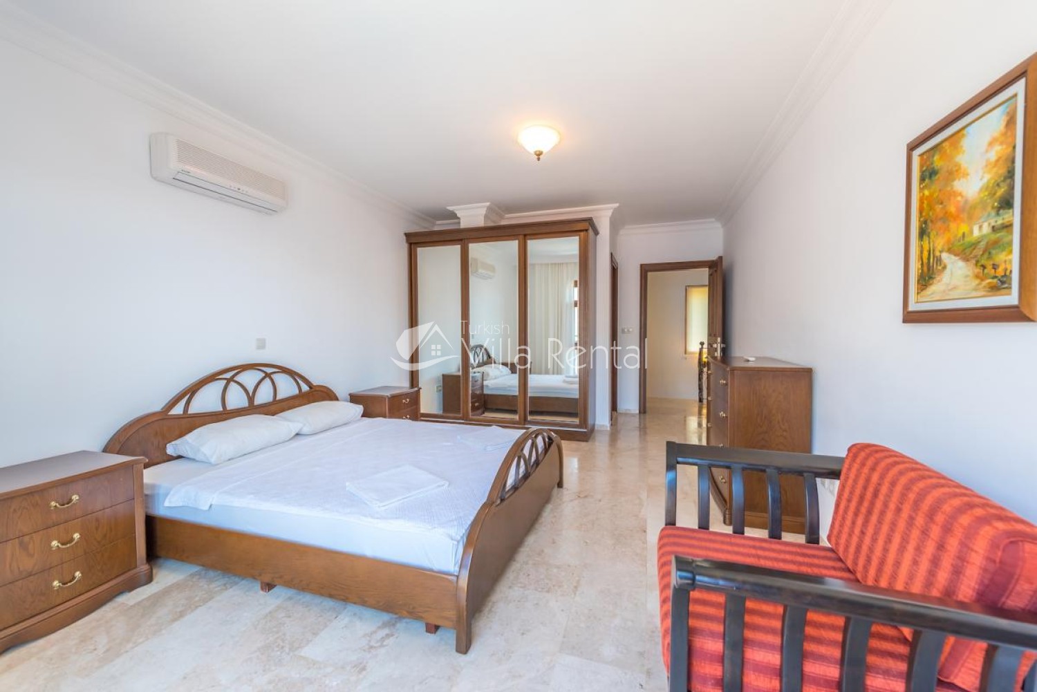 Bedrooms: Villa has 3 bedrooms and air conditioning. The bedrooms have clean bedding sets and towel sets.