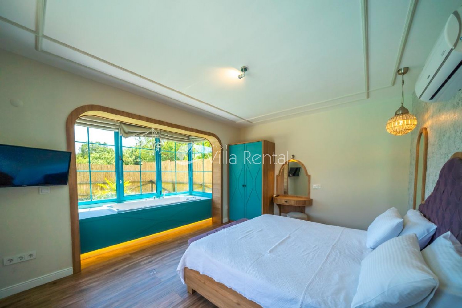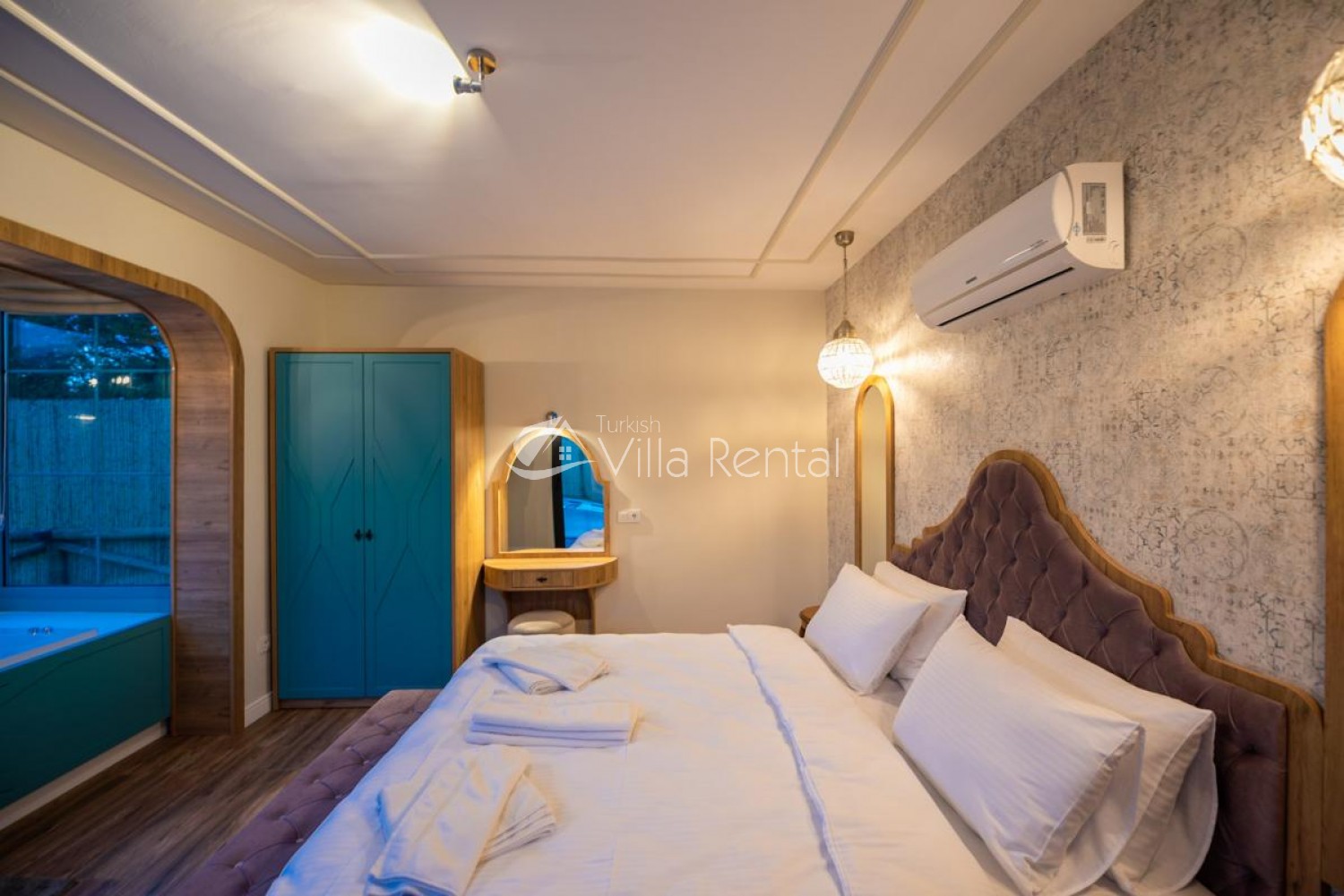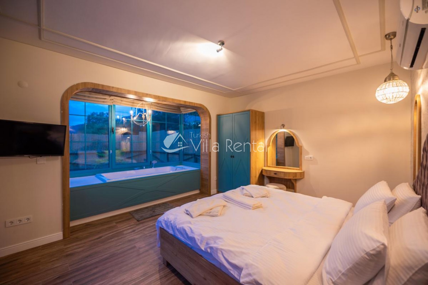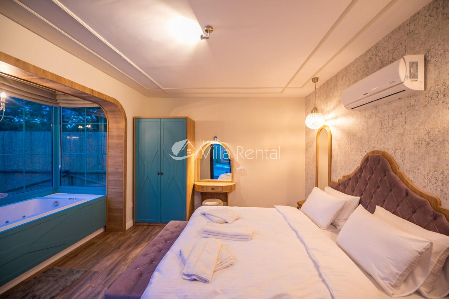 1.Bedroom: Double bed, bedside table, vanity table, wardrobe, jacuzzi, air conditioning, TV, bathroom & wc.