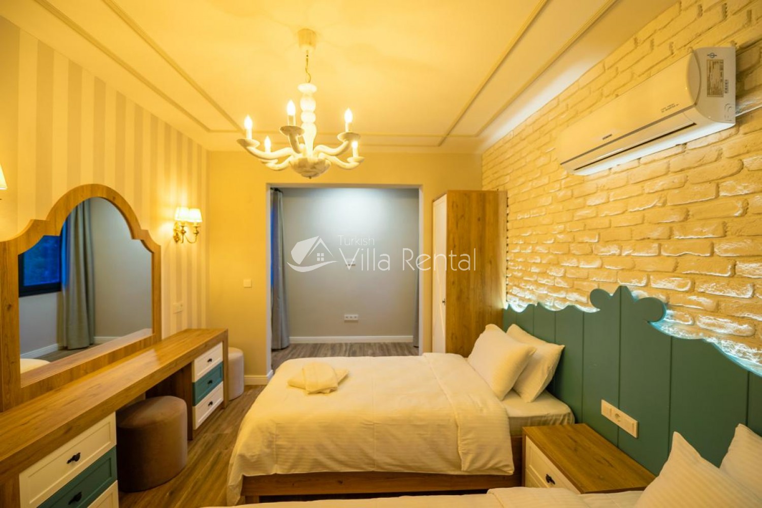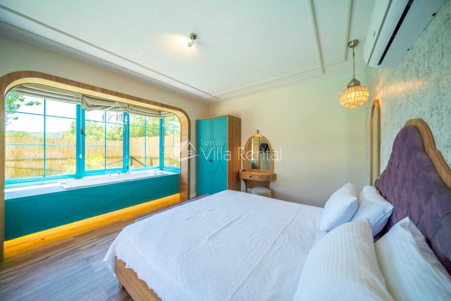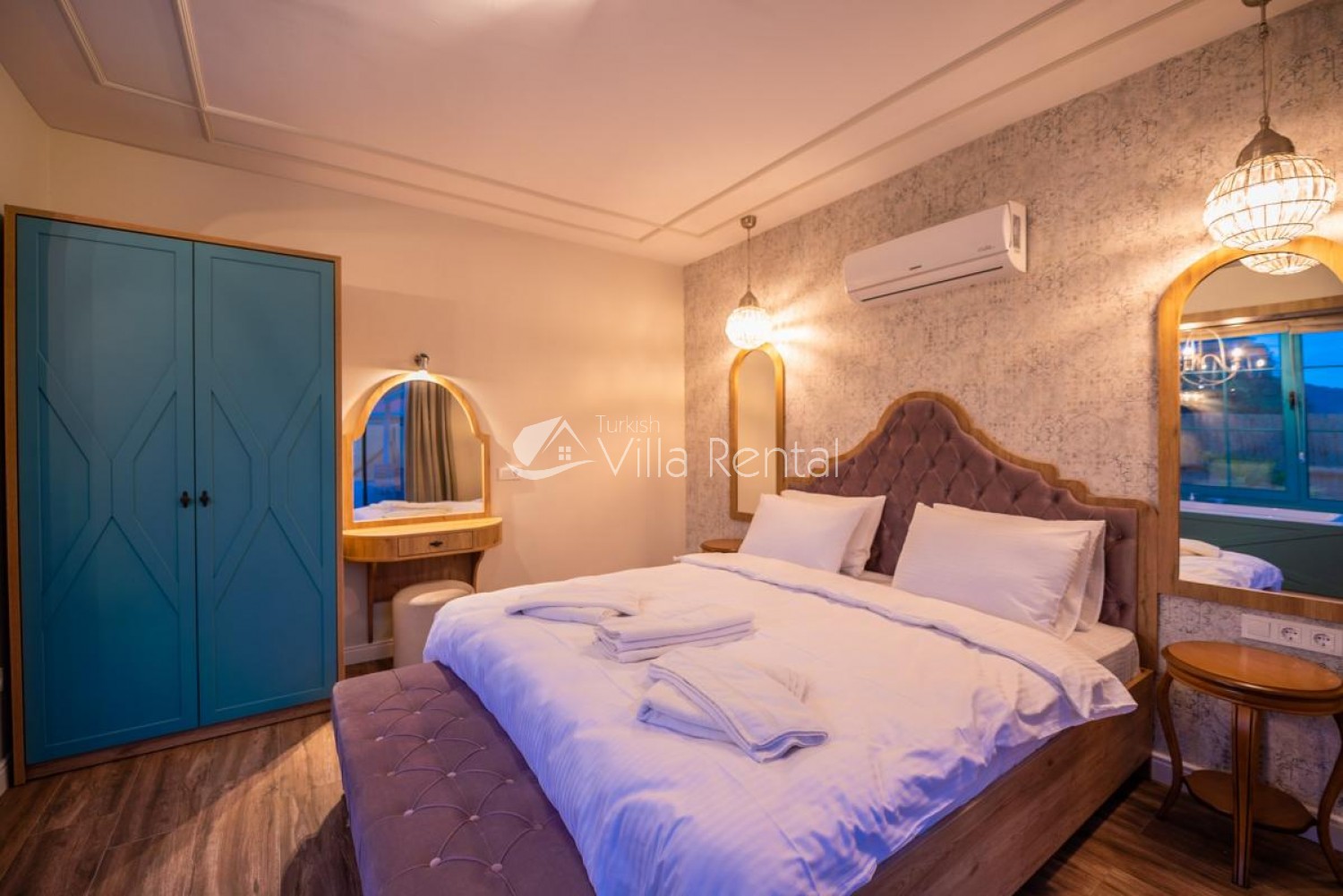1.Bedroom: Double bed, bedside table, vanity table, wardrobe, jacuzzi, air conditioning, TV, bathroom & wc.