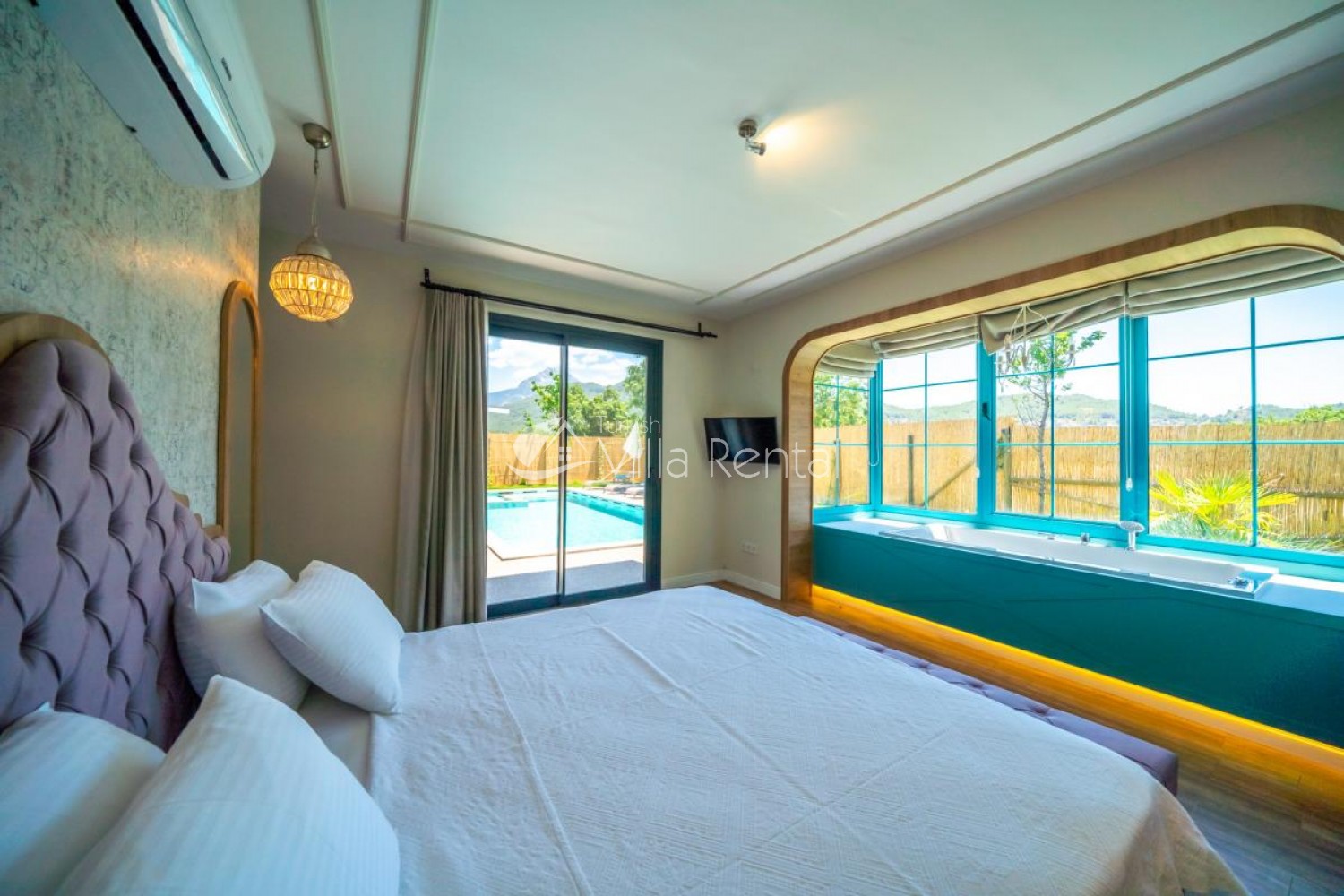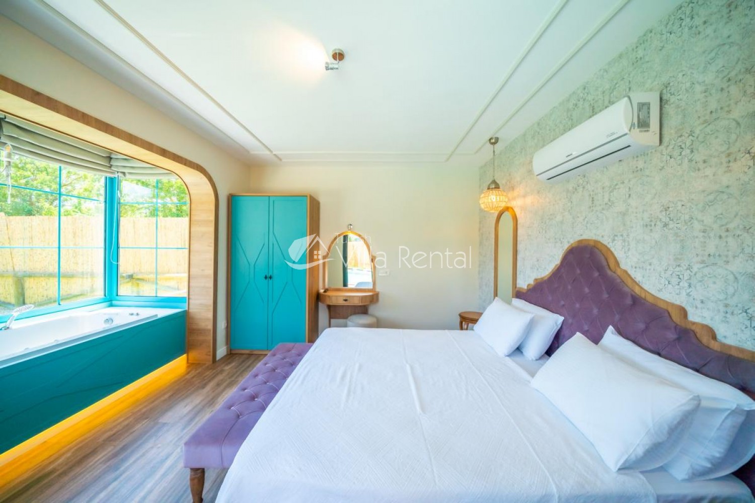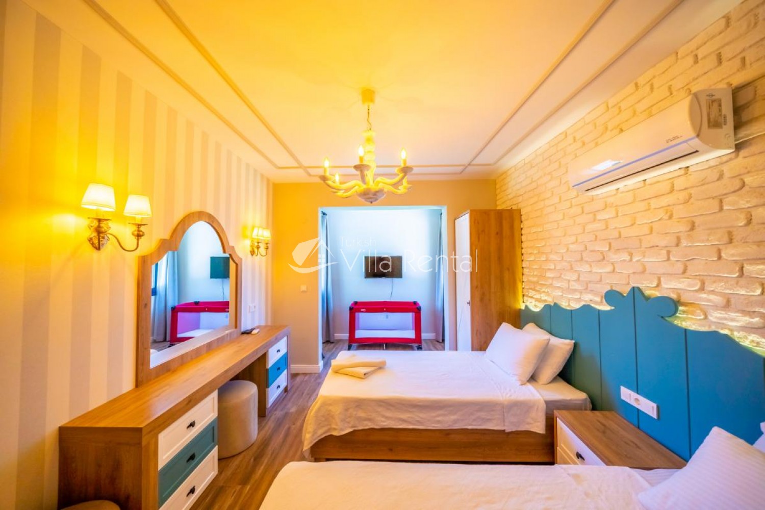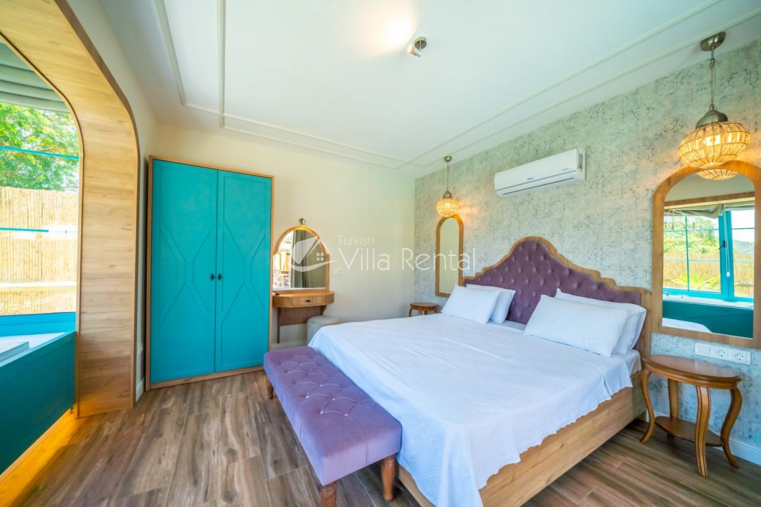 1.Bedroom: Double bed, bedside table, vanity table, wardrobe, jacuzzi, air conditioning, TV, bathroom & wc.