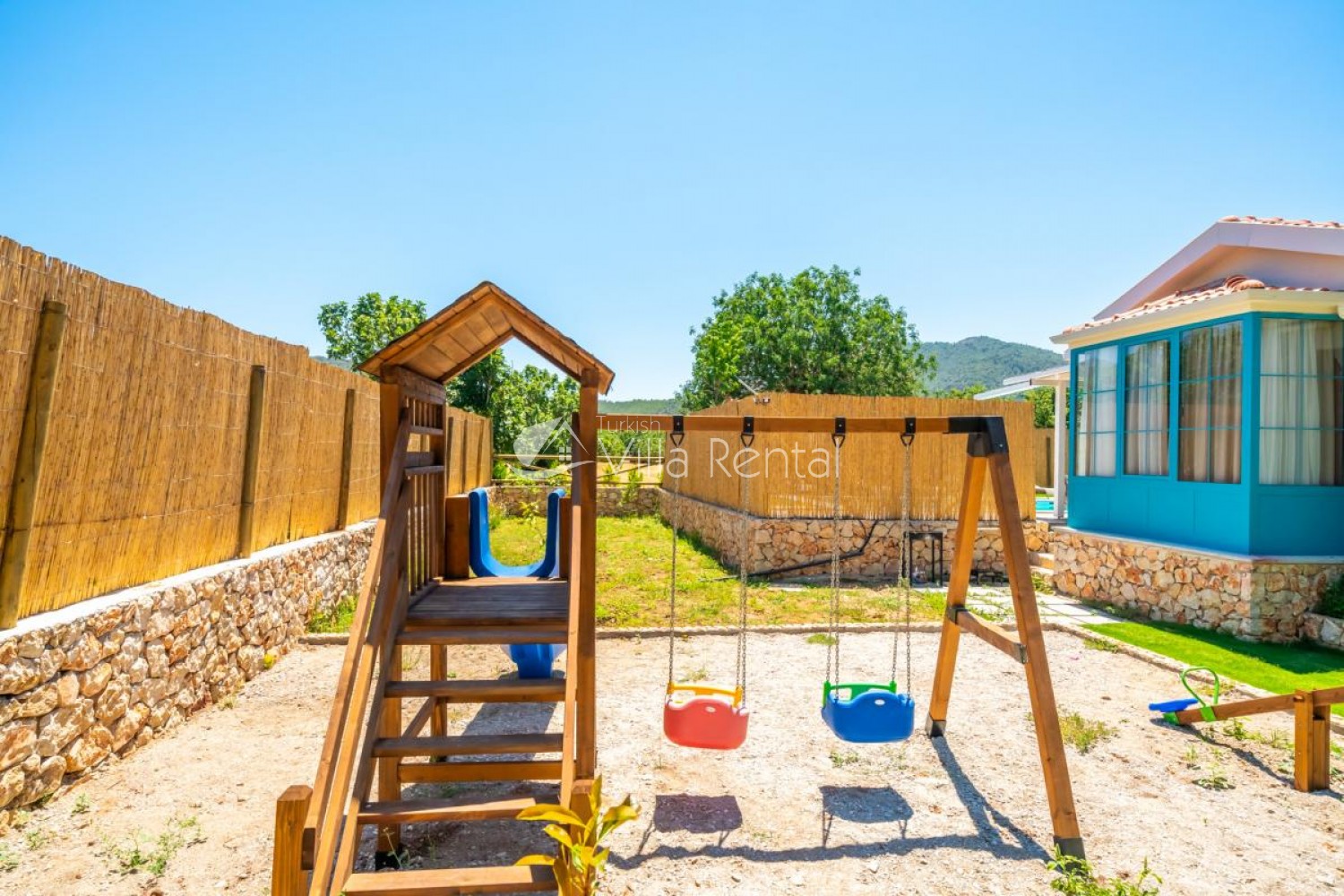 Villa Sirena is a 2 bedroom villa with sheltered pool to be completed in May 2019. In order to allow families with children to spend time with pleasure in other Kayaköy villas, a children’s playground was created in the garden of the villa. The villa is located in Fethiye-Kayaköy area which stands out with its calm, peaceful and natural structure. The villa has two bedrooms and has a capacity of four people. There is a green garden.