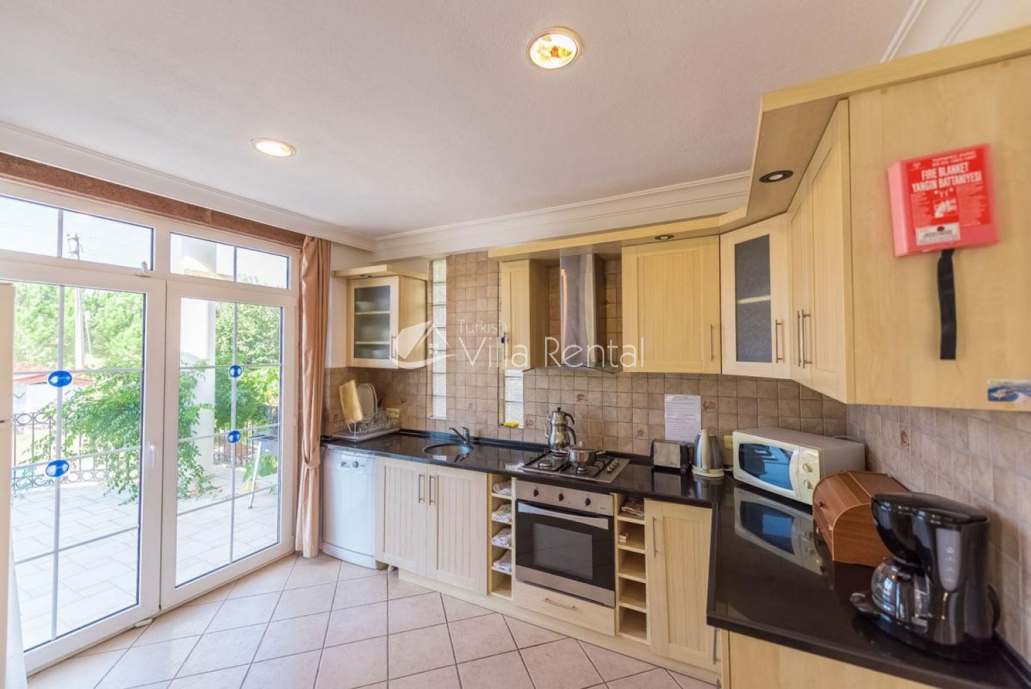 Kitchen: Modern and fully equipped kitchen with Dishwasher, Microwave, Oven, Hob, Fridge/freezer, Dining facilities, Patio doors, Terrace.