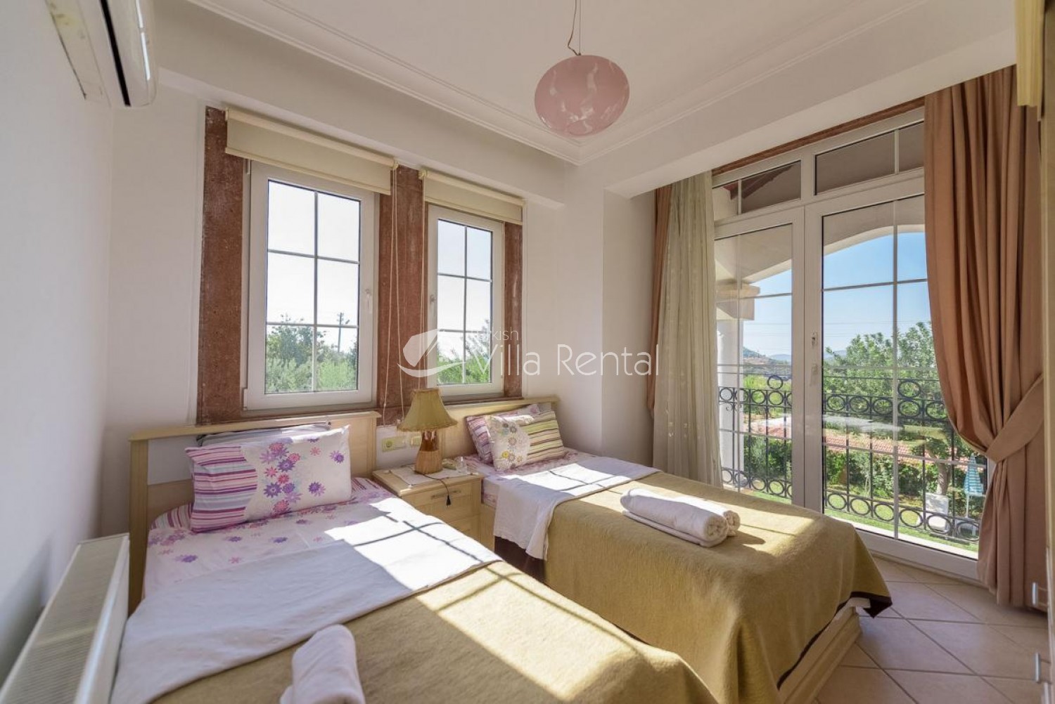 Bedroom 3: Twin beds, air-conditioning, patio doors, balcony. Two storey accommodation