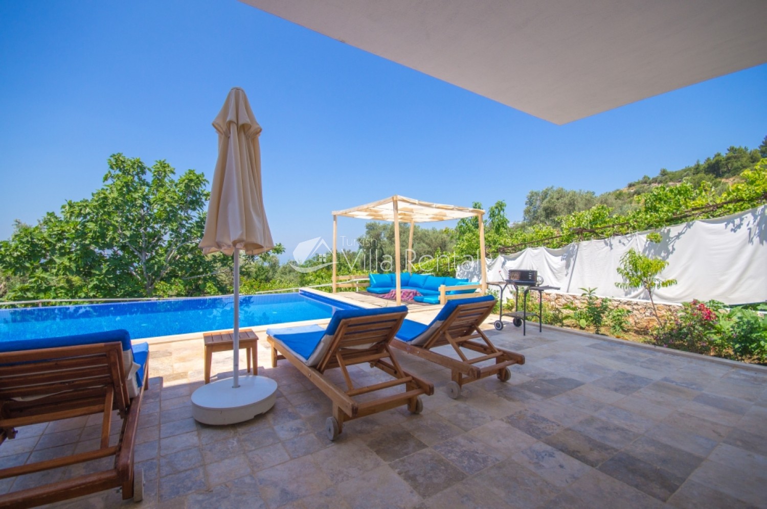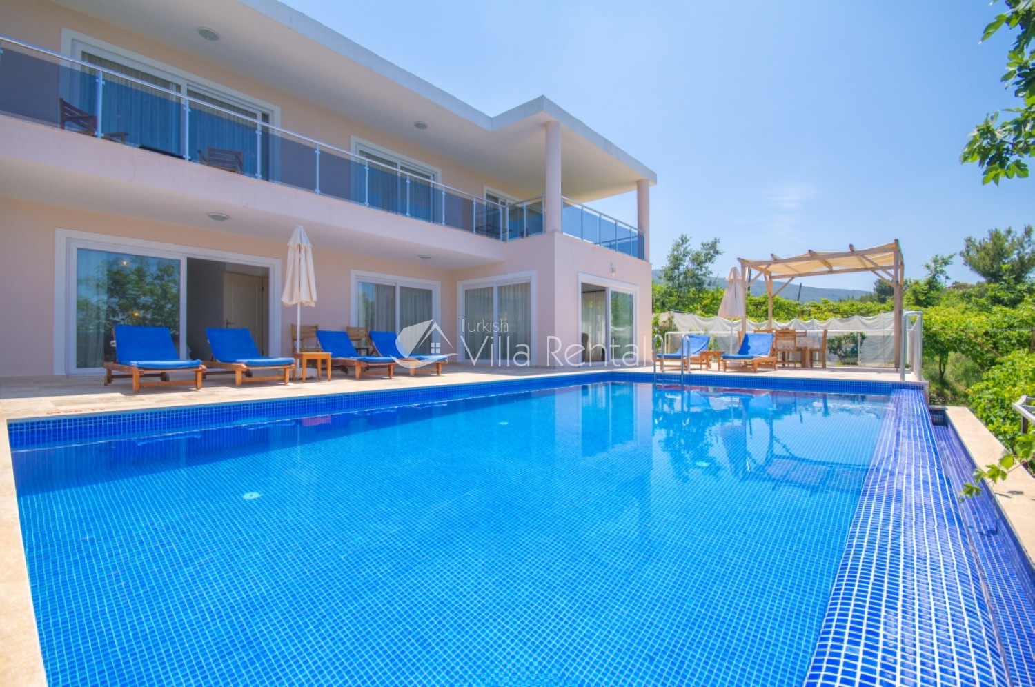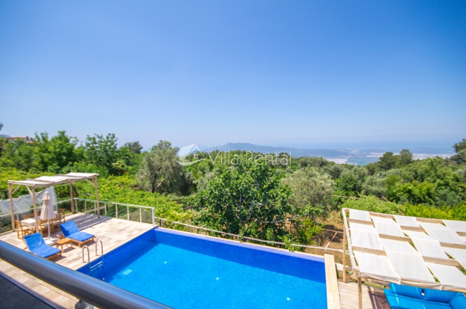 This is a brand new and luxury villa located in the Islamlar area of Kalkan. It has amazing sea views and surrounded by beautiful greenery and trees