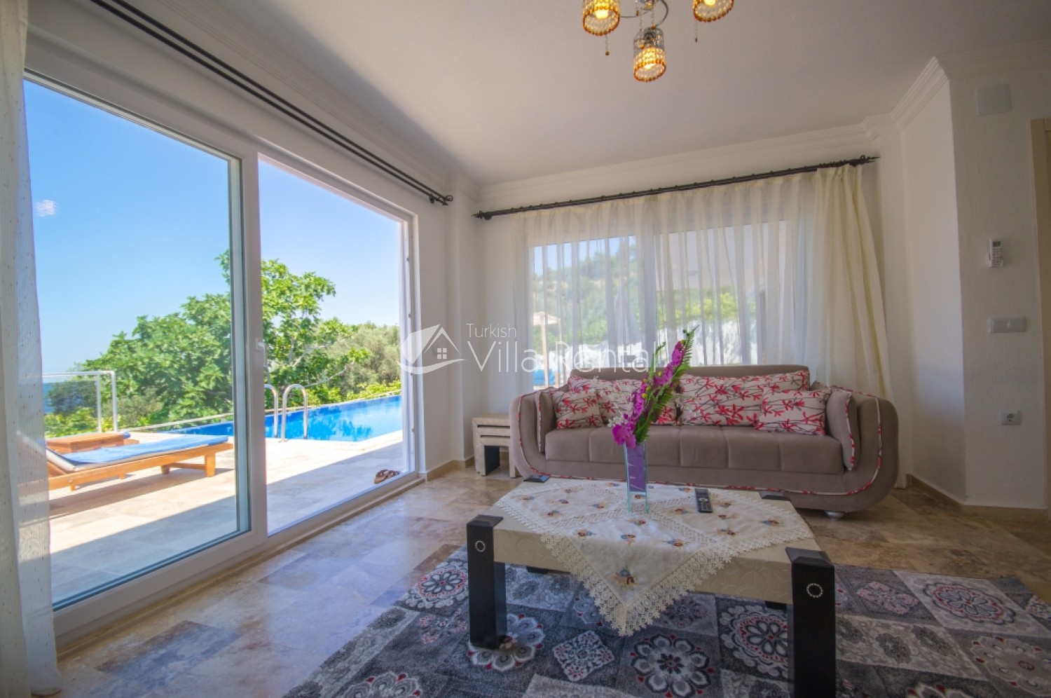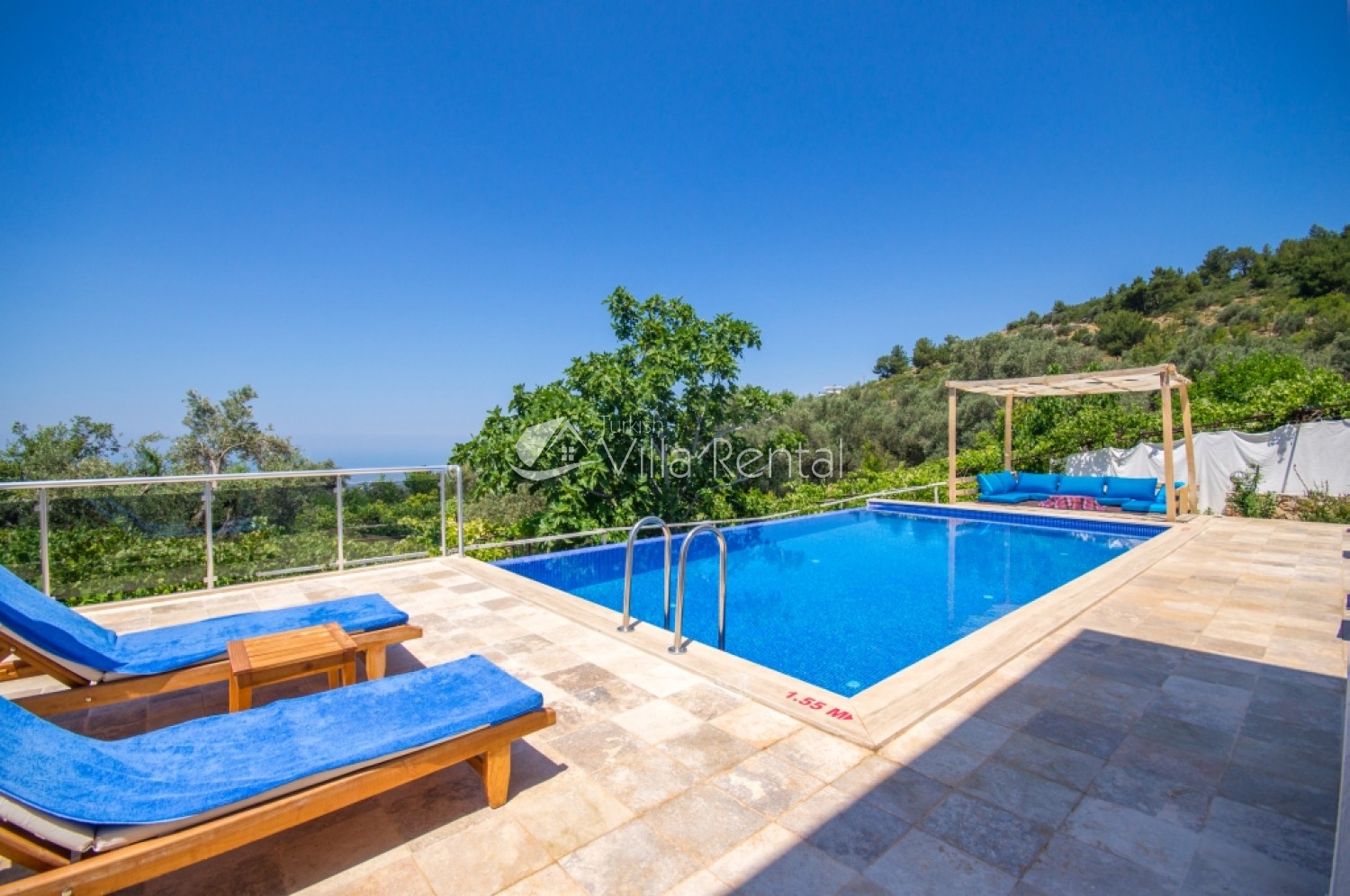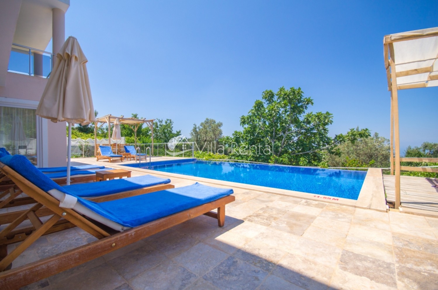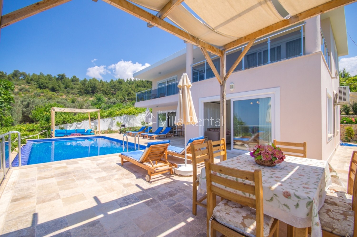 This is a brand new and luxury villa located in the Islamlar area of Kalkan. It has amazing sea views and surrounded by beautiful greenery and trees