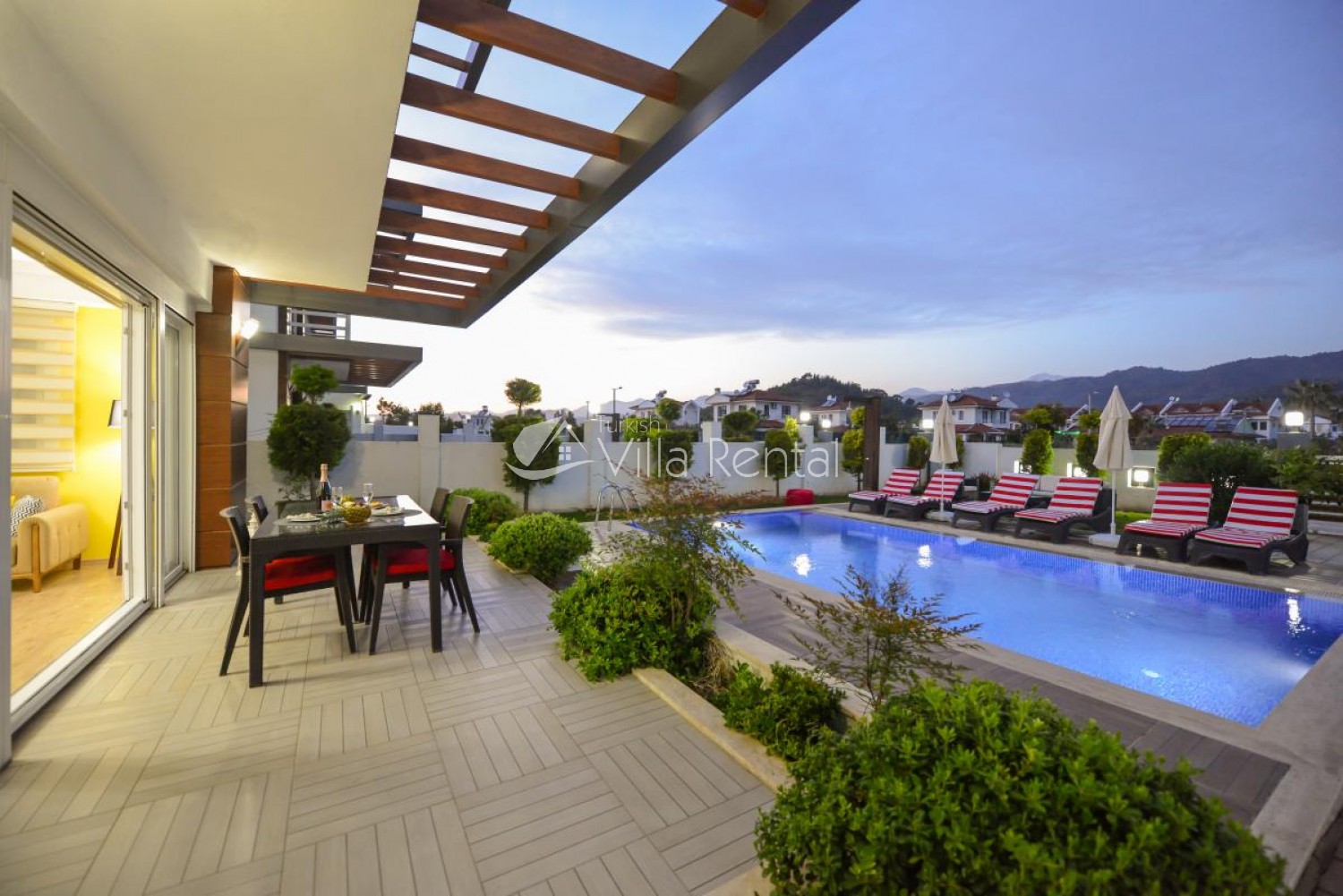 Fethiye is a charming holiday region that attracts attention with its natural and beauty as well as its history and sea. Tala 10 is a holiday villa with private swimming pool and large garden, located in the site in the world-famous Fethiye region. It is located on Koca Calis beach. It has a capacity of 8 people with 4 bedrooms.