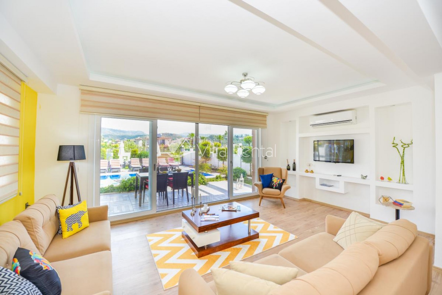 NOTE: The villa pictures in our site are taken with 12-18 mm Wide Angle Lens to fit the image to the screen. Therefore, the objects in the pictures may appear to be larger than the reality.