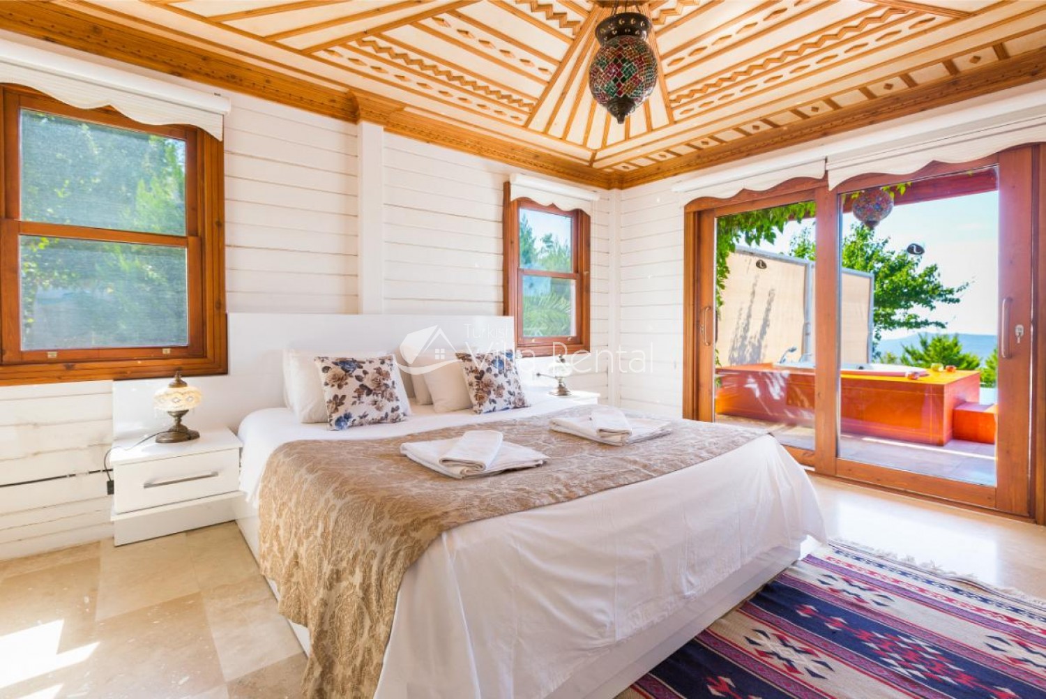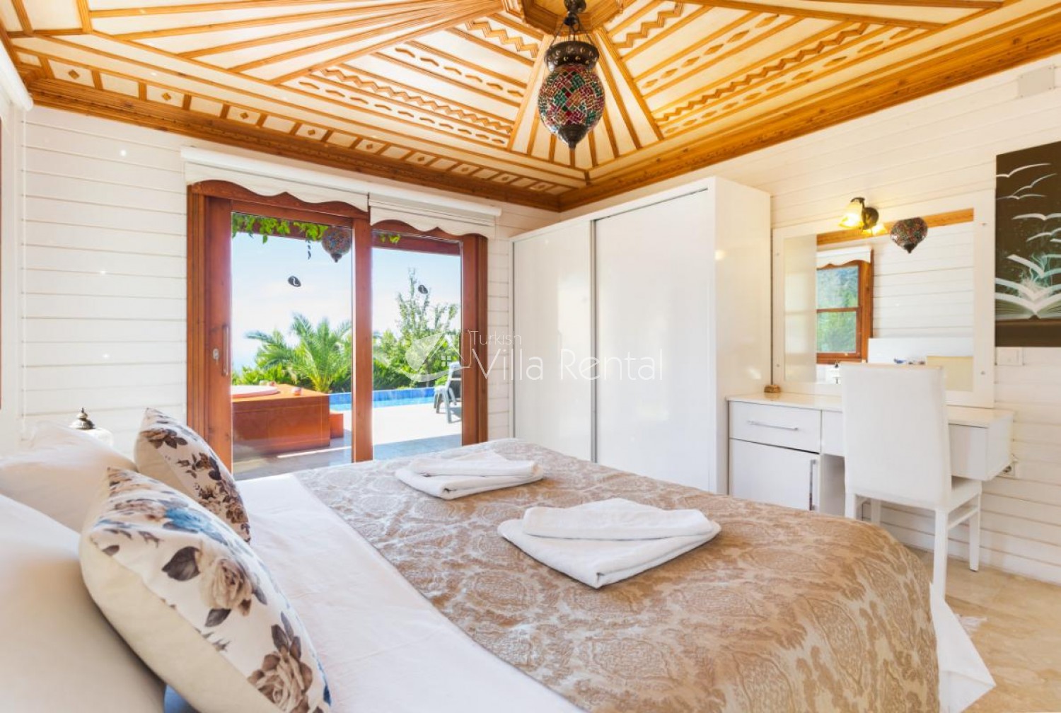 Yaz Evi is a wonderful honeymoon villa with 1 bedroom, in the peaceful area of Islamlar, above the popular resort of Kalkan. It has panoramic views of the sea, mountains, and countryside. There is a large sheltered swimming pool so that guests can swim and sunbathe in complete privacy.