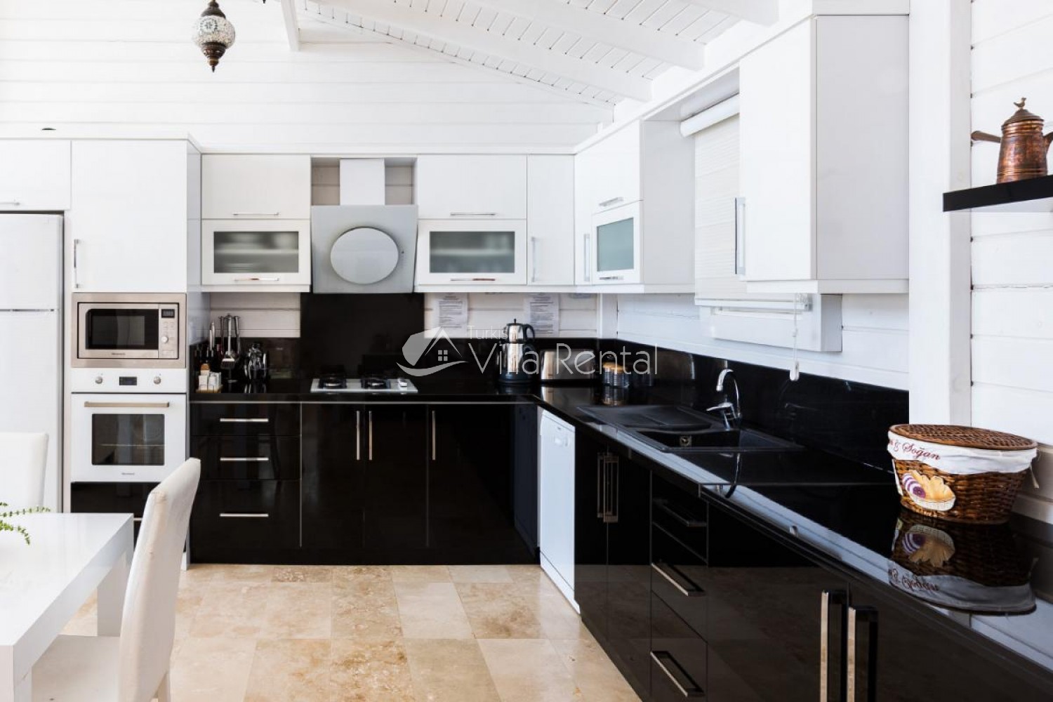 Kitchen: Modern open plan kitchen, fully equipped with microwave oven, kettle, built-in oven, quad cooker, hood, dishwasher, washing machine, toaster, toaster, fork, spoon, knife etc. .