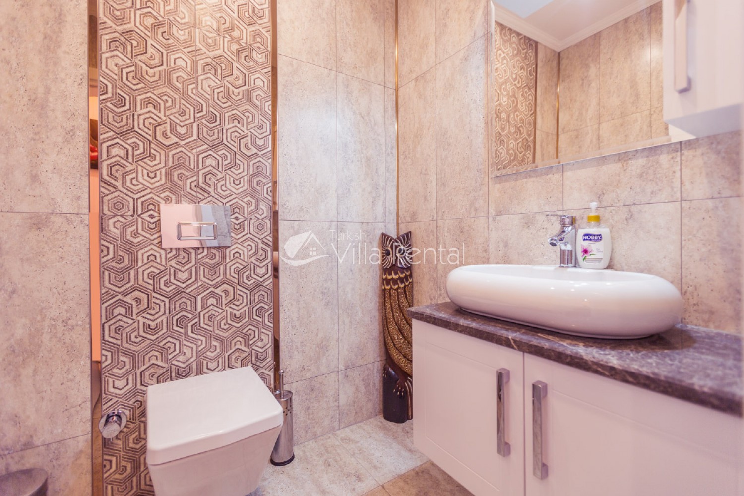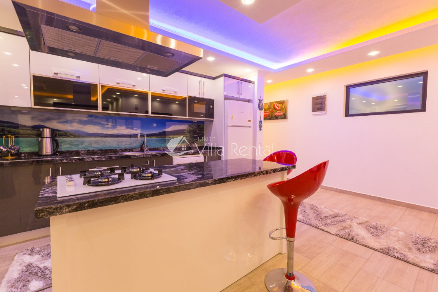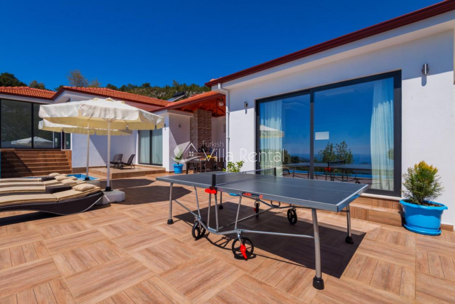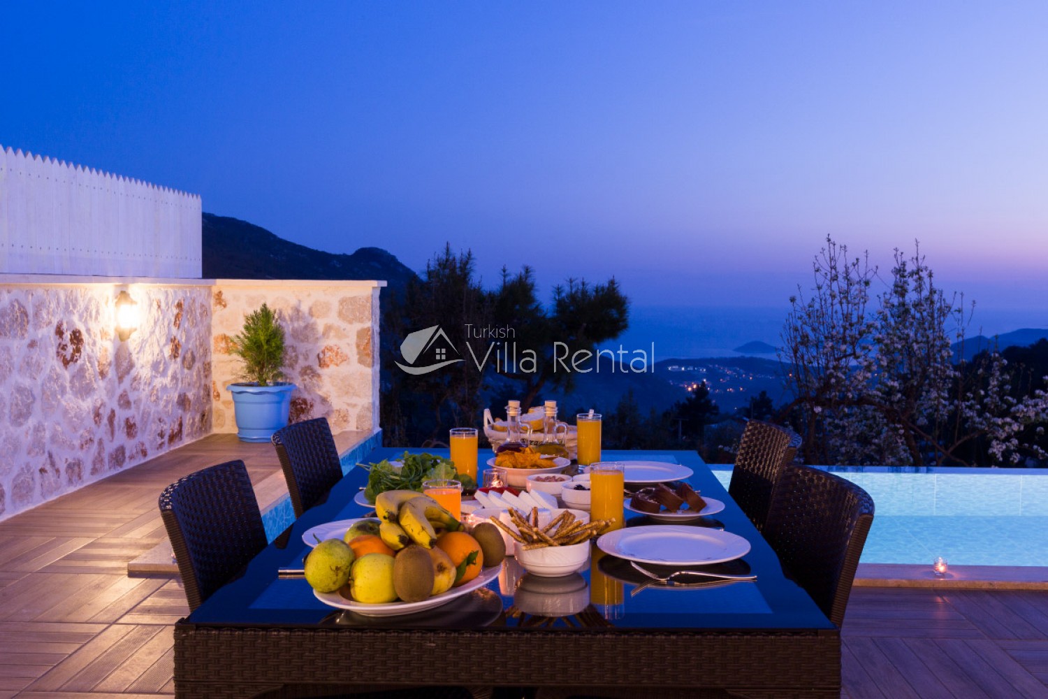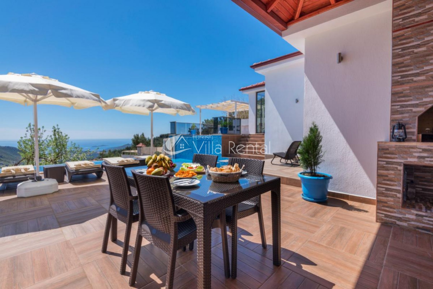The pool terrace has a private pool of 13x4 metres, a 5x3 metre jacuzzi and a shallow pool / children swimming pool with a size of 3.5x3 metres. All of these pools are sheltered and not visible from the outside which makes it perfect for honeymoon couples or small families who require privacy. 7 km to the center of Kalkan.